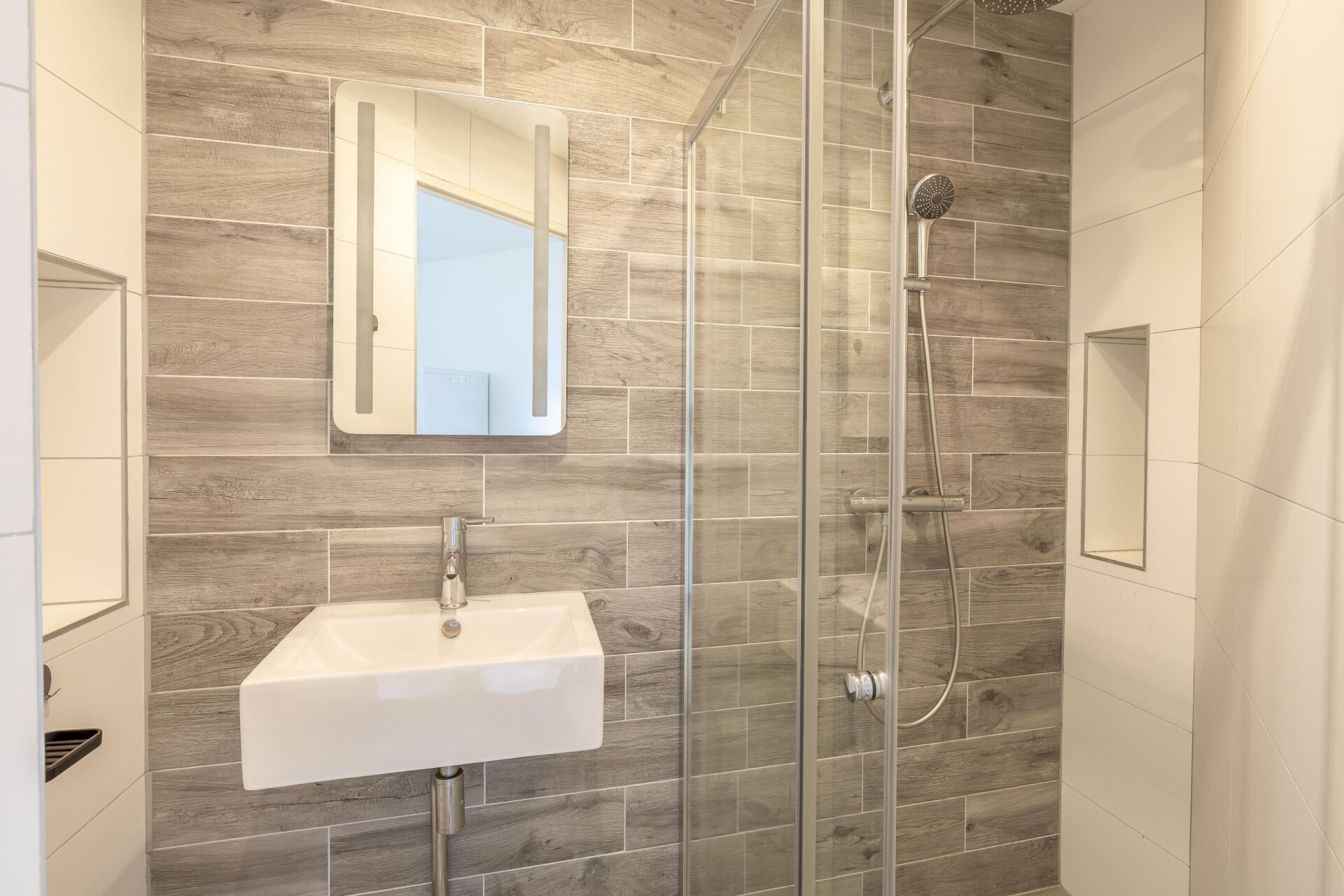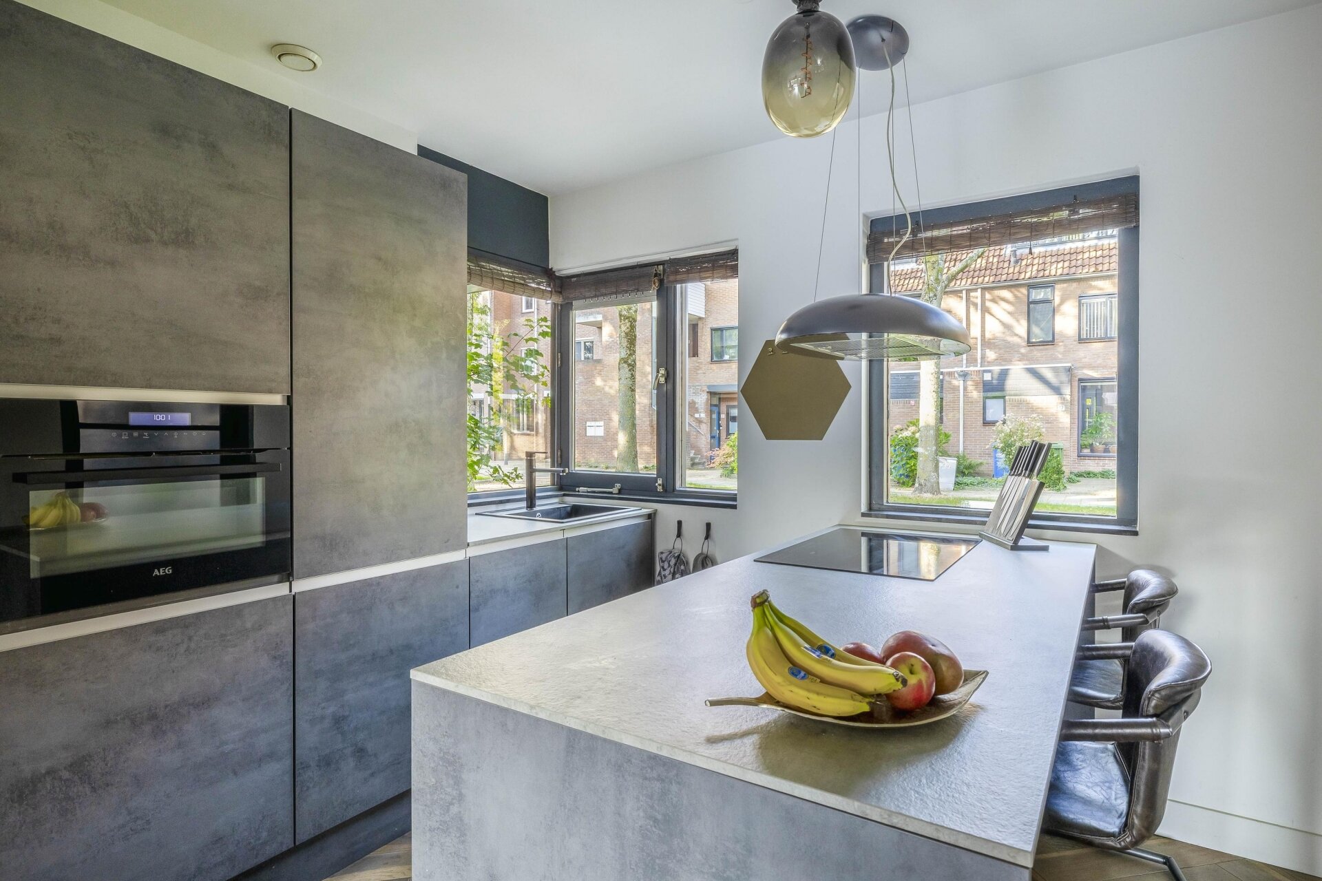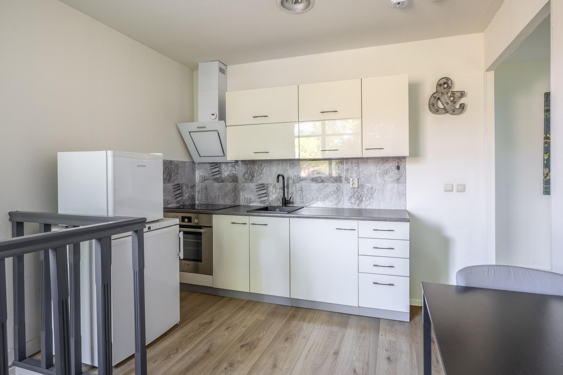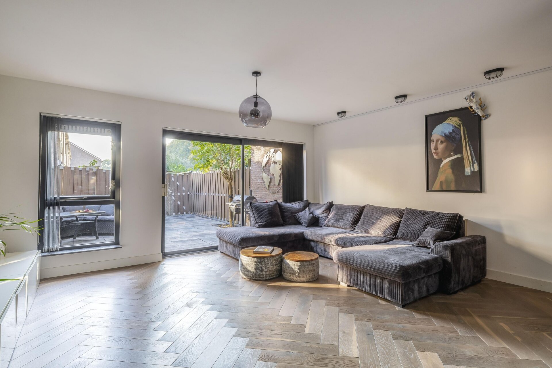 Bij binnenkomst in nummer 28 valt direct de ruime leefruimte op. De woonkamer is tuingericht en dankzij de grote raampartijen komt er veel licht binnen. De schuifpui geeft direct toegang tot het terras, waardoor binnen en buiten mooi in elkaar overlopen. Aan de voorzijde bevindt zich de moderne keuken met kookeiland en diverse inbouwapparatuur. Hier kun je uitgebreid koken terwijl je in contact blijft met familie of gasten in de woonkamer. De afwerking is strak en eigentijds, met veel opbergruimte en een praktische indeling.