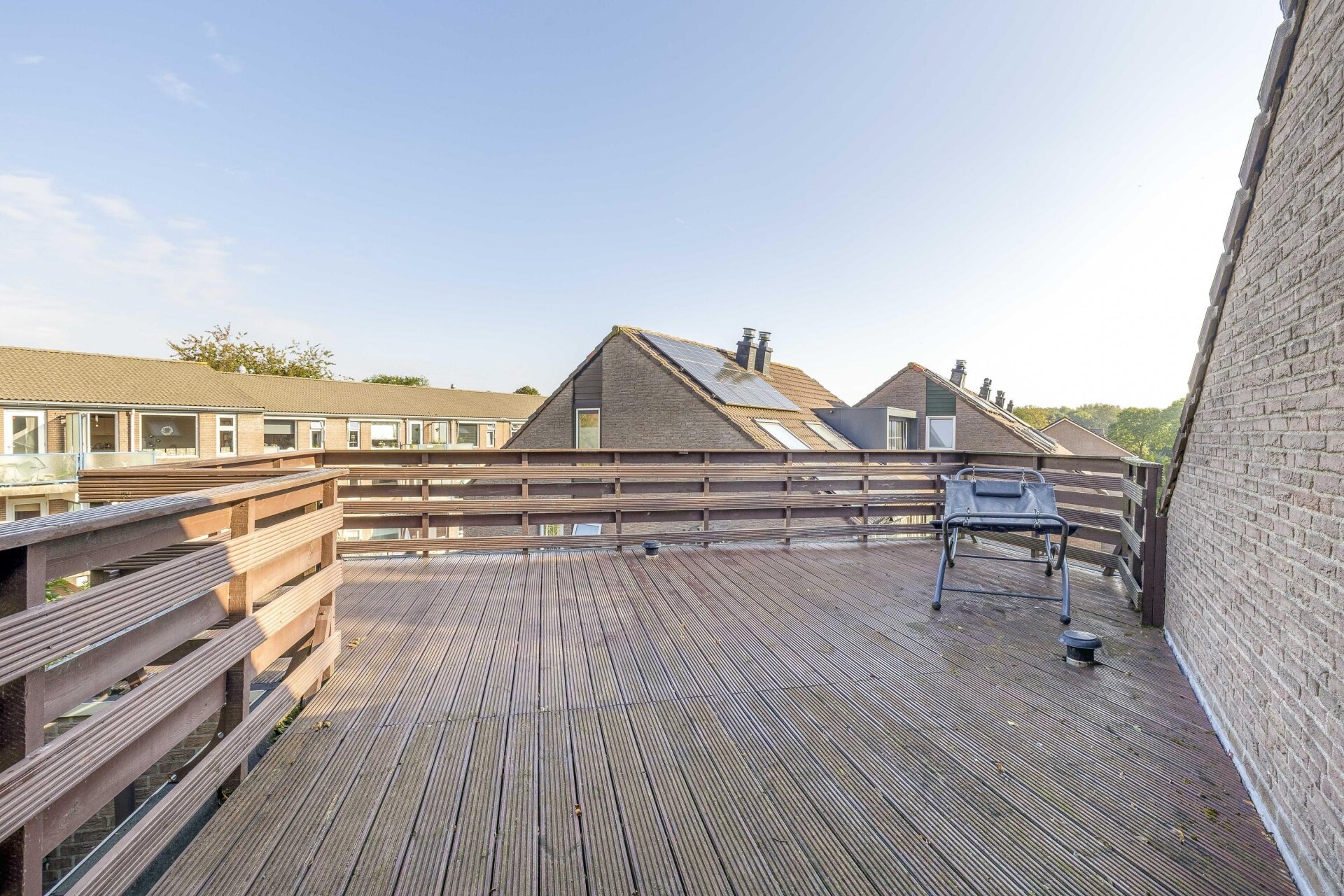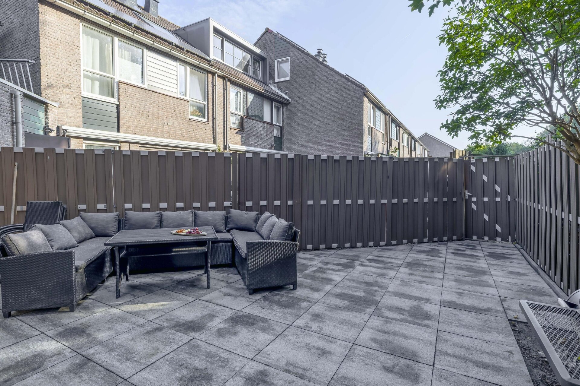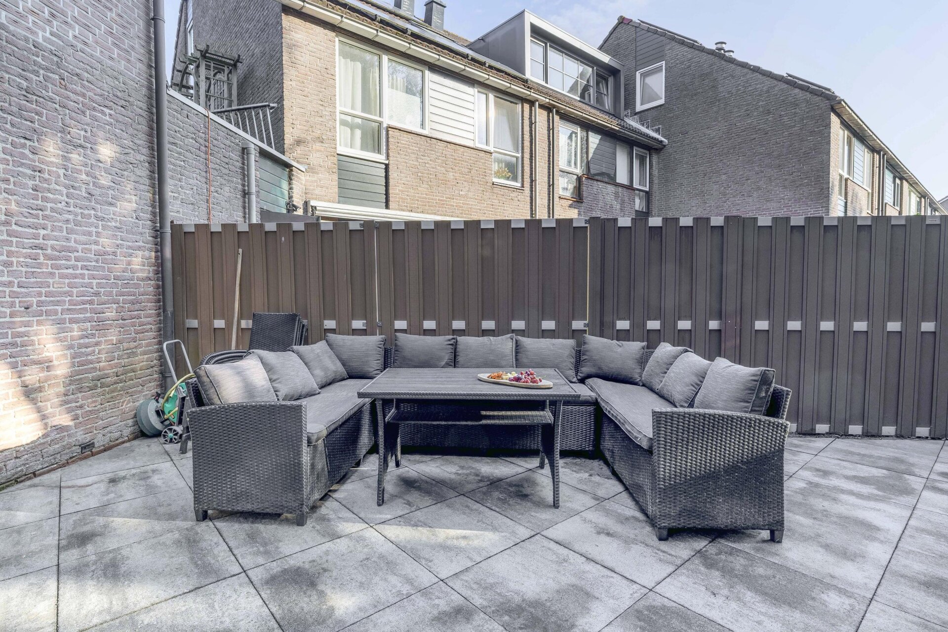 Naast de tuin rondom de woning is er een royaal dakterras, perfect voor zomerse avonden of een borrel met uitzicht over de wijk. De tuin aan de achterzijde is grotendeels bestraat en onderhoudsvriendelijk, met volop ruimte voor een loungeset of buitentafel. De ligging in een rustige straat zonder doorgaand verkeer zorgt voor een aangename en veilige woonomgeving. Dankzij de eigen parkeerplaats direct voor de deur parkeer je altijd probleemloos.
