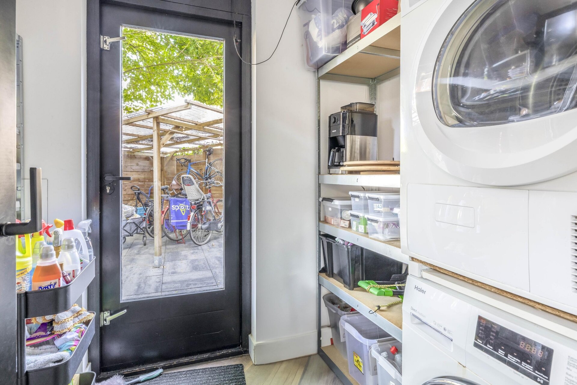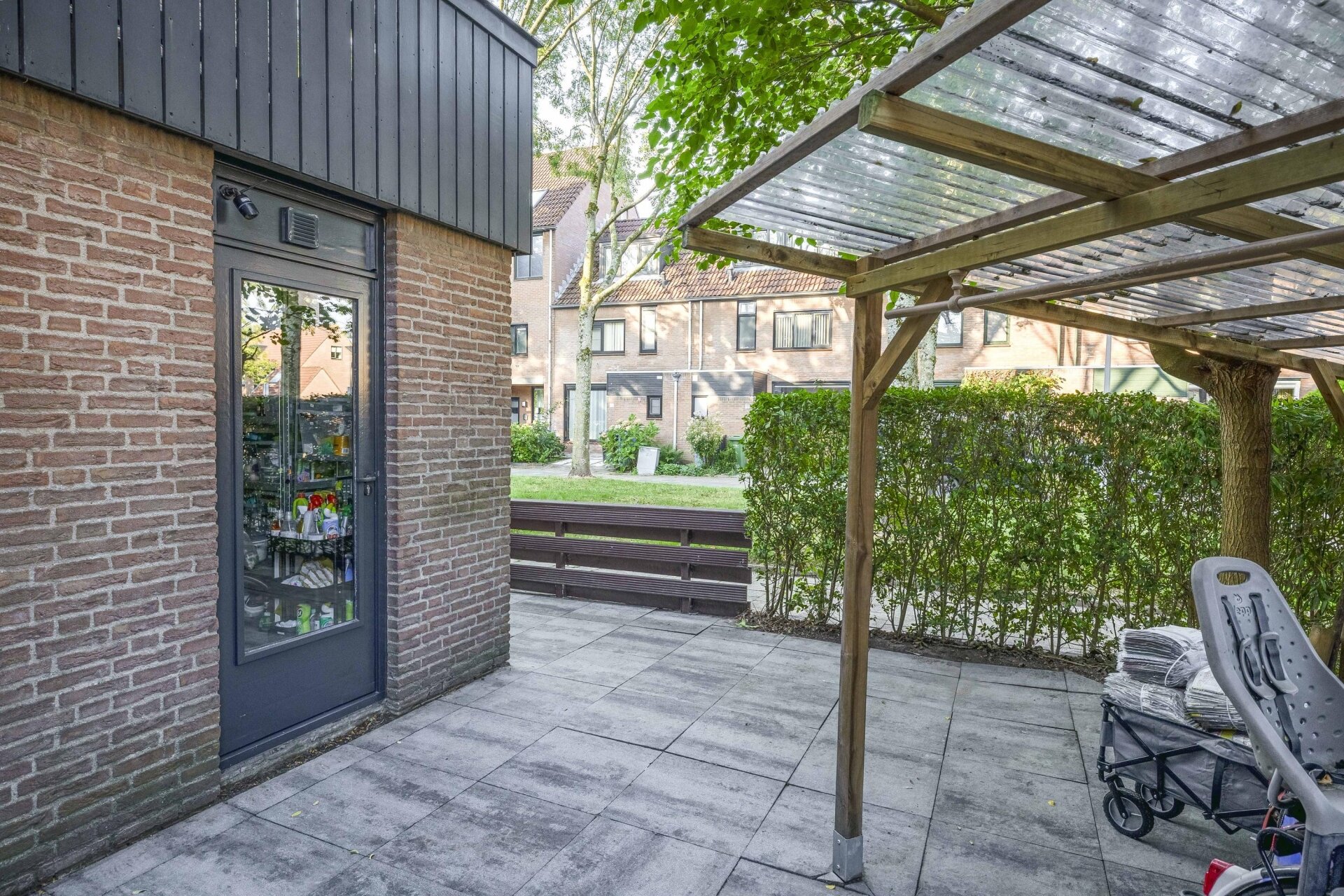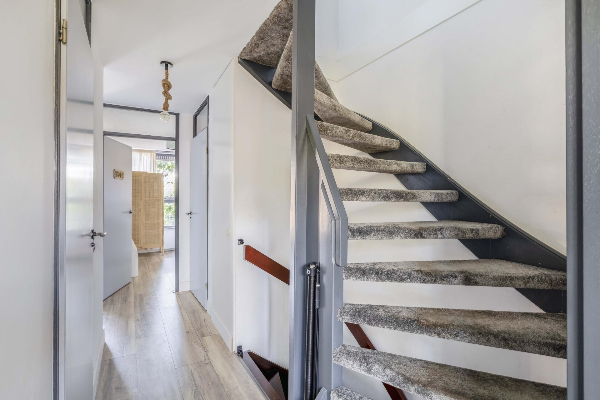 Naast de tuin rondom de woning is er een royaal dakterras, perfect voor zomerse avonden of een borrel met uitzicht over de wijk. De tuin aan de achterzijde is grotendeels bestraat en onderhoudsvriendelijk, met volop ruimte voor een loungeset of buitentafel. De ligging in een rustige straat zonder doorgaand verkeer zorgt voor een aangename en veilige woonomgeving. Dankzij de eigen parkeerplaats direct voor de deur parkeer je altijd probleemloos.