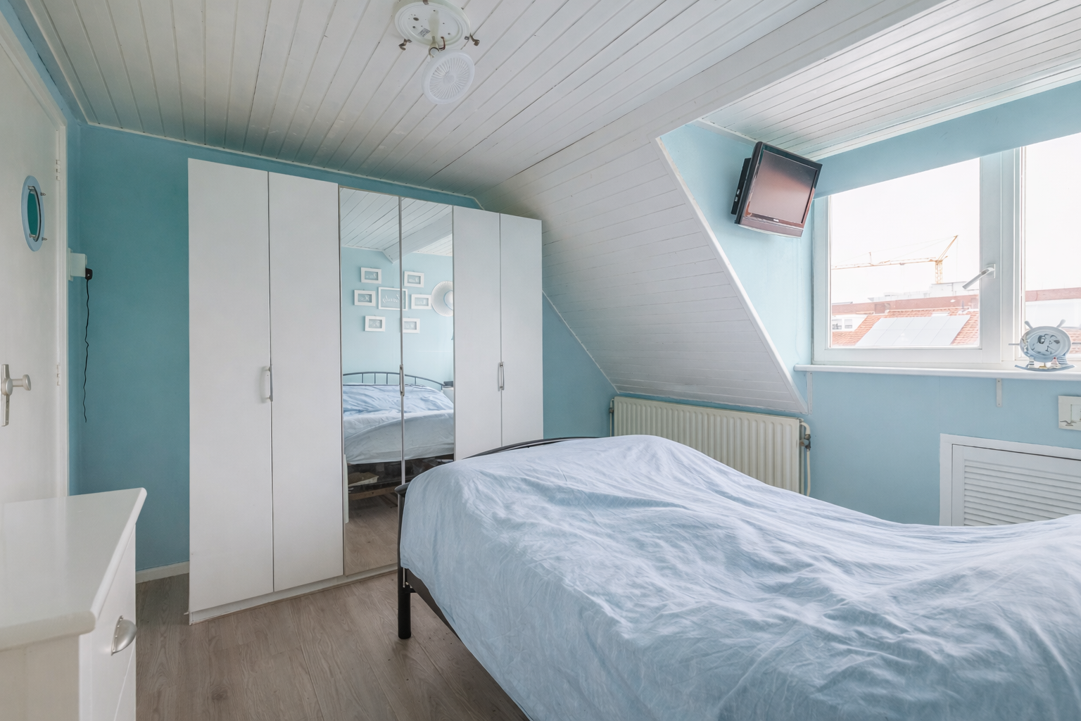 De eerste verdieping telt drie slaapkamers, waarbij de grootste aan de achterzijde ligt en uitkijkt over de tuin. Alle kamers zijn voorzien van ramen en natuurlijke lichtinval, wat de verdieping een prettige sfeer geeft. De overloop biedt daarnaast toegang tot een handige bergzolder, bereikbaar via een vlizotrap – ideaal voor seizoensspullen of extra opslag. Met twee volwaardige woonlagen biedt dit huis een fijne, overzichtelijke indeling die past bij een starter of jong gezin. Denk aan een kinderkamer, werkkamer of logeerkamer – je kunt hier meerdere kanten op.