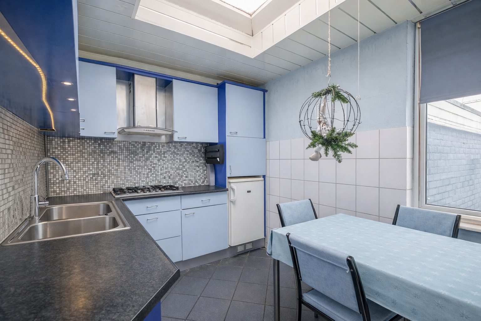 Zodra je binnenkomt valt het op: dit huis heeft potentie. De woonkamer aan de voorzijde is licht dankzij het grote raam aan de straatzijde. Vanuit de hal loop je door naar de keuken, die in de uitbouw is gesitueerd. De keuken heeft een fijne lichtinval door het daklicht en biedt voldoende ruimte voor een eettafel. Op de begane grond vind je verder de badkamer met douche en wastafel, het toilet en een praktische bergkast. De functionele indeling maakt het huis geschikt voor een jong gezin of twee werkende starters die behoefte hebben aan thuiswerkruimte of een logeerkamer.