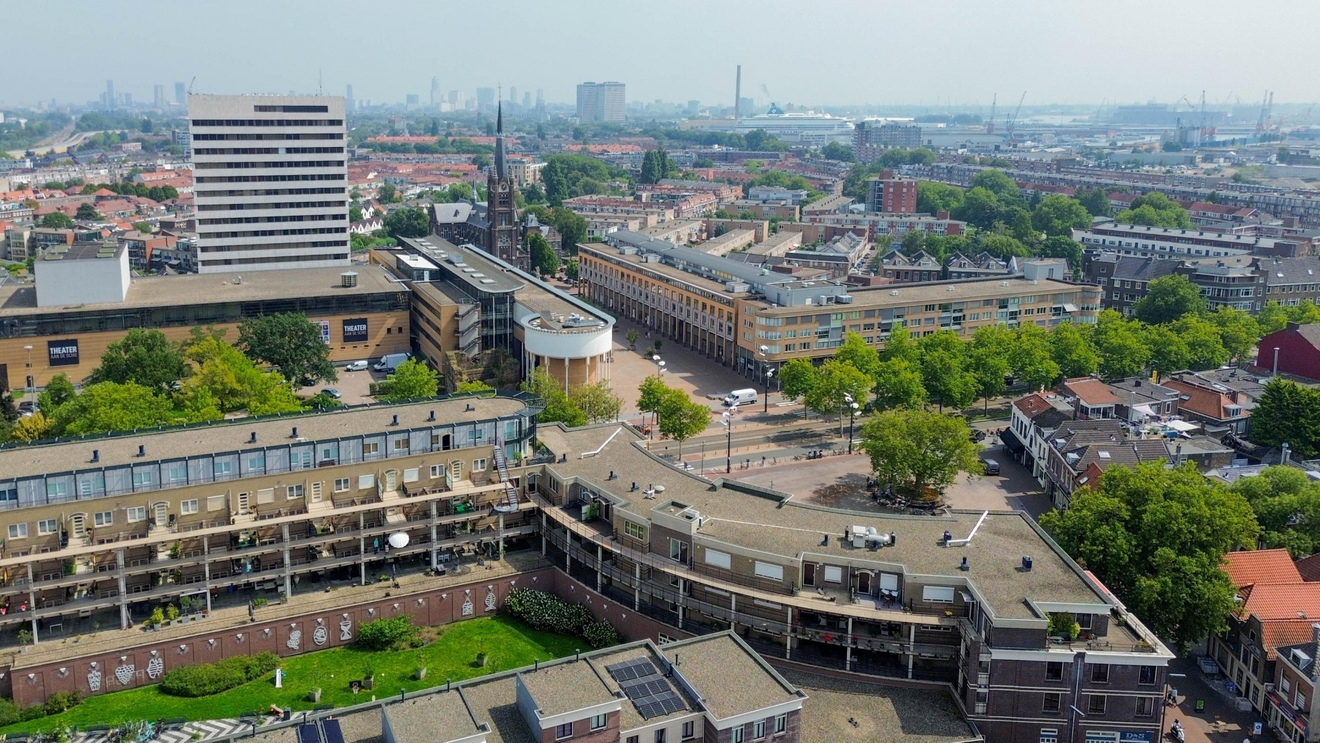 Centraal in het appartement bevindt zich de royale woonkamer met grote raampartijen. Deze zorgen niet alleen voor veel lichtinval, maar ook voor een fantastisch uitzicht over het levendige plein midden in het centrum van Schiedam.