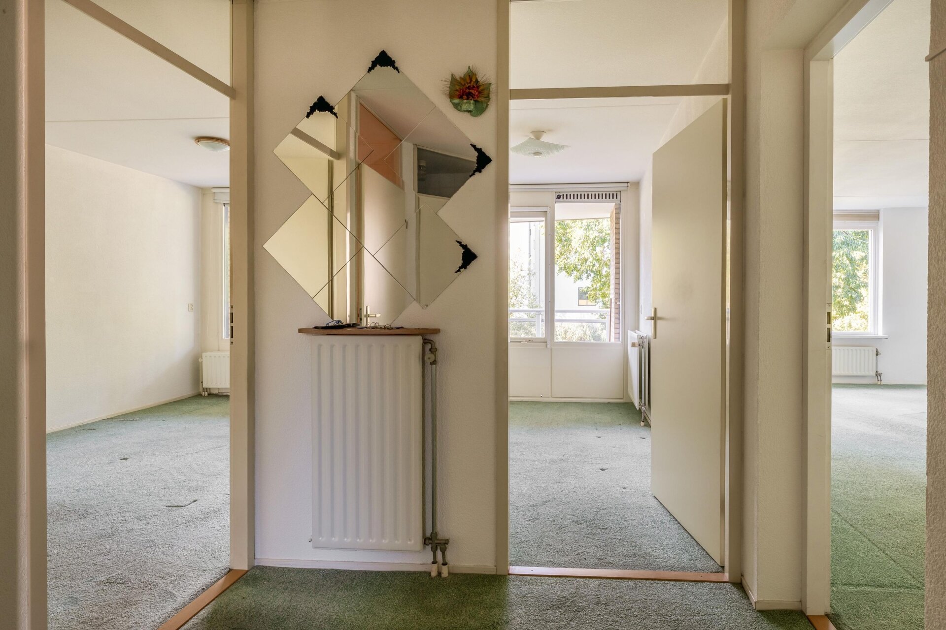 Met twee slaapkamers is dit appartement geschikt voor meerdere woonwensen. De grootste kamer kijkt vrij uit over groen en biedt voldoende ruimte voor een tweepersoonsbed en kast. De tweede kamer gebruik je net zo makkelijk als logeerkamer, hobbyruimte of thuiswerkplek. Alles ligt gelijkvloers, dus ook ideaal als je graag voorbereid bent op de toekomst.