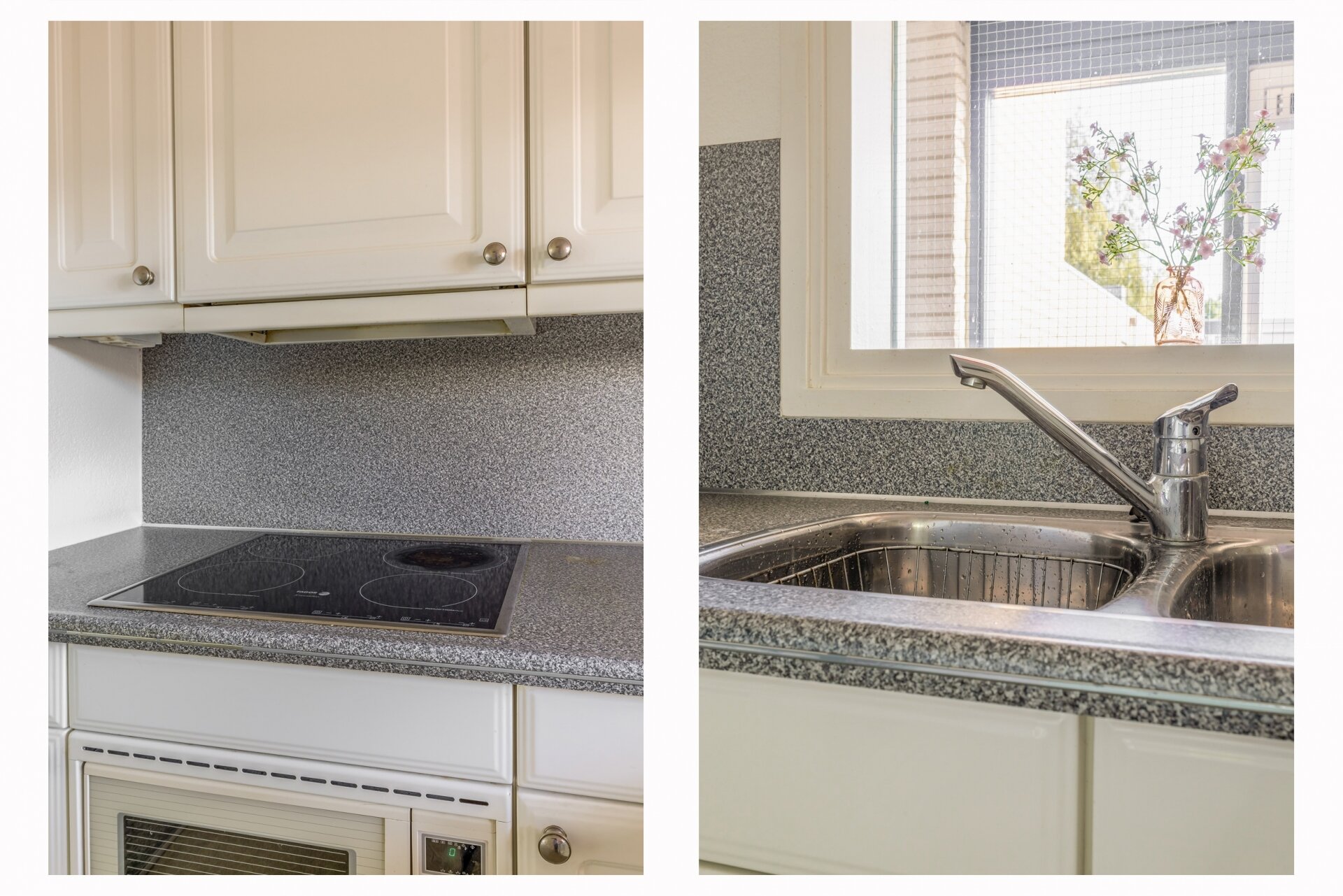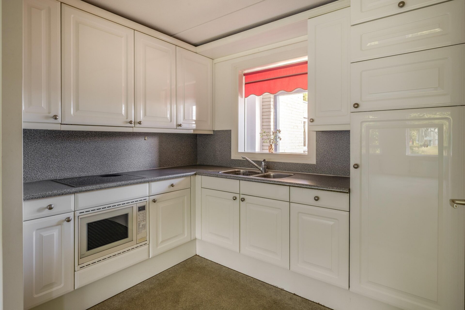 De halfopen keuken is netjes en functioneel met veel kastruimte. Vanuit de keuken is de bijkeuken te bereiken alwaar de aansluiting zich bevindt voor de wasmachine en droger en tevens de CV-installatie.