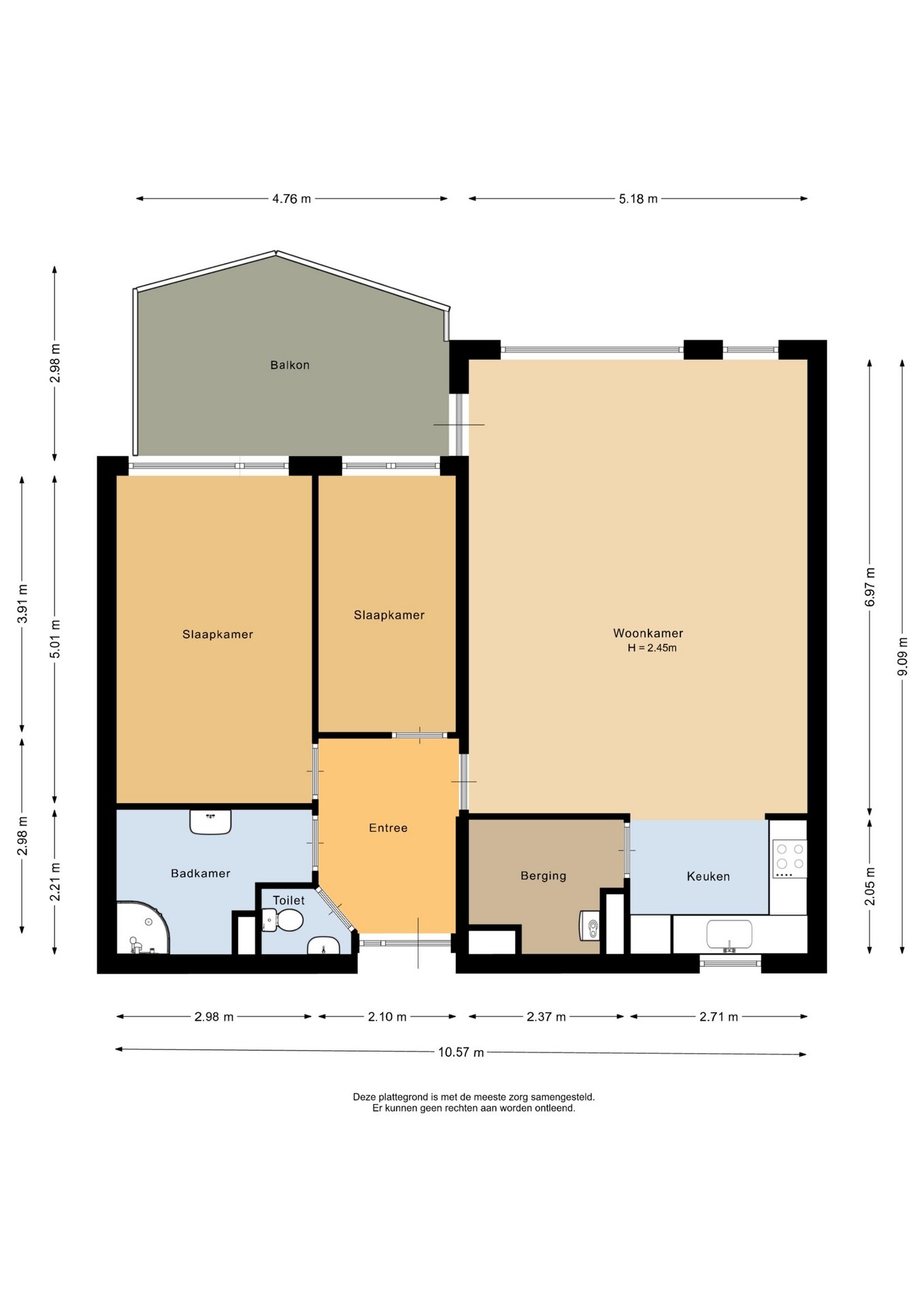 “Deze informatie is door ons met de nodige zorgvuldigheid samengesteld. Onzerzijds wordt echter geen enkele aansprakelijkheid aanvaard voor enige onvolledigheid, onjuistheid of anderszins, dan wel de gevolgen daarvan. Alle opgegeven maten en oppervlakten zijn indicatief.”