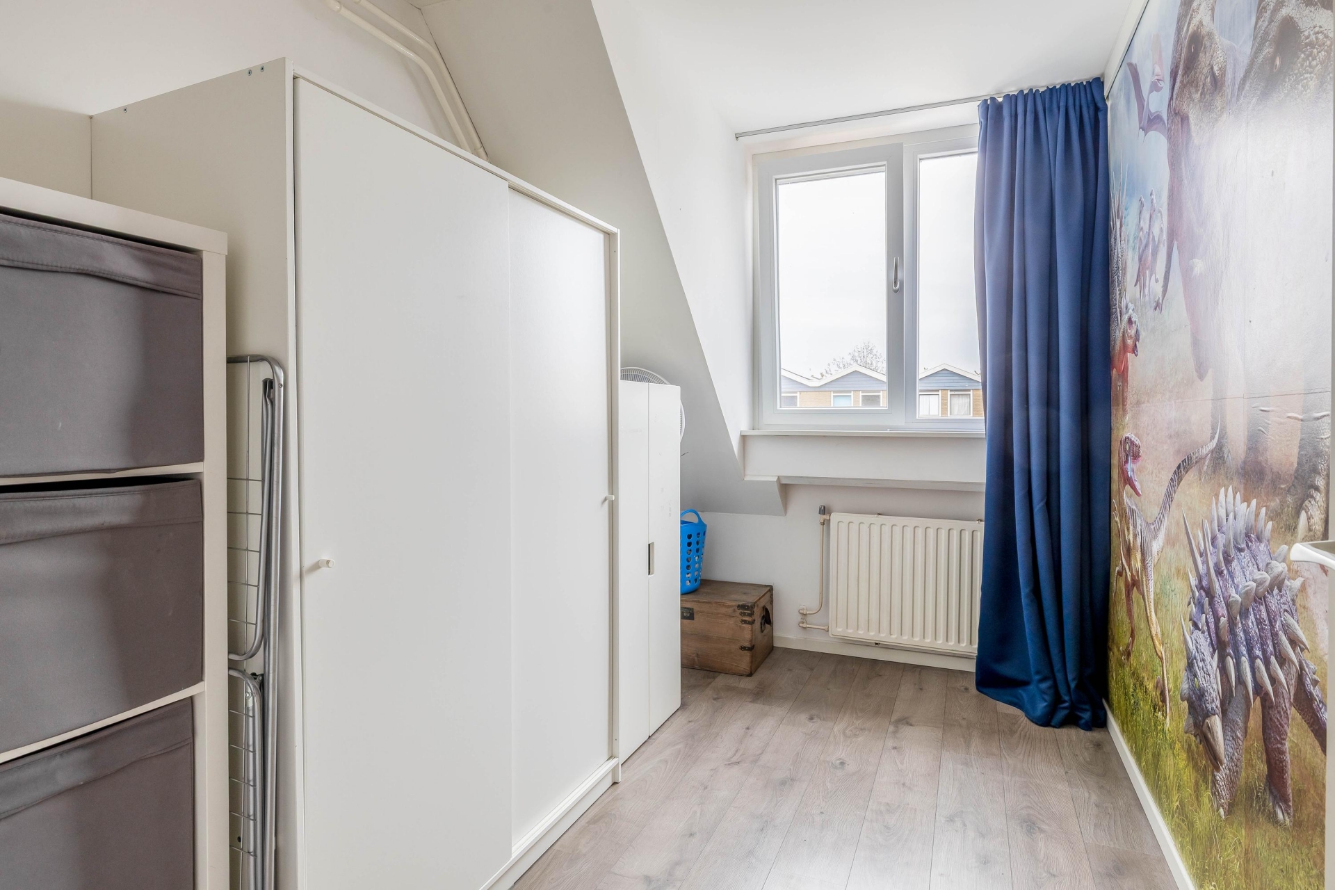 De tweede verdieping is een echte aanvulling op het huis. Hier vind je een ruime zolderkamer die uitstekend te gebruiken is als vierde slaapkamer, werkruimte of hobbykamer. Dankzij de slimme indeling en de bergruimte achter de knieschotten is dit een volwaardige en goed bruikbare verdieping.