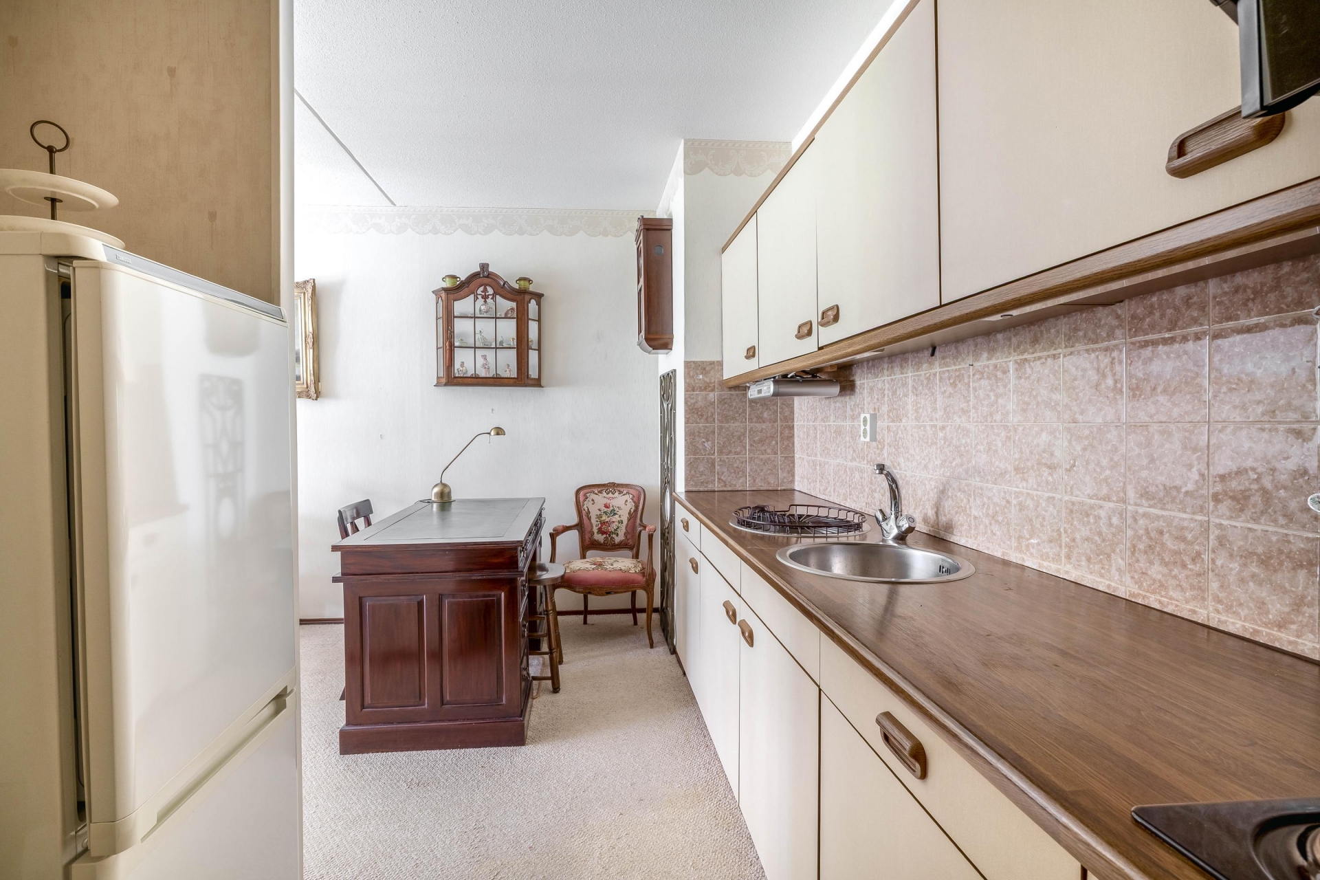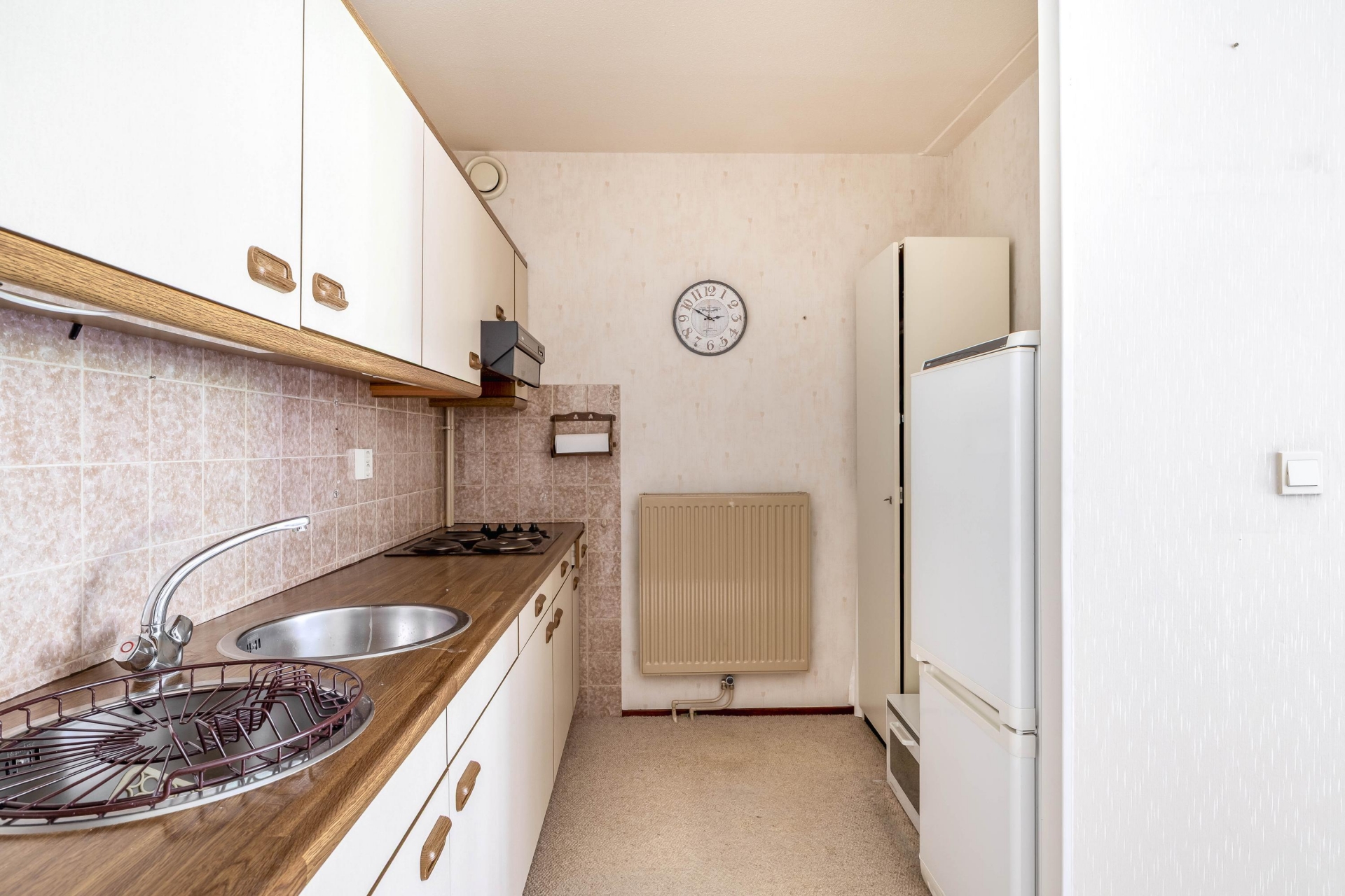 Vanuit de entree kom je in de lichte woonkamer met grote raampartijen. De deels open keuken is direct vanuit de woonkamer te bereiken en is uitgerust met de benodigde inbouwapparatuur.