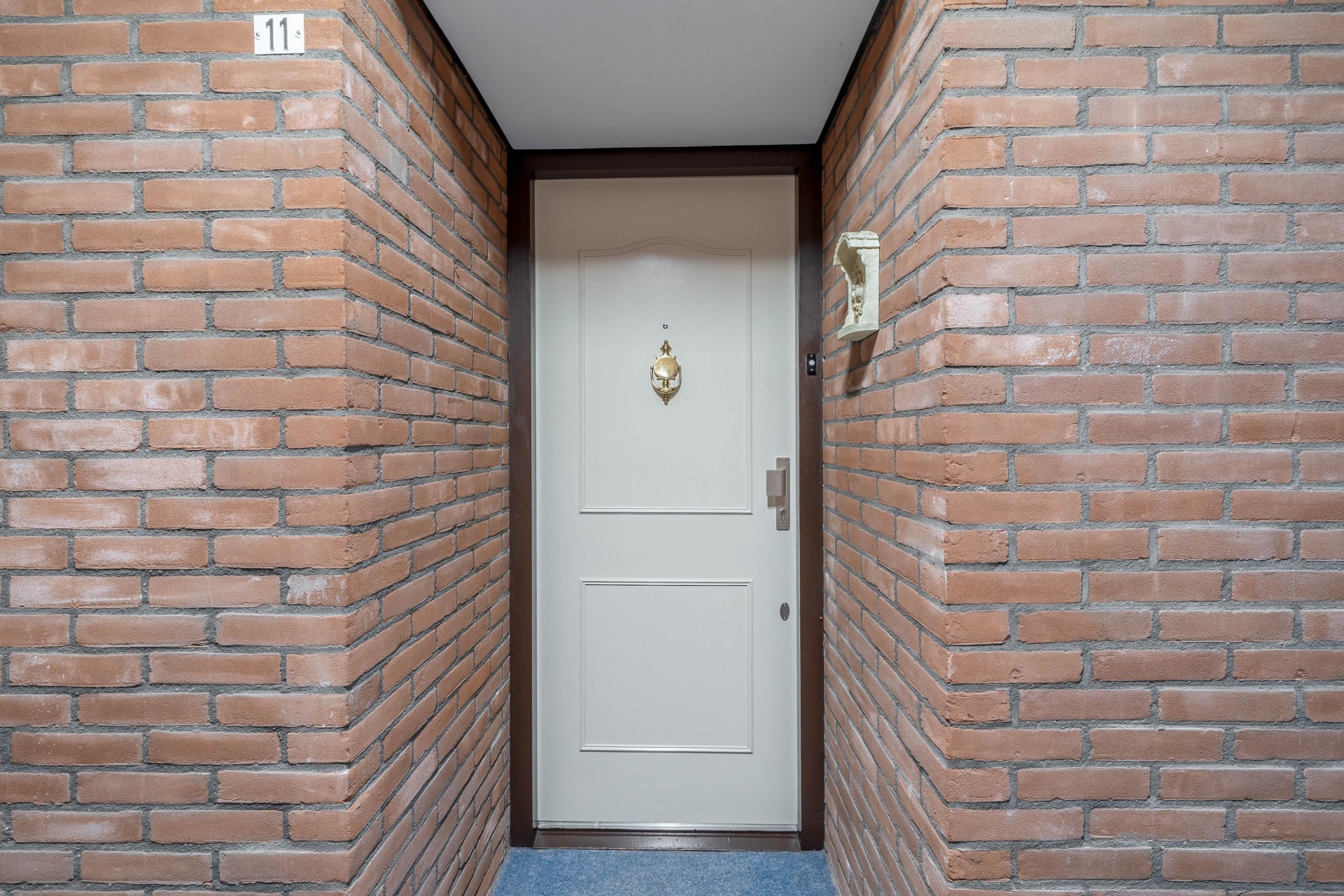 Afgesloten portiek met brievenbussen, een belsysteem en toegang tot de woning.