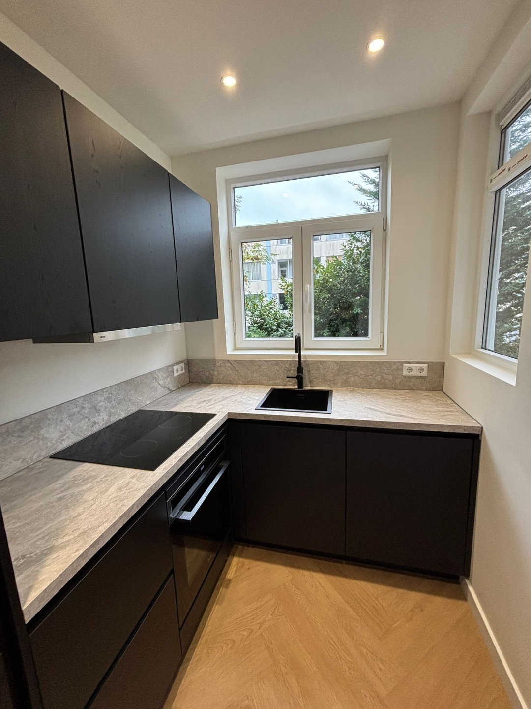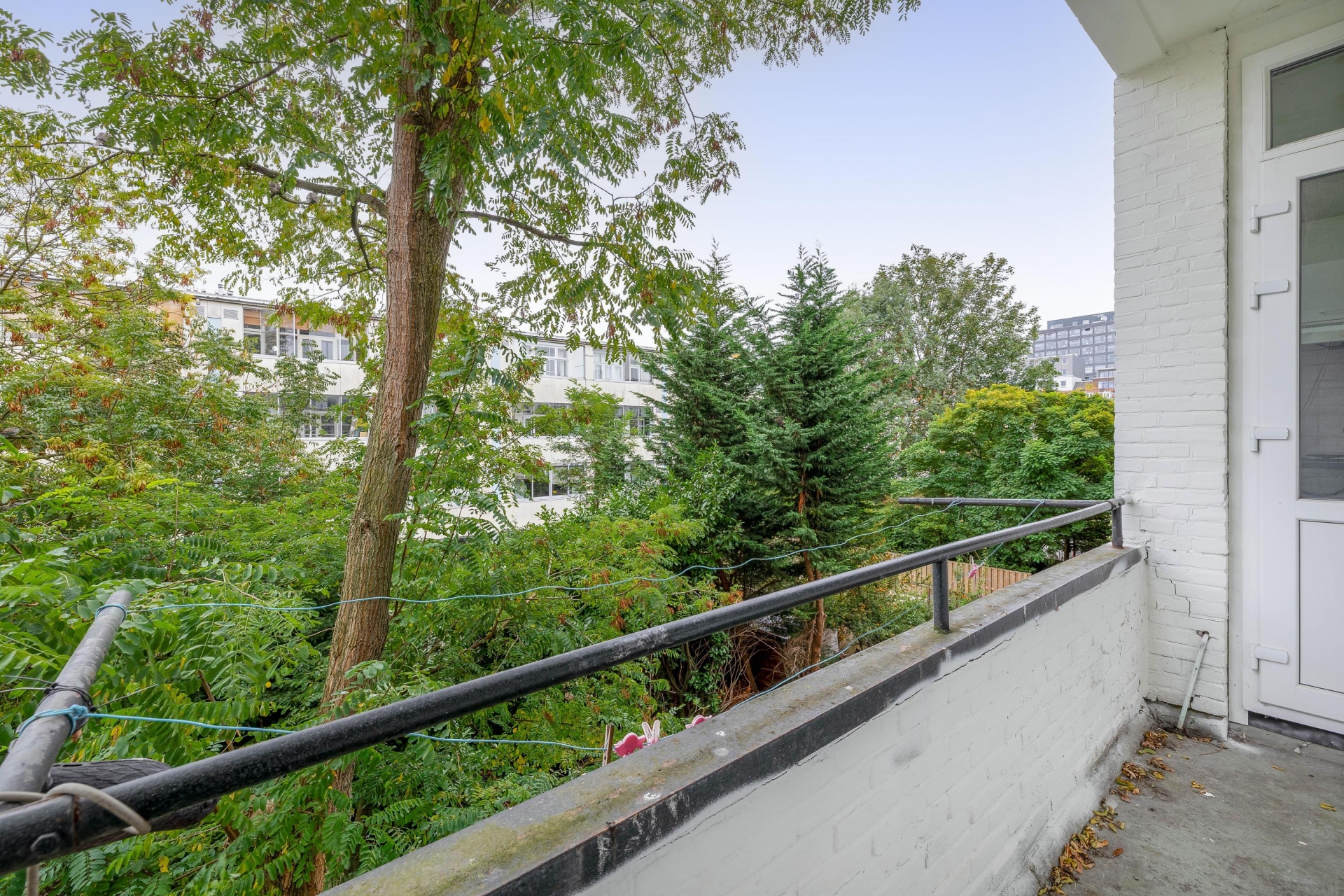 Aan de voorzijde ligt een frans balkon op het westen. Met de deur open, kun je nog van de laatste zonnestralen genieten. Aan de achterkant vind je een tweede balkon op het zuidoosten, perfect voor je eerste kop koffie in de ochtendzon.