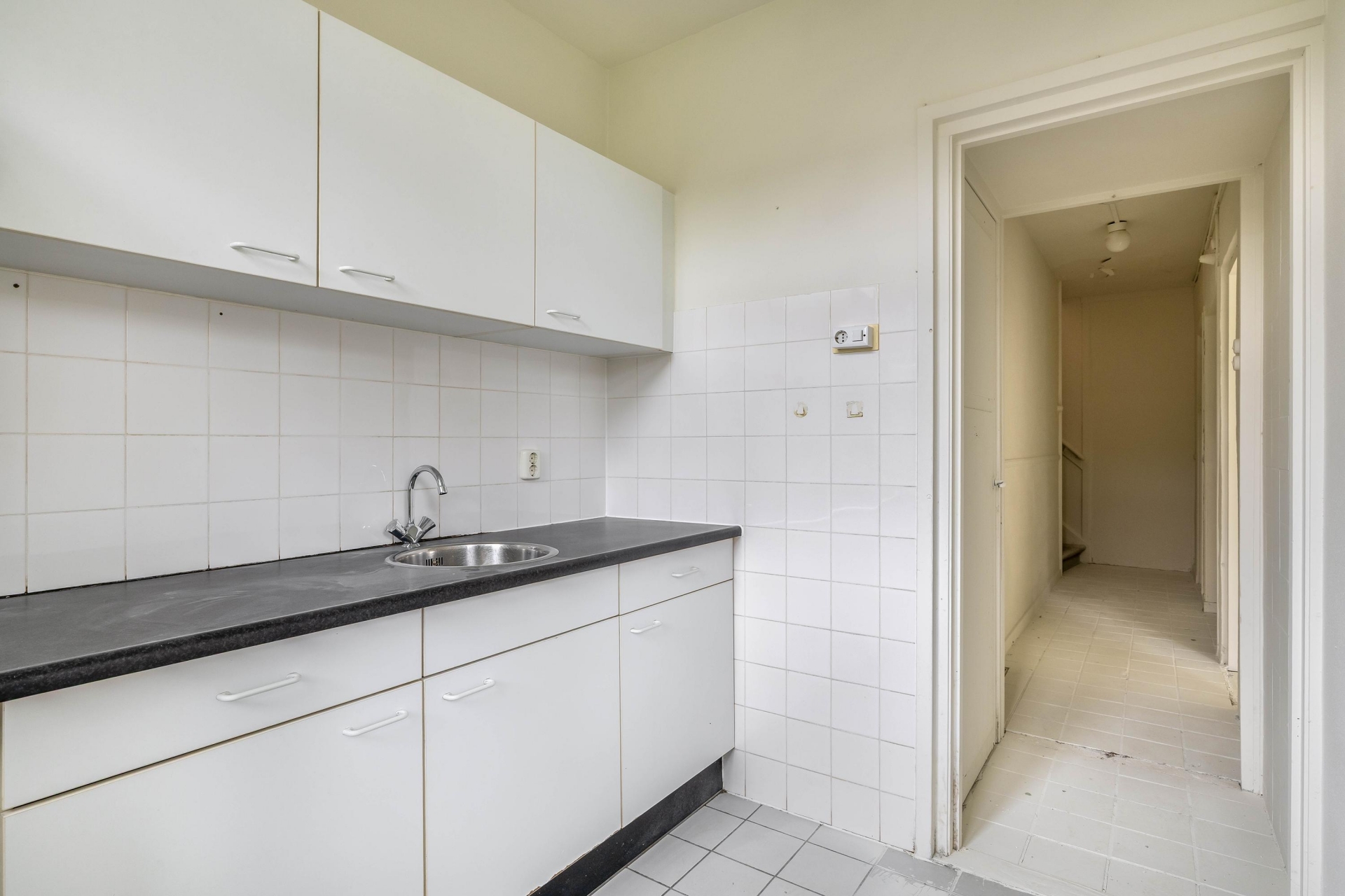 Dit is geen woning waar je je schoenen uitschopt en neerploft, maar waar je je handen uit de mouwen steekt en lekker aan de slag gaat. Dit maakt het juist zo aantrekkelijk. De indeling is ruim en functioneel, met een lichte doorzon woonkamer en een gesloten keuken aan de achterzijde. Hier ligt de kans om bijvoorbeeld een open leefruimte te creëren of een moderne woonkeuken te realiseren.