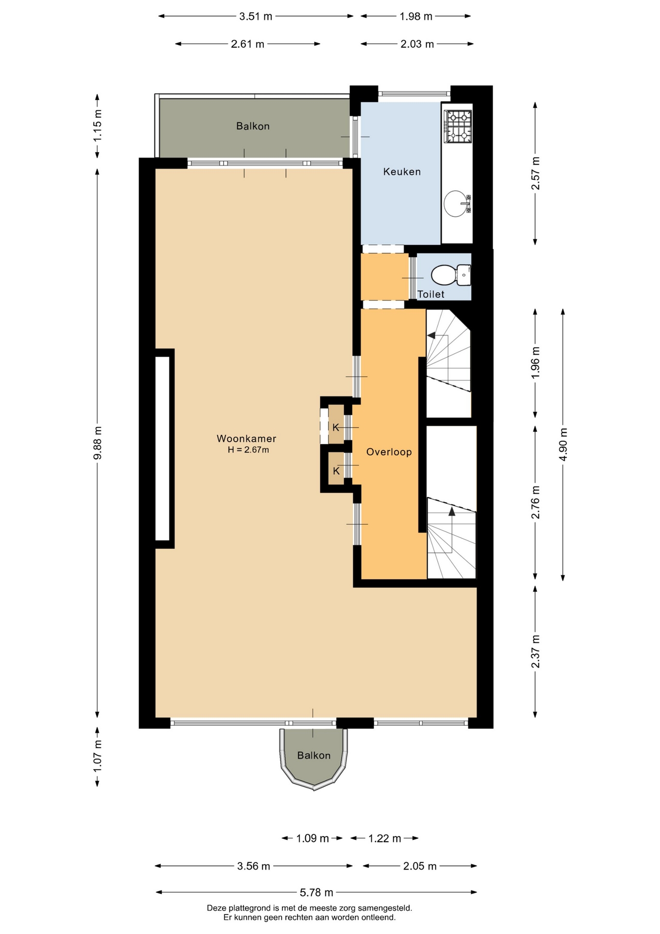 “Deze informatie is door ons met de nodige zorgvuldigheid samengesteld. Onzerzijds wordt echter geen enkele aansprakelijkheid aanvaard voor enige onvolledigheid, onjuistheid of anderszins, dan wel de gevolgen daarvan. Alle opgegeven maten en oppervlakten zijn indicatief.”