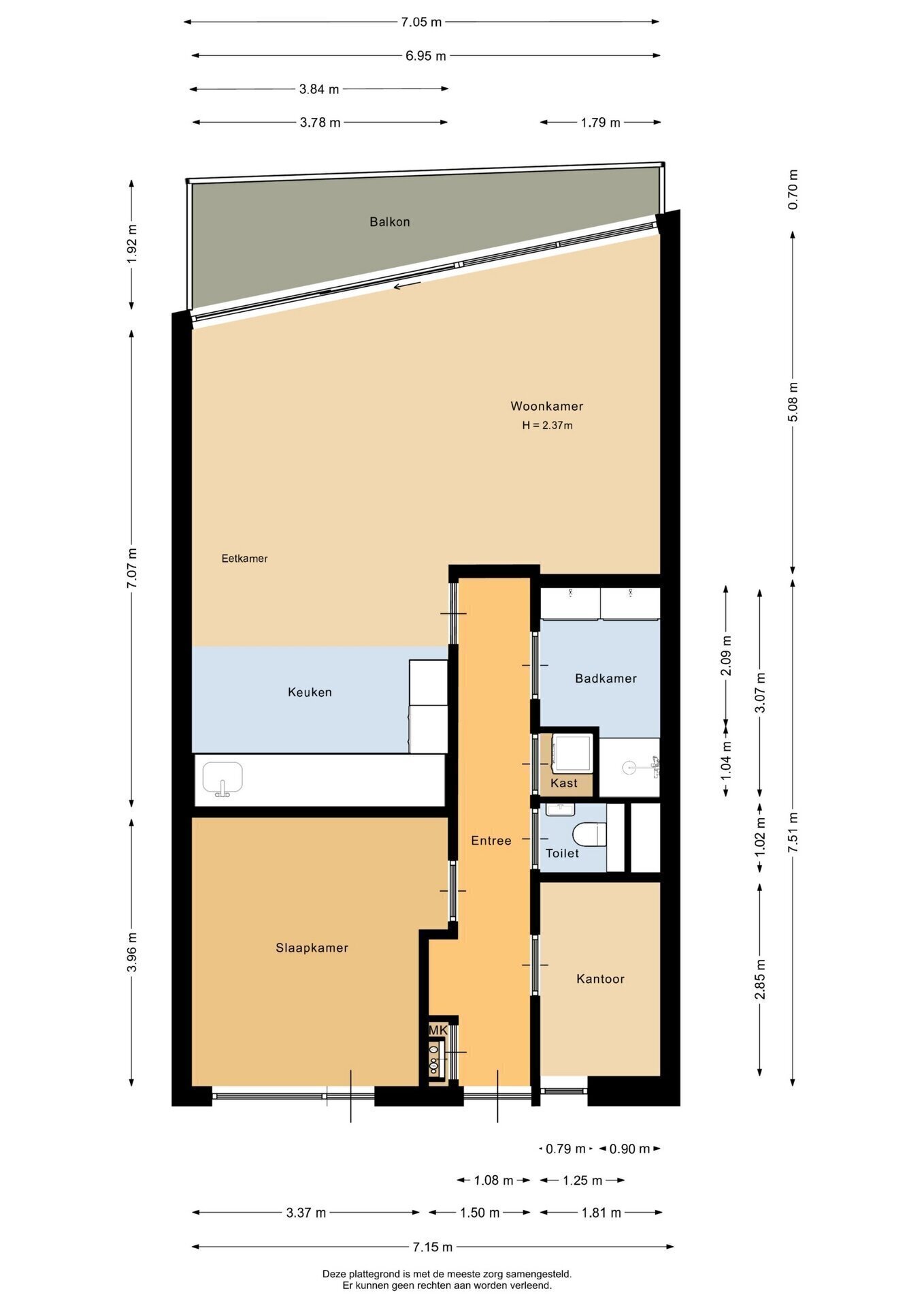 “Deze informatie is door ons met de nodige zorgvuldigheid samengesteld. Onzerzijds wordt echter geen enkele aansprakelijkheid aanvaard voor enige onvolledigheid, onjuistheid of anderszins, dan wel de gevolgen daarvan. Alle opgegeven maten en oppervlakten zijn indicatief.”