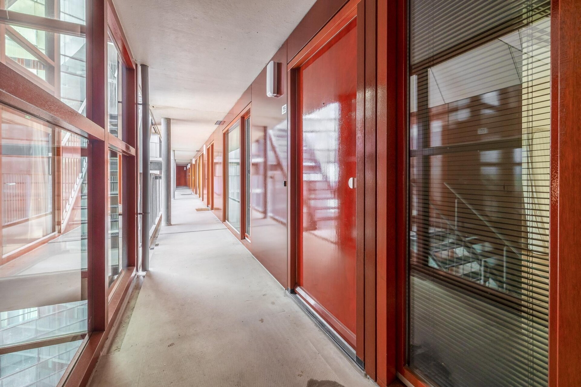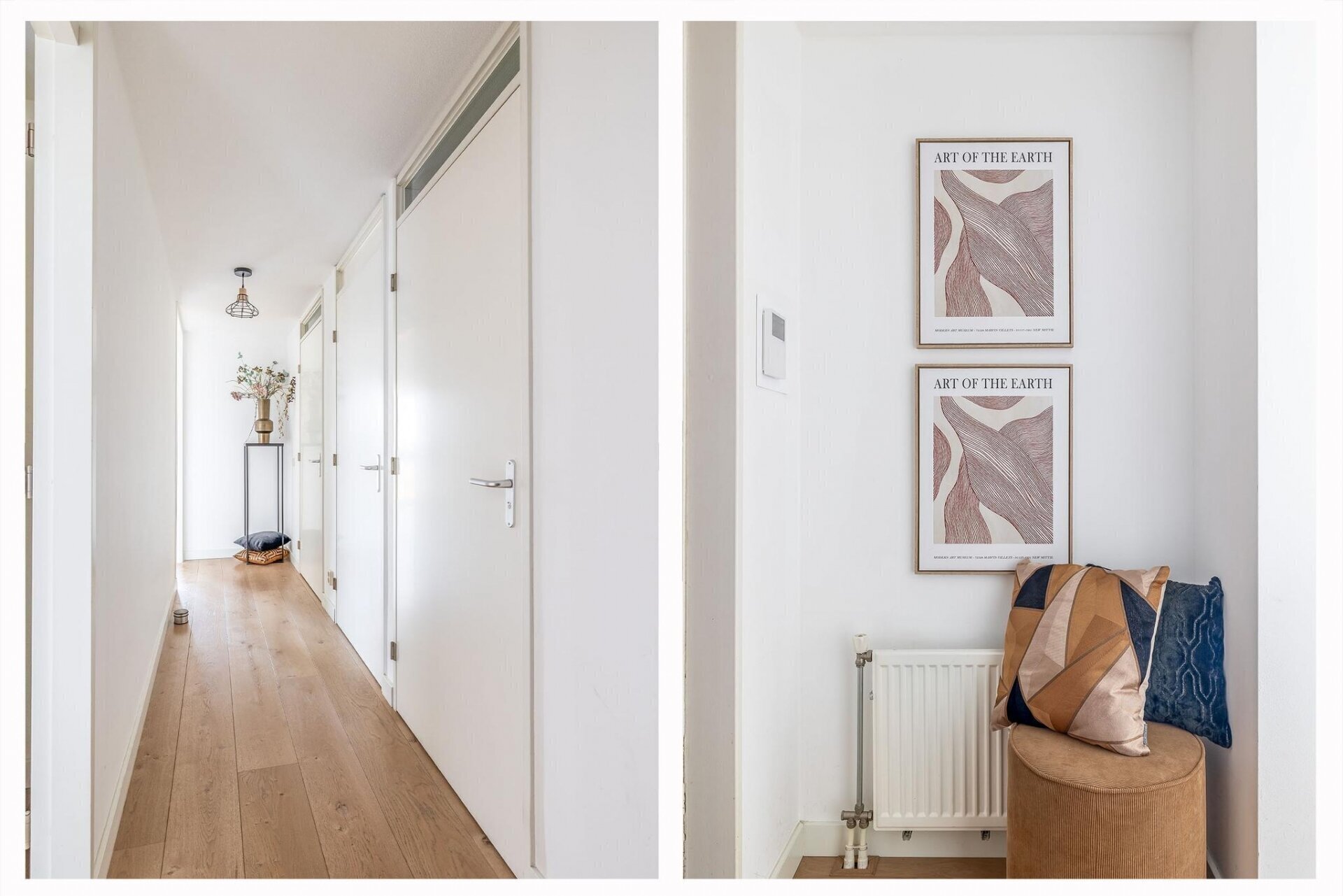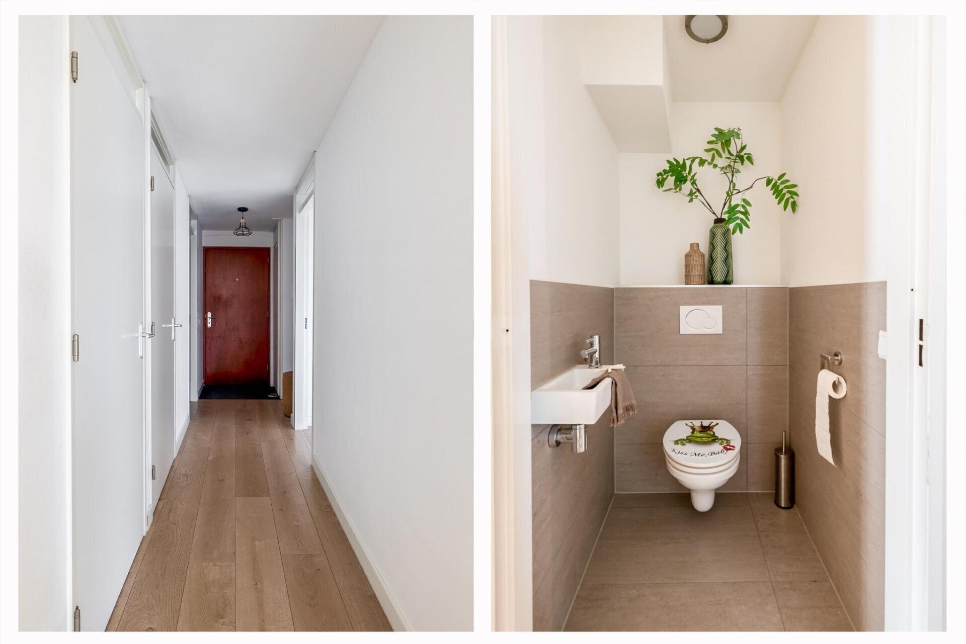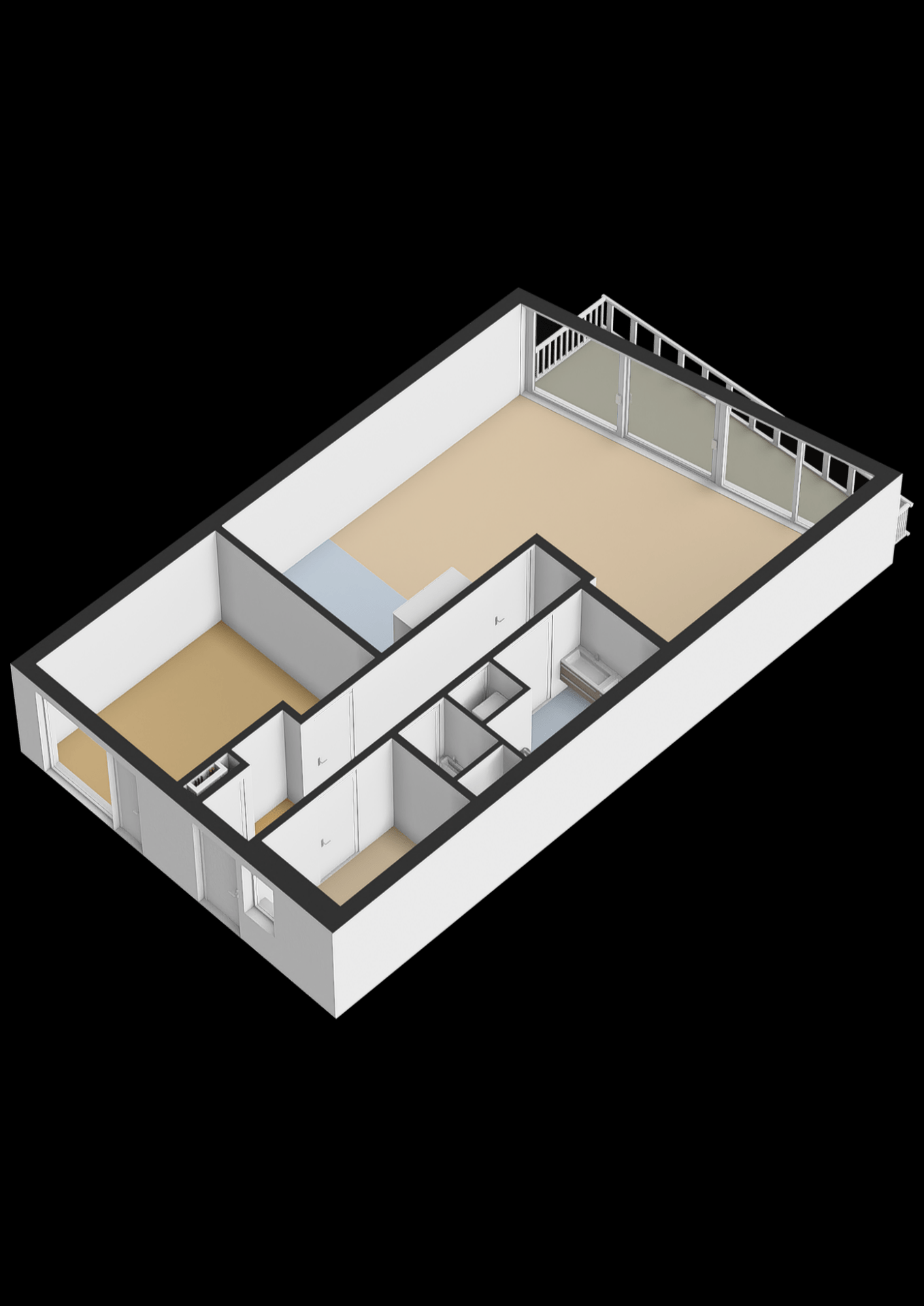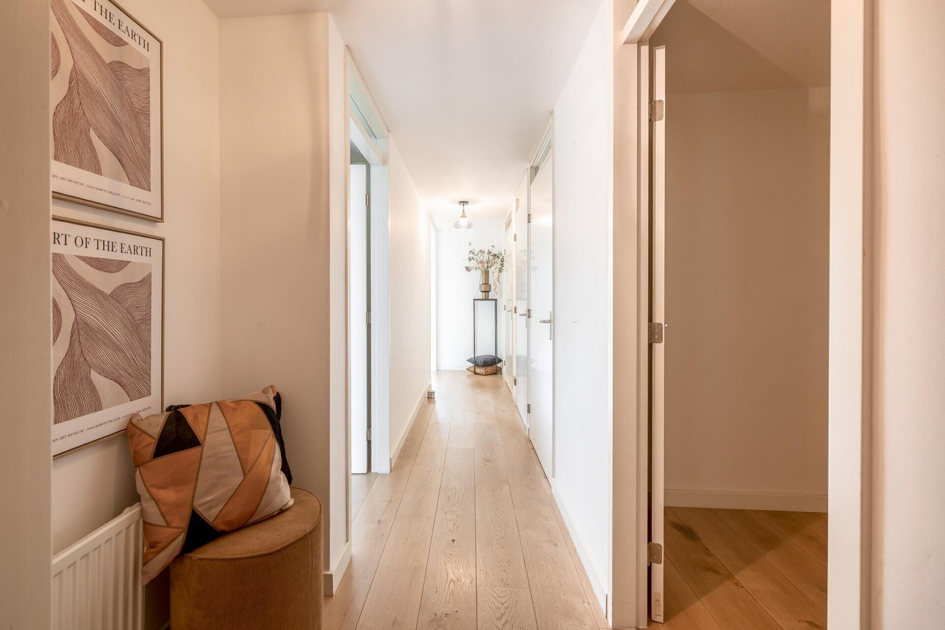 Entree, meterkast en royale hal die toegang biedt tot twee slaapkamers aan de voorzijde. De tweede slaapkamer is ideaal te gebruiken als werk- of studeerruimte. Een separate toiletruimte met wandcloset en fonteintje, naast een afgesloten kast met wasmachine- en drogeraansluiting. De doorloop leidt naar de lichte, praktisch ingedeelde woonkamer met open keuken en diverse inbouwapparatuur. In de zomermaanden creëer je een naadloze overgang naar buiten door de schuifdeuren naar de loggia te openen, en dankzij het slimme draaisysteem kunnen de ramen in de loggia eenvoudig open. Daarnaast is de zonwering in de Loggia ingebouwd, ideaal voor zonnige dagen! De badkamer is modern afgewerkt met een inloopdouche en een dubbele wastafel met meubel.