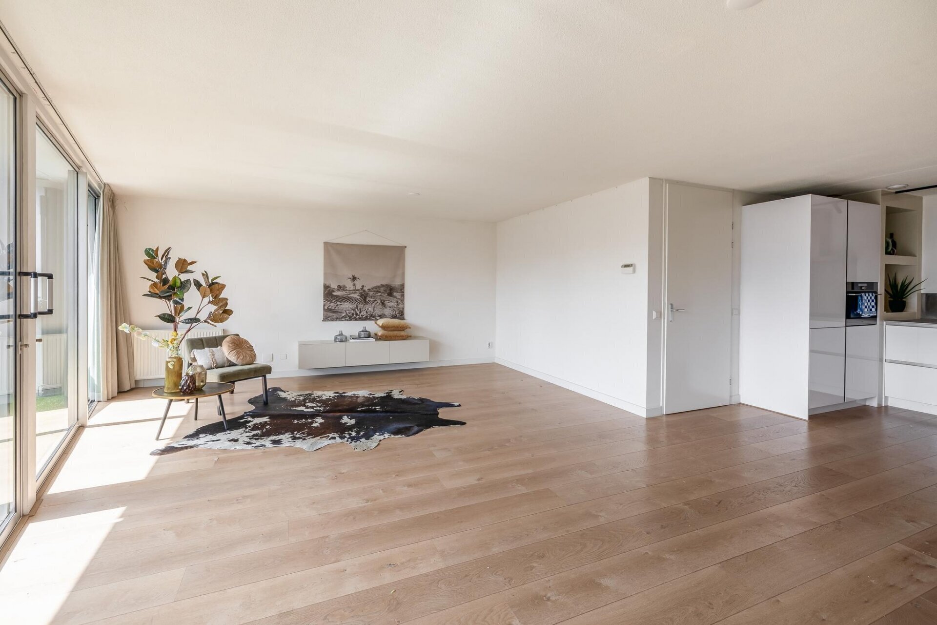 - Ruime, lichte woonkamer met grote raampartijen;