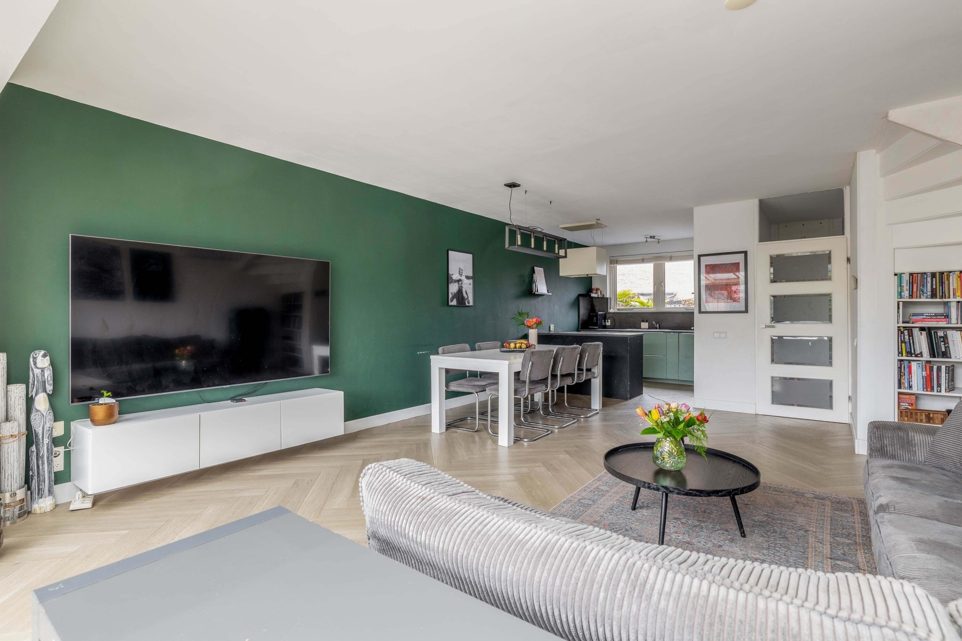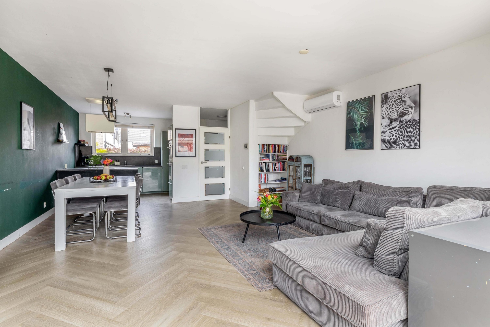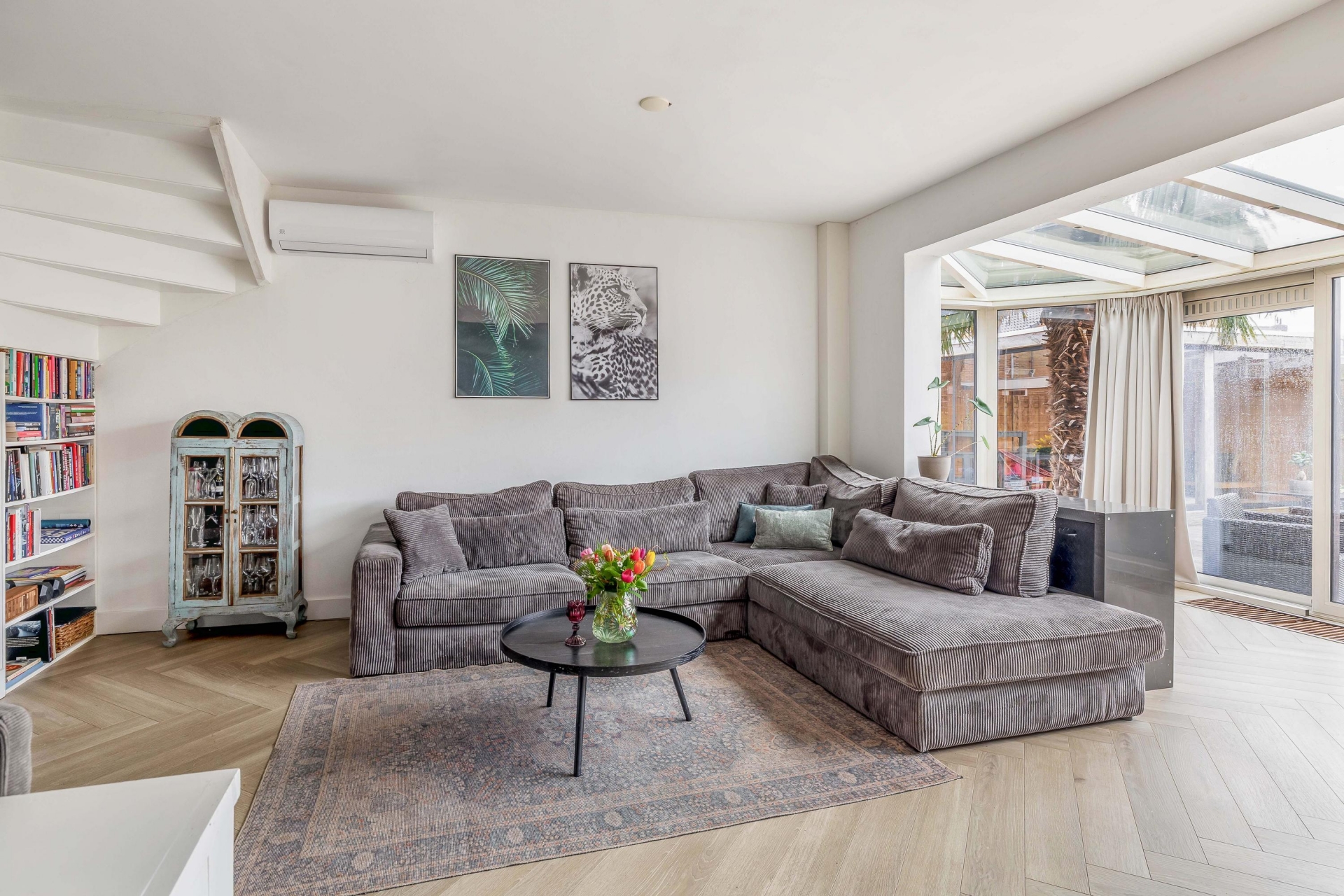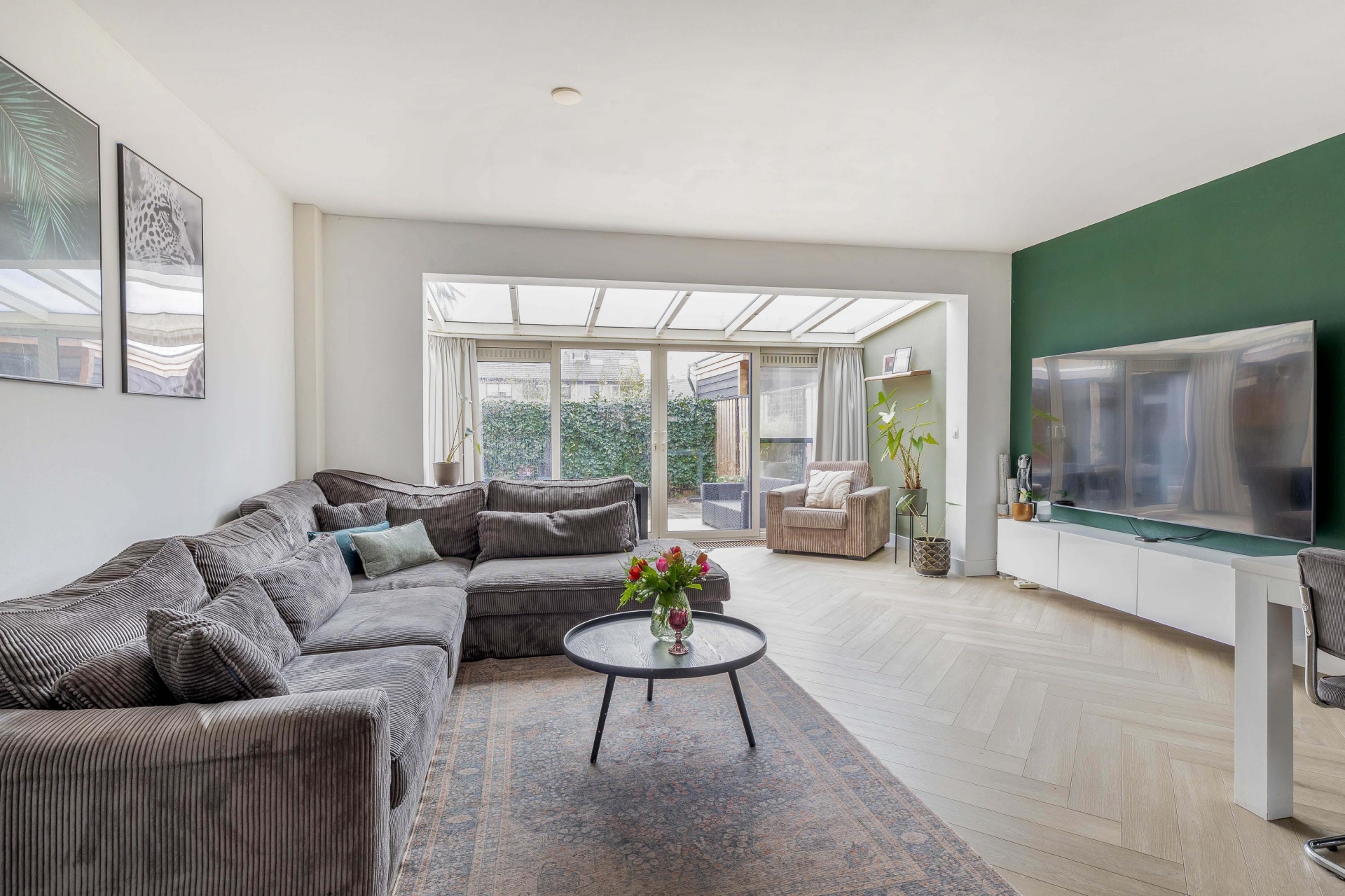 De woonkamer vormt het hart van het huis. Hier valt meteen op hoe ruim en licht de leefruimte is. Grote raampartijen en de openslaande deuren naar de tuin zorgen voor een fijne verbinding tussen binnen en buiten. Hierdoor voelt de woonkamer niet alleen ruim, maar ook heerlijk licht gedurende de dag.