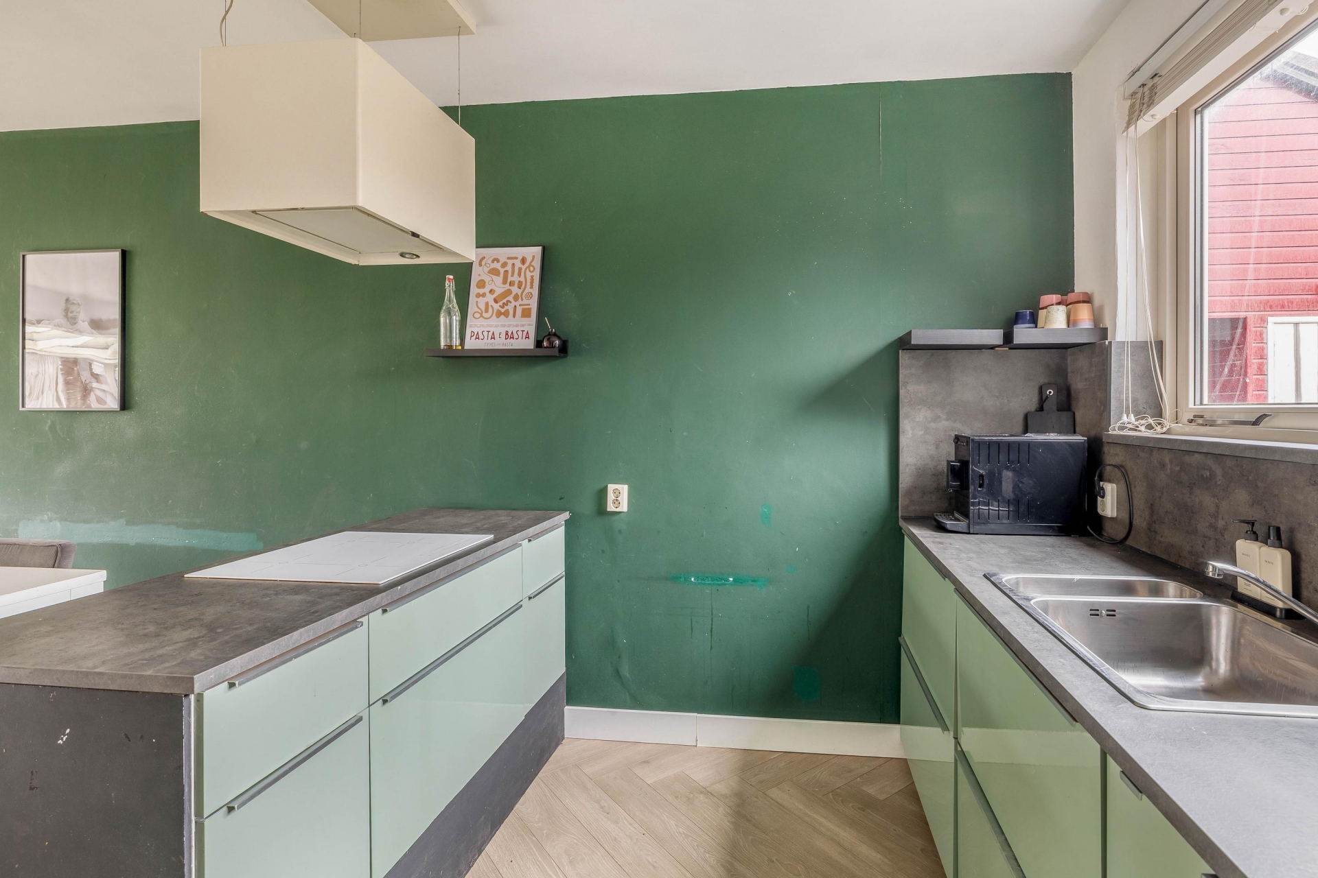 Door de praktische indeling is de leefruimte goed in te richten en past deze zich gemakkelijk aan aan de wensen van een gezin. Aan de voorzijde van de woning is de keuken gesitueerd met kookeiland en alle benodigde apparatuur.