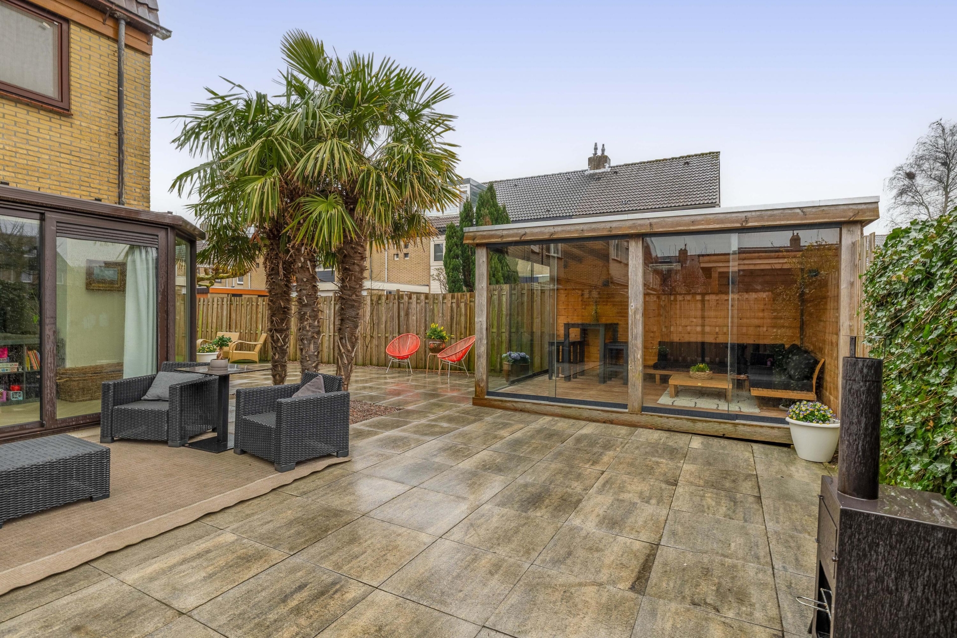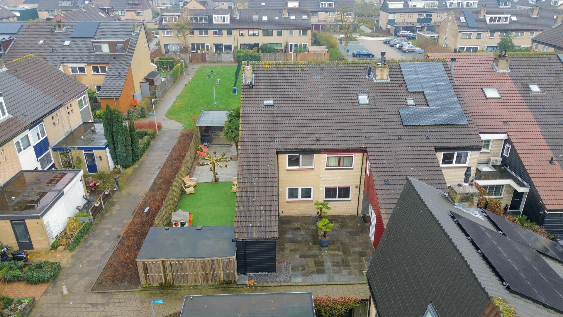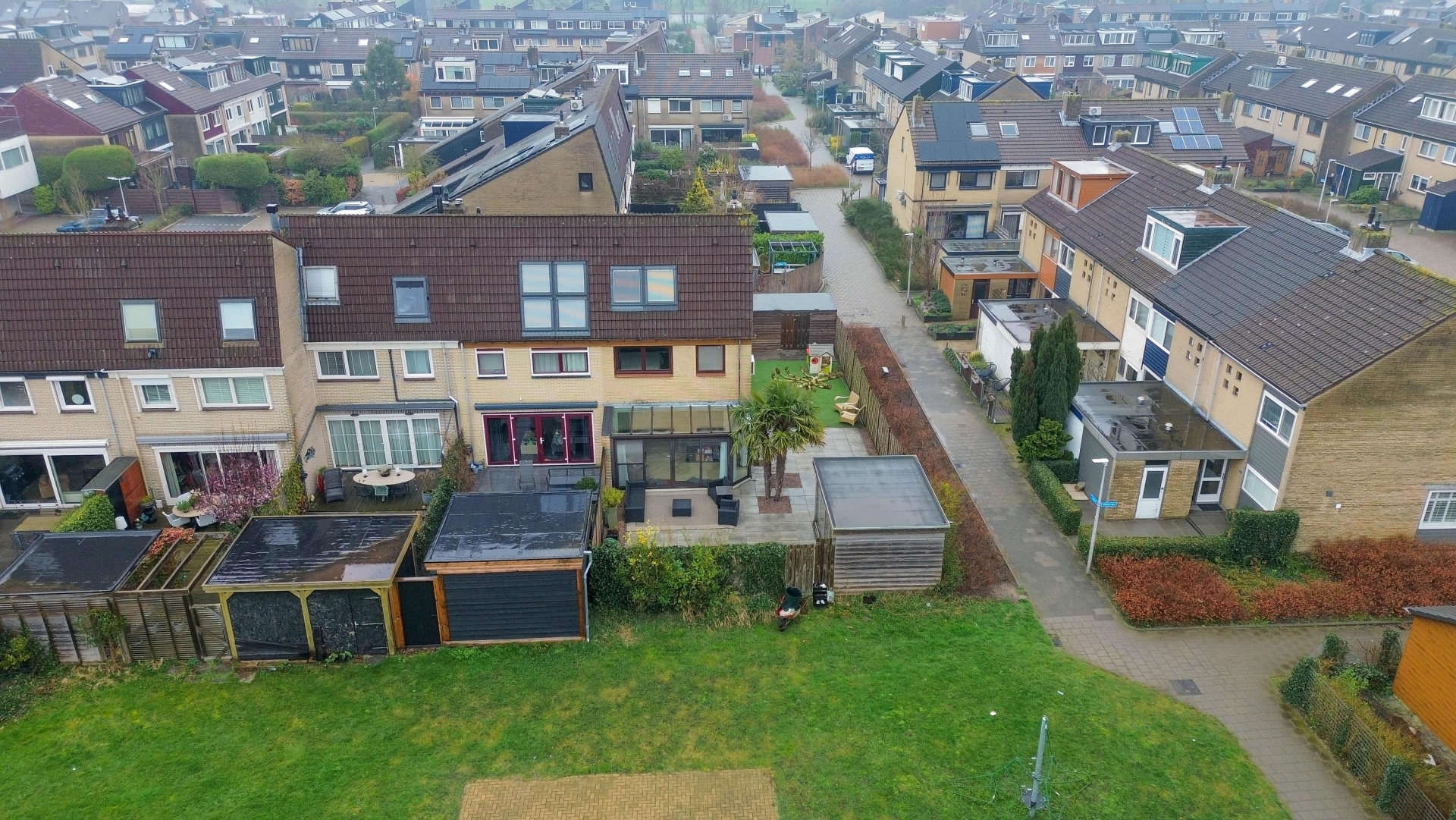 De achtertuin ligt gunstig op het zuidwesten, waardoor je hier vrijwel de hele dag van de zon kunt genieten. De tuin is ruim genoeg voor meerdere zitplekken, zodat je altijd een plek in de zon of juist in de schaduw kunt vinden. De hardhptuen overkapping mét heater is de ideale plek om het gehele jaar door te genieten van de tuin. Daarnaast zorgt de zijtuin voor extra ruimte en privacy. Hierdoor voelt het perceel nog groter aan en ontstaat een vrij gevoel rondom het huis. In een woonwijk waar ruimte soms schaars is, is dit een bijzonder fijne toevoeging.