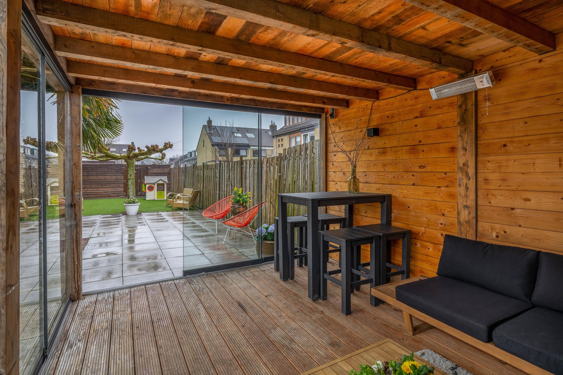 Een van de grote pluspunten van dit huis is zonder twijfel de zeer ruime tuin. Dankzij het royale perceel van 275 m² beschikt het huis niet alleen over een ruime achtertuin, maar ook over een extra zijtuin. Hierdoor ontstaat een heerlijke buitenruimte rondom het huis.