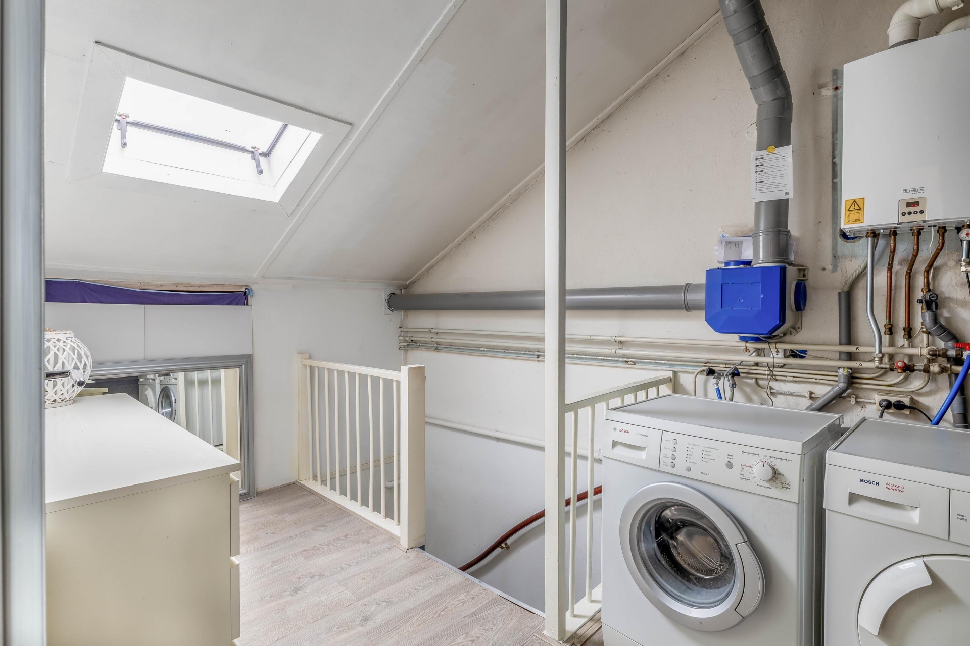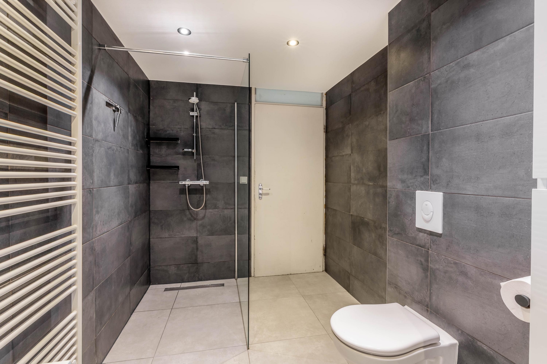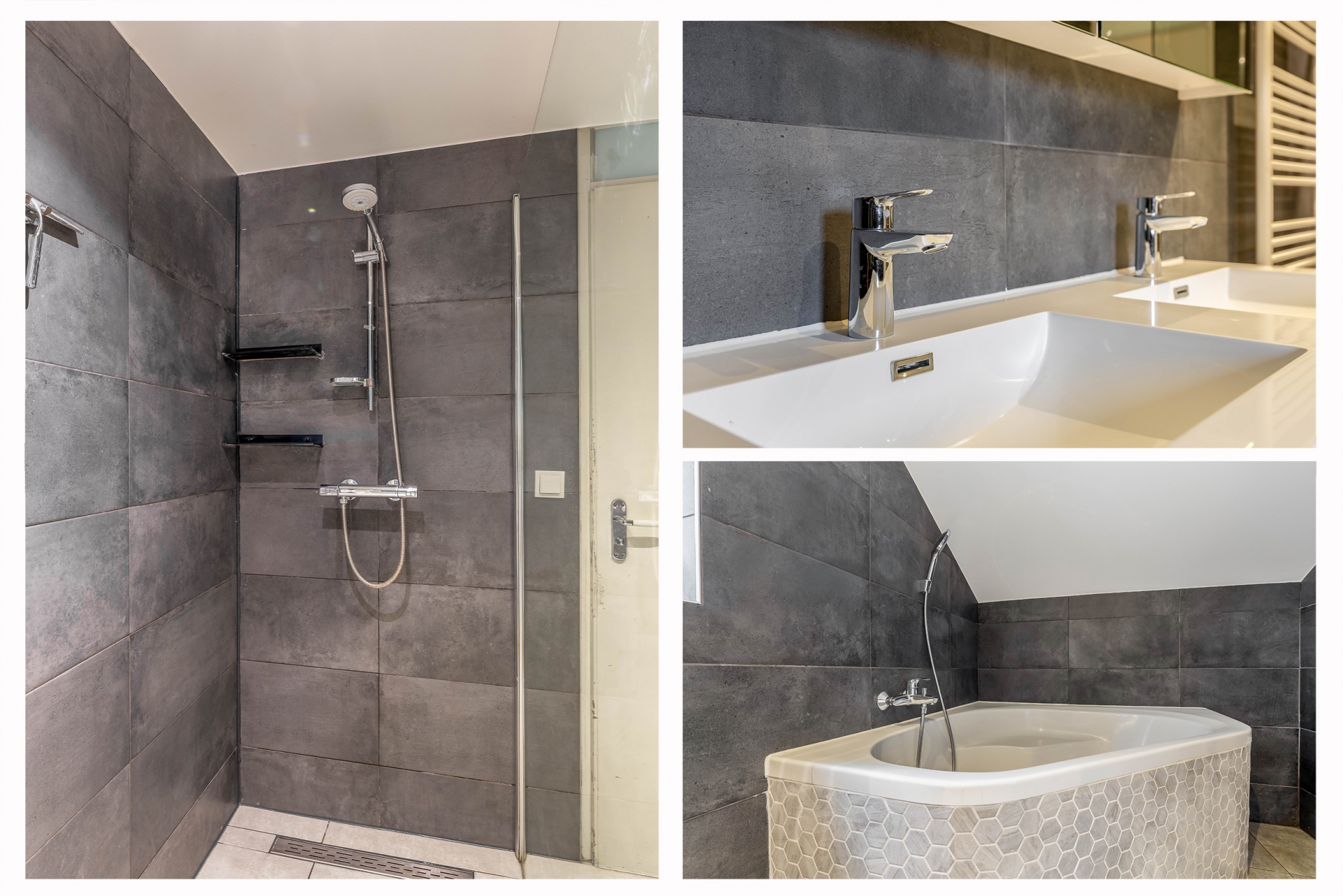 De badkamer is recent gerenoveerd en heeft een moderne en verzorgde uitstraling. Hier vind je een ligbad, een ruime douche en een stijlvol wastafelmeubel met dubbele wastafel. De combinatie van moderne tegels, strakke afwerking en praktische indeling zorgt ervoor dat deze ruimte zowel comfortabel als eigentijds aanvoelt. Met drie woonlagen biedt het huis bovendien voldoende mogelijkheden om de ruimtes naar eigen wens in te delen.