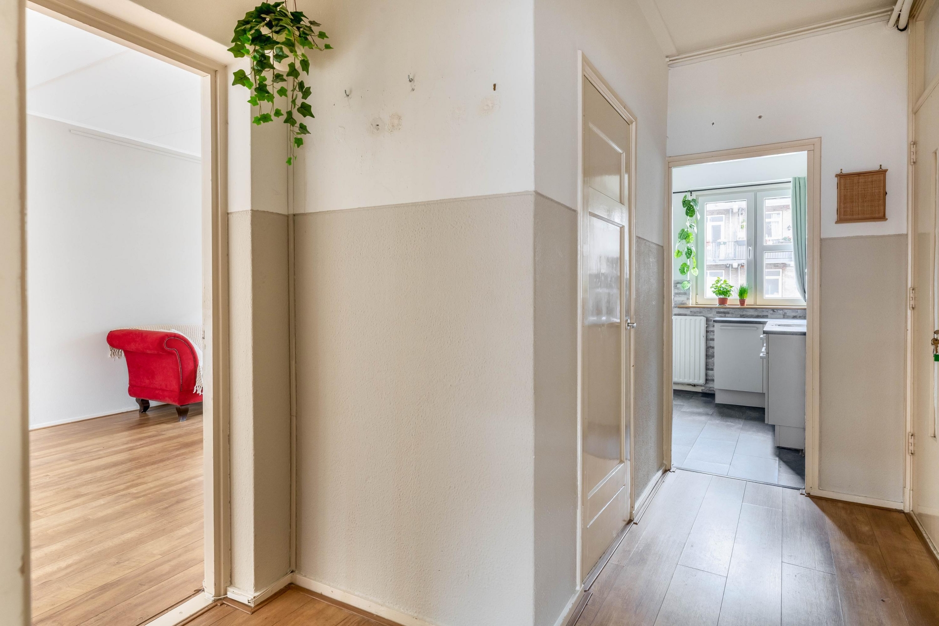 Aan de achterzijde vind je de gesloten keuken, ideaal als je geen fan bent van kookluchtjes in je woonkamer. De keuken verkeerd in een nette staat en bied gelijk toegang tot het balkon. Dit ligt aan de rustige achterzijde van het pand, perfect voor een kop koffie in de ochtendzon of een borrel aan het eind van de dag.