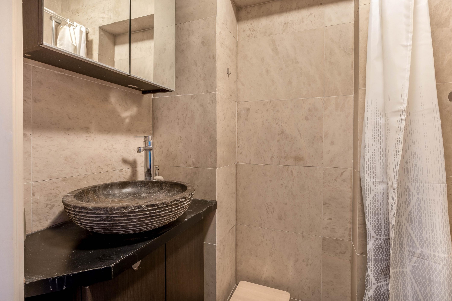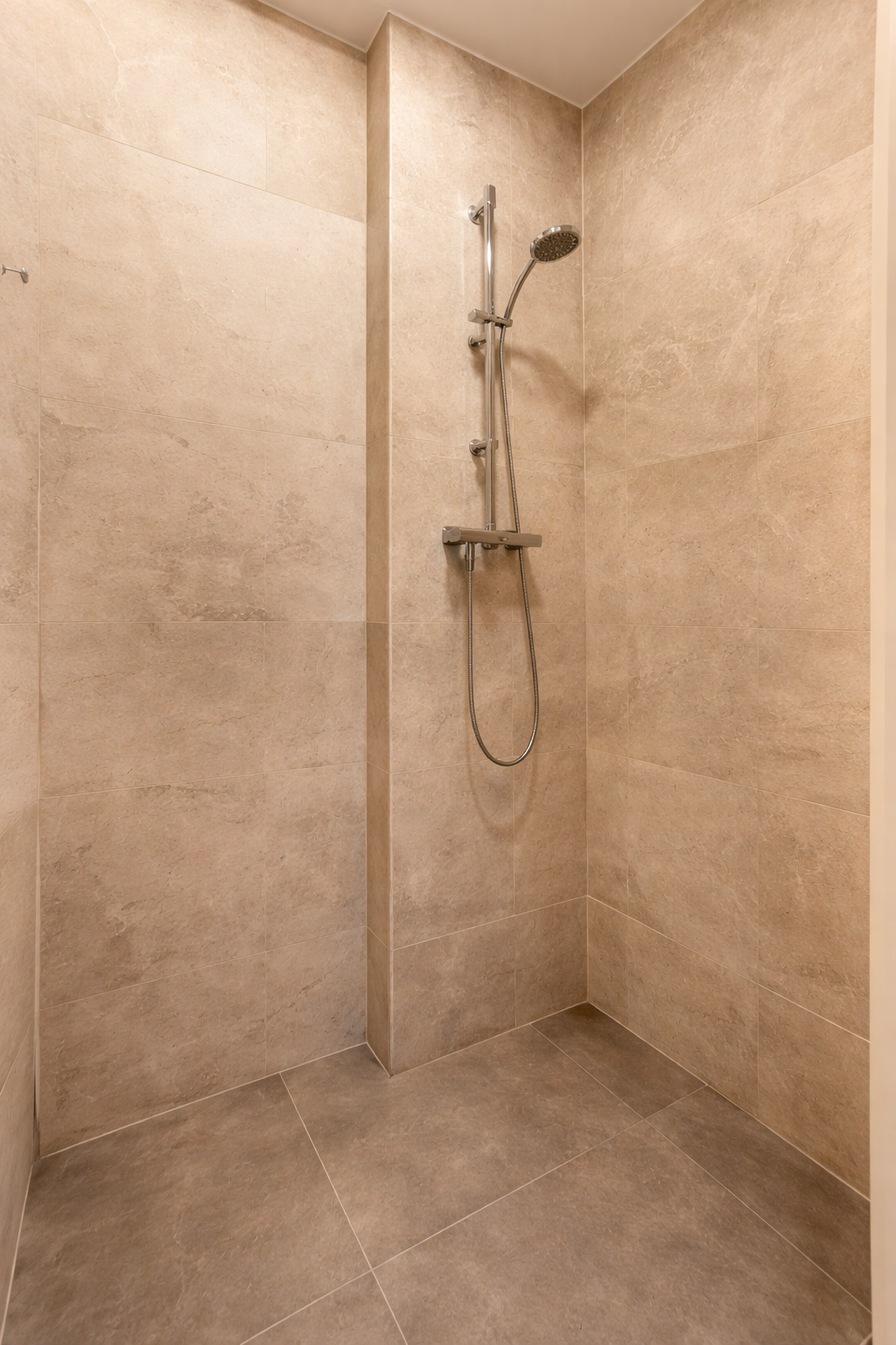 De aparte slaapkamer ligt aan de rustige kant van het appartement en is groot genoeg voor een tweepersoonsbed en een flinke kast. Prettig detail: het toilet en de douche zijn gescheiden van elkaar, wat het dagelijks gebruik net even makkelijker maakt. Een slimme indeling dus, zonder ruimte te verliezen.