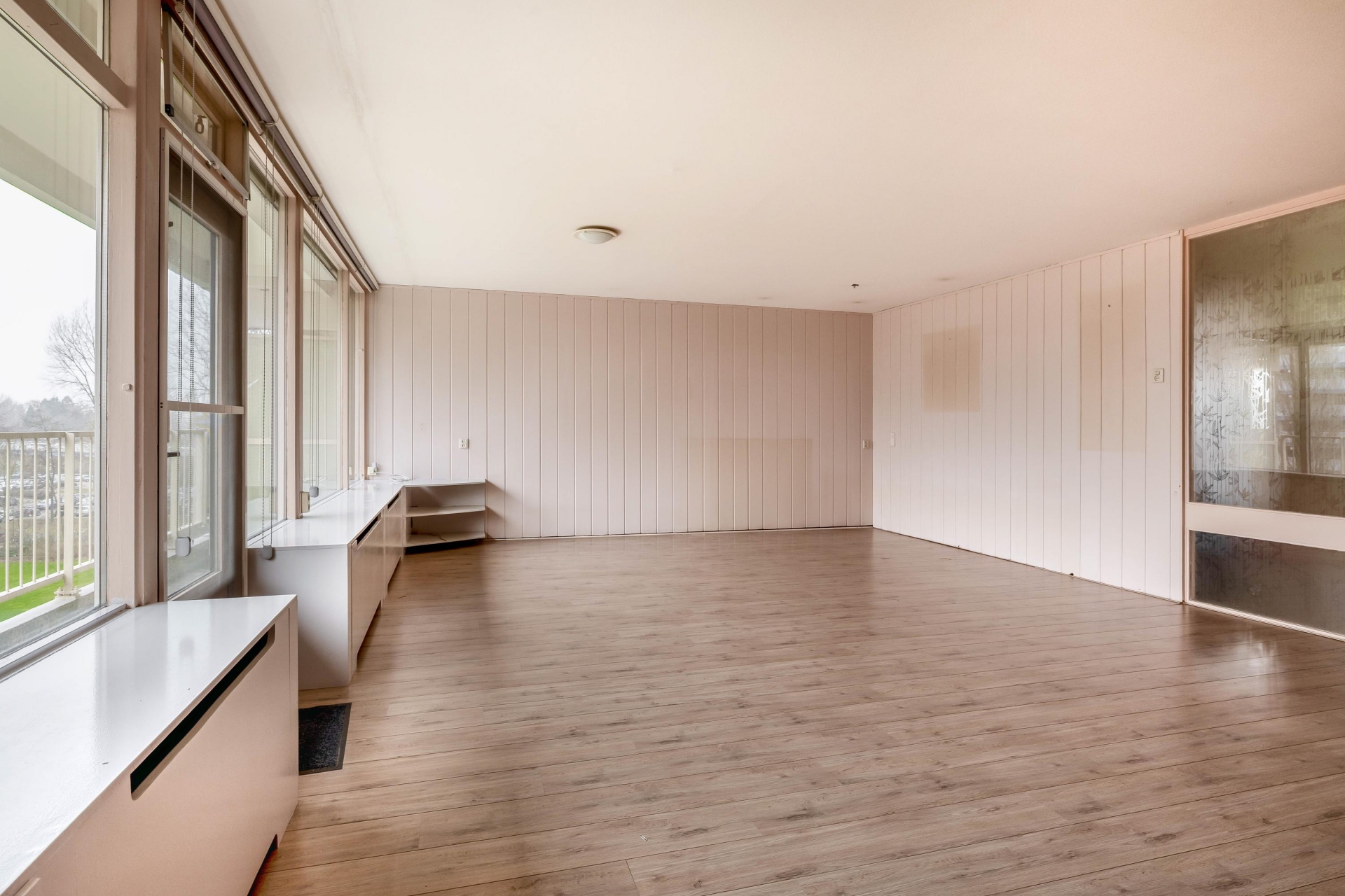 Bij het betreden van de woonkamer valt direct de ruimte en de prettige lichtinval op! Vanuit de woonkamer is er toegang tot het balkon, dat aan de achterzijde is gelegen. Het balkon ligt op het zuidwesten, waardoor je hier de hele middag en avond van de zon kunt genieten. Bovendien kijk je vanuit de woonkamer uit op het omliggende groen, wat zorgt voor een rustige en fijne woonbeleving.