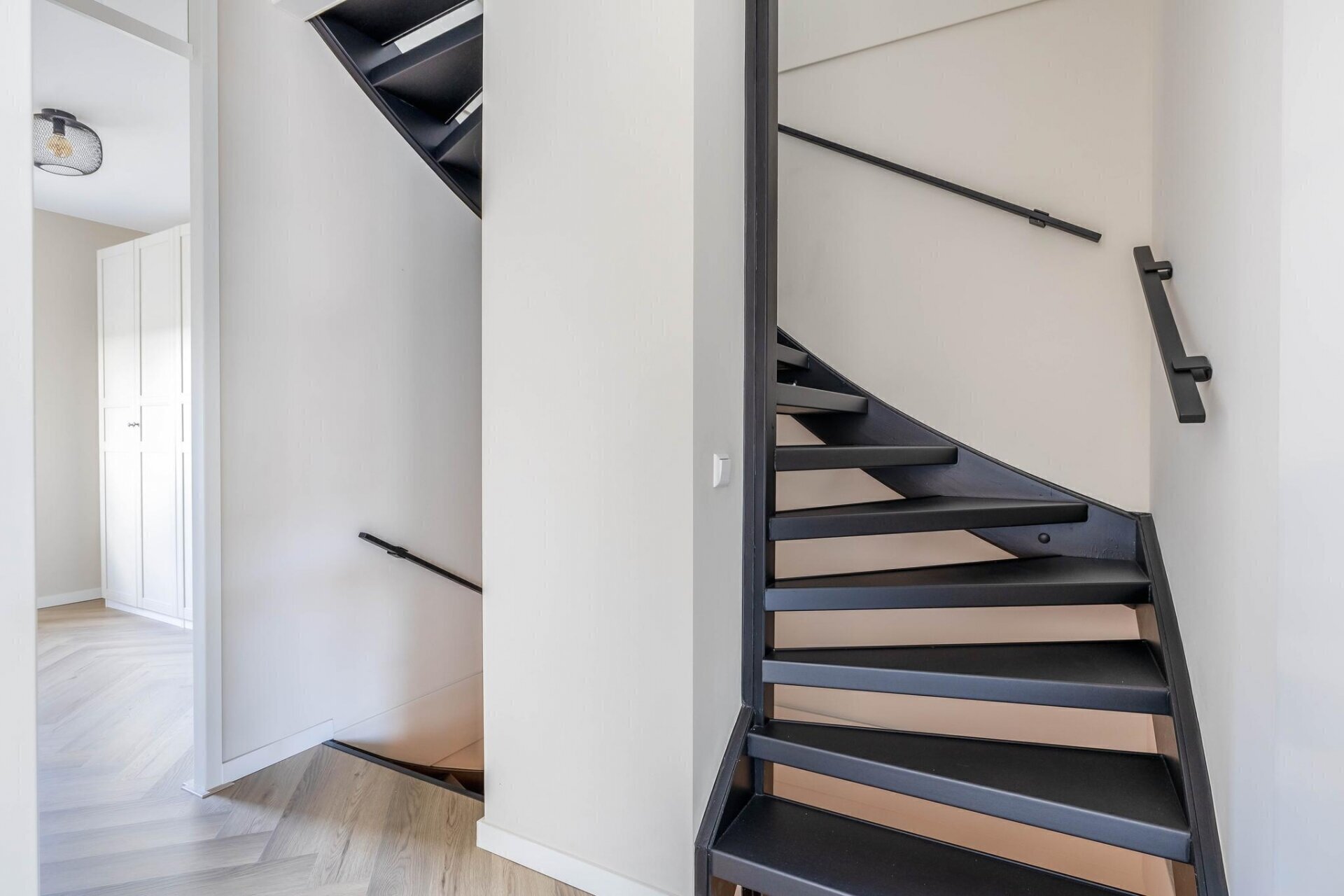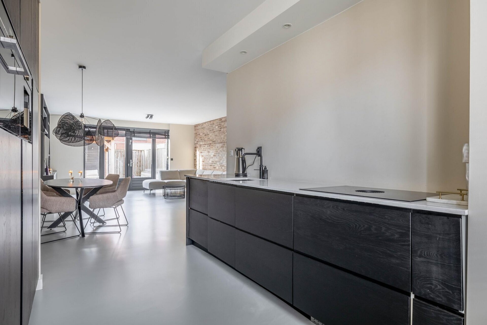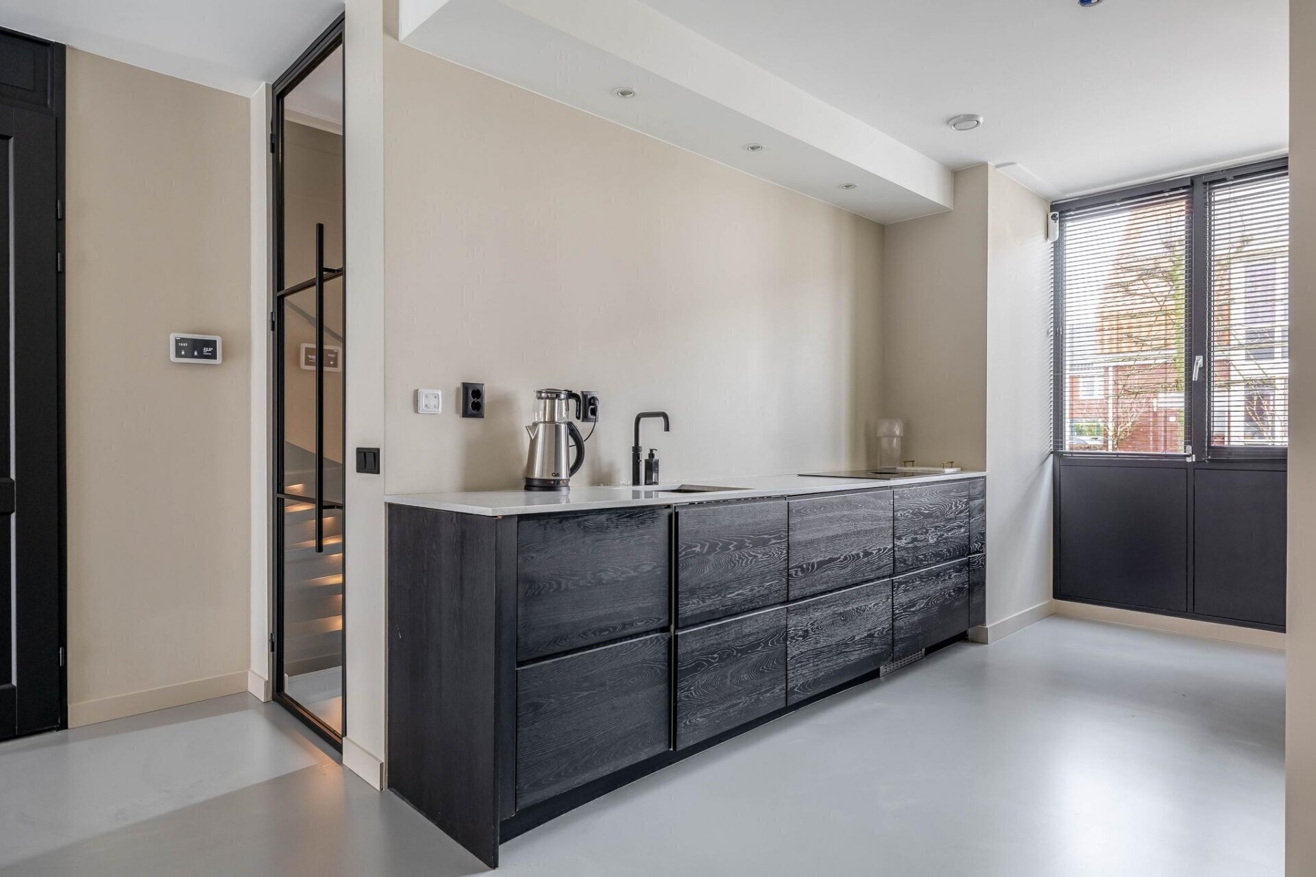 Entree, hal, meterkast, volledig betegelde toiletruimte met hangend closet en fonteintje en trapopgang naar de bovengelegen verdiepingen. Vanuit de hal loop je door naar de verrassend ruime woonkamer van ca. 31m2. Deze woonkamer is geheel voorzien van vloerverwarming, een fraaie gietvloer, mooie cinewall en openslaande deuren naar de achtertuin. Aan de voorzijde van de woning bevindt zich de keuken. De keuken is uitgevoerd met een zwarte kleurstelling en beschikt over diverse inbouwapparatuur te weten; koelkast, vriezer, combi oven, koffiemachine, vaatwasser, inductie kookplaat en RvS spoelbak met Quooker kraan. Dan de achtertuin. Deze heerlijke achtertuin is gelegen op het westen, is onderhoudsarm aangelegd en voorzien van een fraaie overkapping en eigen achterom!