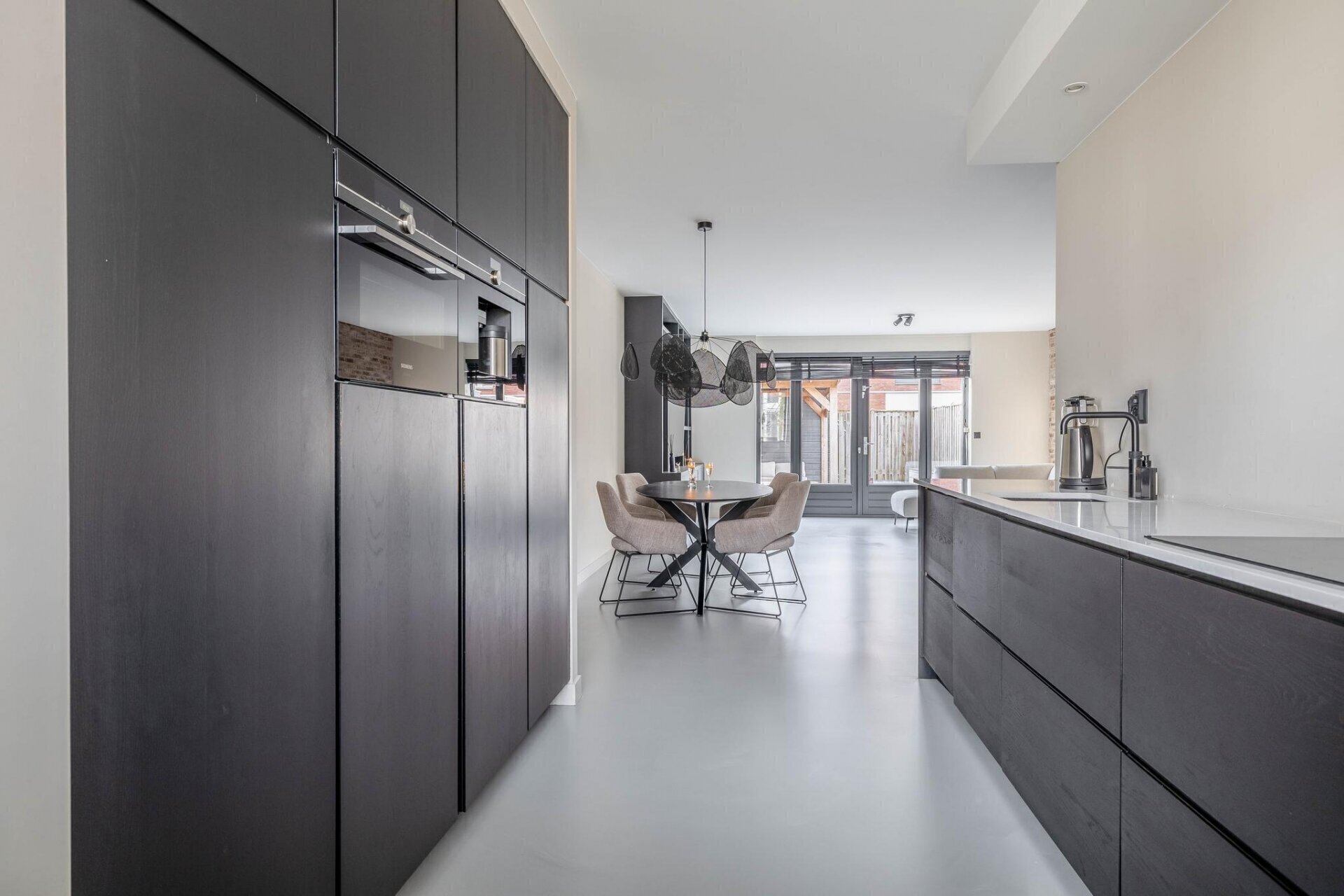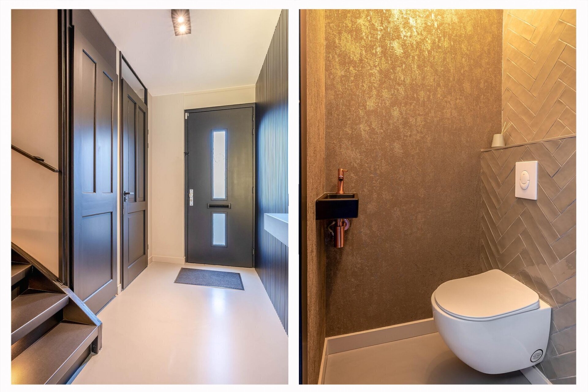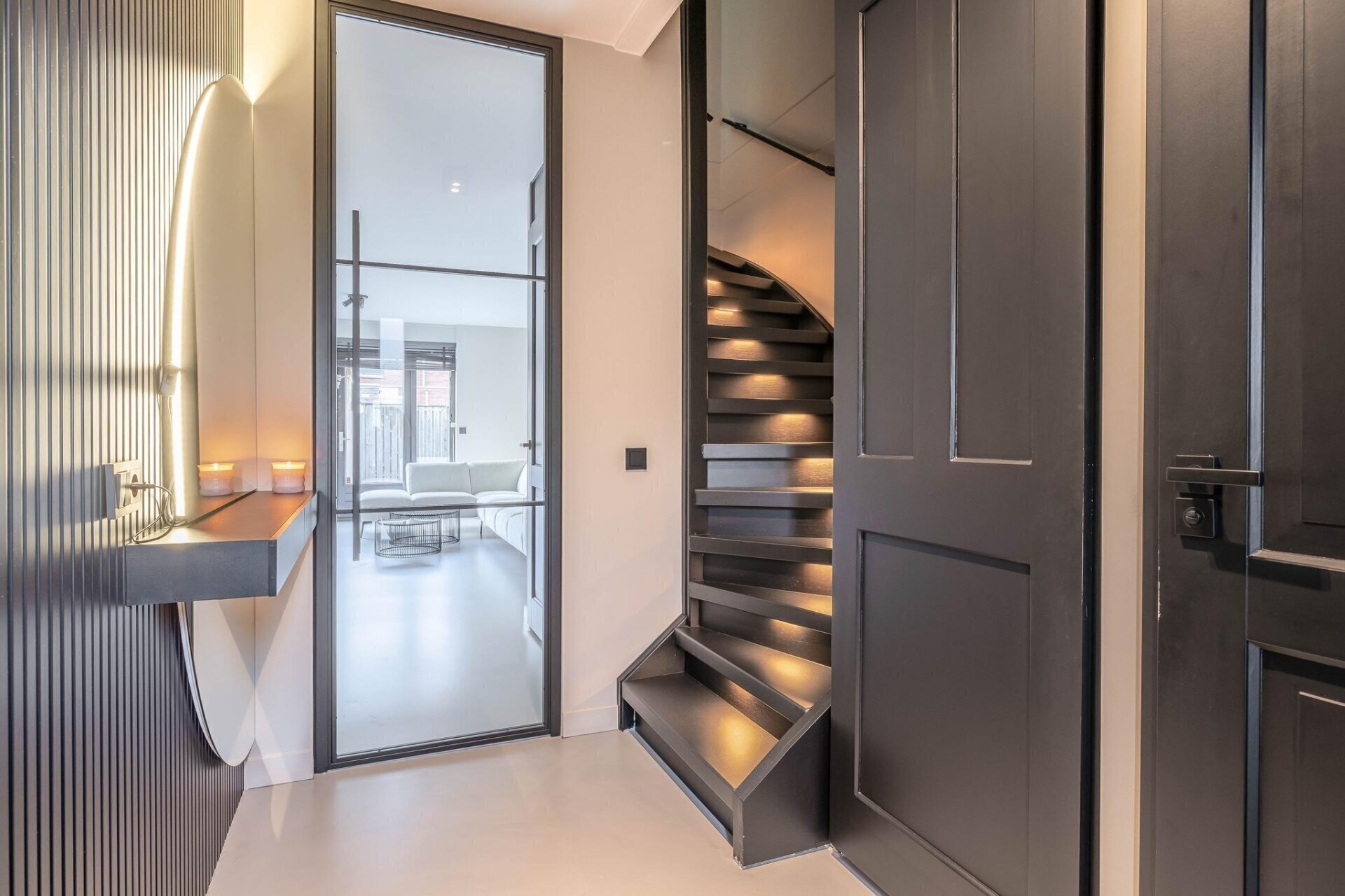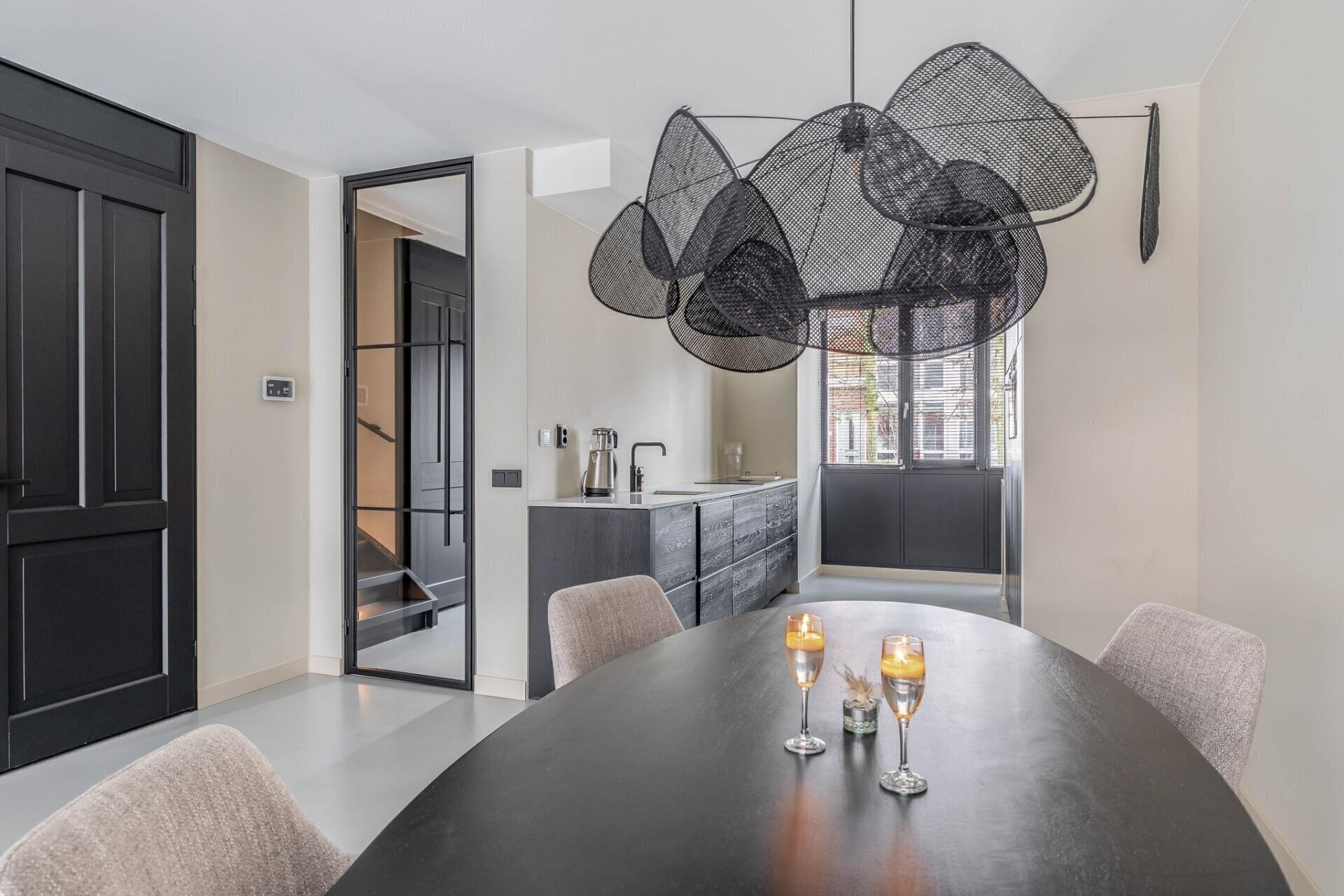 Entree, hal, meterkast, volledig betegelde toiletruimte met hangend closet en fonteintje en trapopgang naar de bovengelegen verdiepingen. Vanuit de hal loop je door naar de verrassend ruime woonkamer van ca. 31m2. Deze woonkamer is geheel voorzien van vloerverwarming, een fraaie gietvloer, mooie cinewall en openslaande deuren naar de achtertuin. Aan de voorzijde van de woning bevindt zich de keuken. De keuken is uitgevoerd met een zwarte kleurstelling en beschikt over diverse inbouwapparatuur te weten; koelkast, vriezer, combi oven, koffiemachine, vaatwasser, inductie kookplaat en RvS spoelbak met Quooker kraan. Dan de achtertuin. Deze heerlijke achtertuin is gelegen op het westen, is onderhoudsarm aangelegd en voorzien van een fraaie overkapping en eigen achterom!