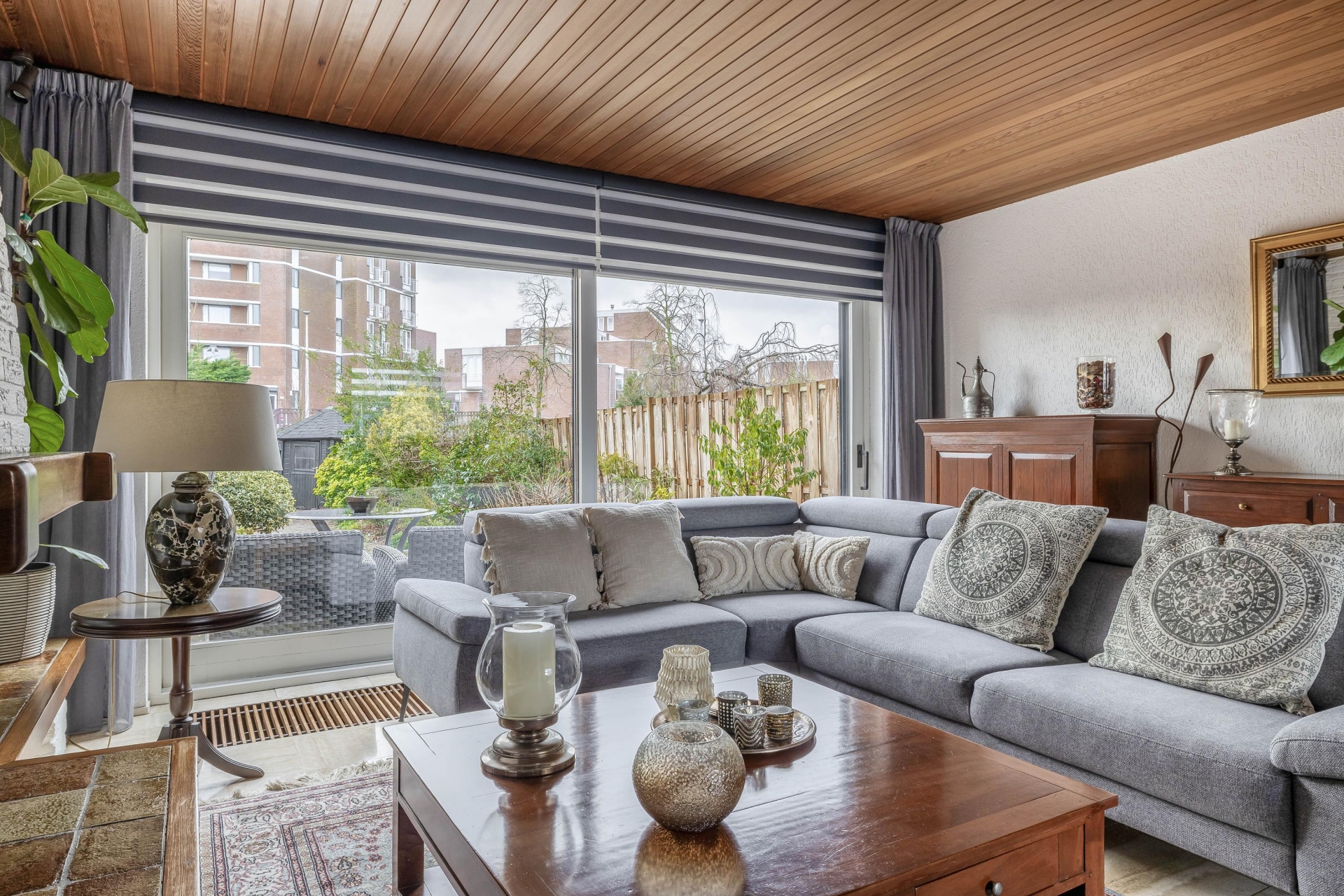 Met een perceeloppervlakte van maar liefst 229 m² eigen grond en bijvoorbeeld een zonnige achtertuin op het zuidoosten van maar liefst 20 meter diep kunt u zich heerlijk uitleven in de tuin. Geen groene vingers ? De tuin kan uiteraard ook heerlijk onderhoudsvriendelijk gemaakt worden. Door de afmetingen van de tuin kunt u altijd kiezen voor een plekje in de zon! Toch liever in de schaduw ? Geen probleem dankzij het elektrisch bedienbare zonnescherm. De achtertuin is verder voorzien van een houten berging, buitenkraan en achterom.