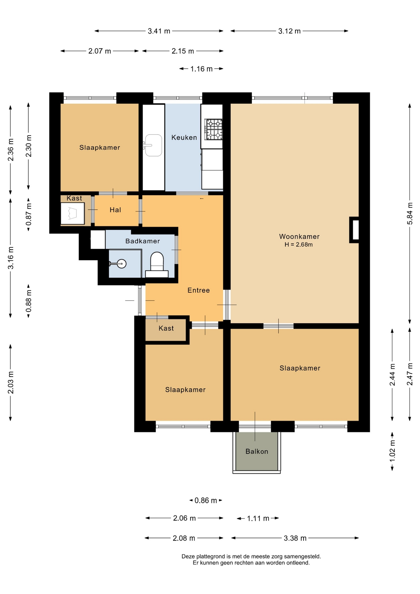 “Deze informatie is door ons met de nodige zorgvuldigheid samengesteld. Onzerzijds wordt echter geen enkele aansprakelijkheid aanvaard voor enige onvolledigheid, onjuistheid of anderszins, dan wel de gevolgen daarvan. Alle opgegeven maten en oppervlakten zijn indicatief.”