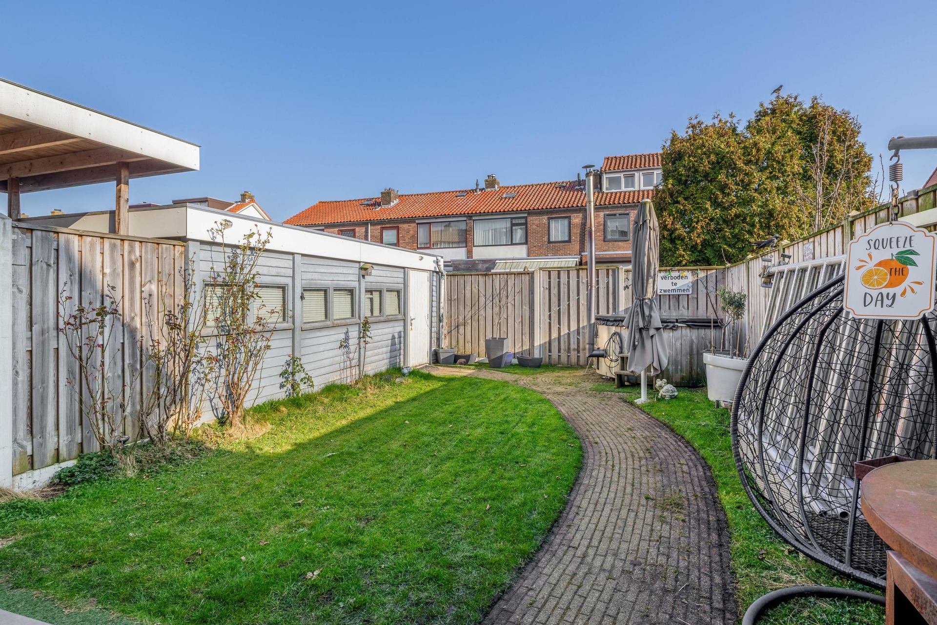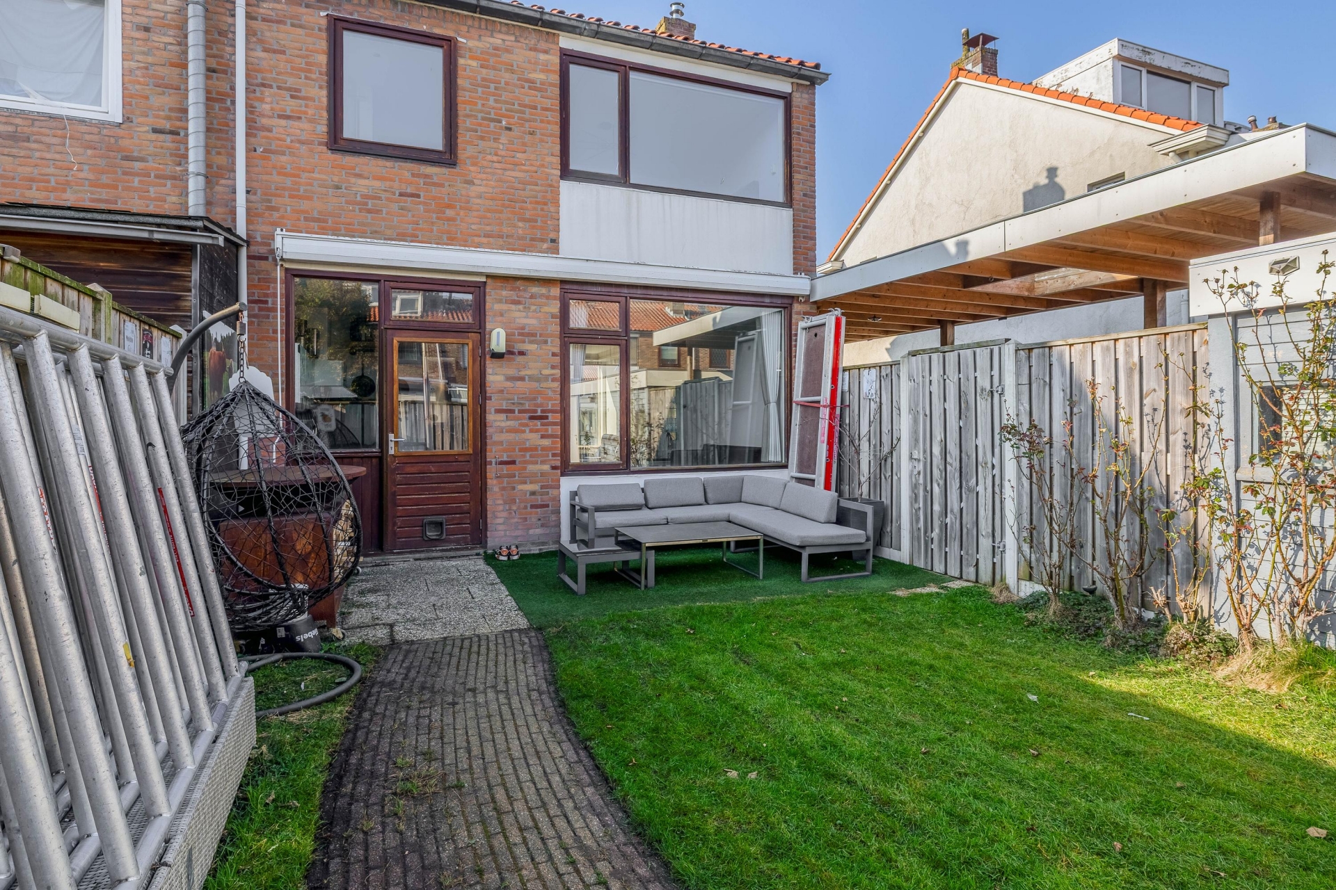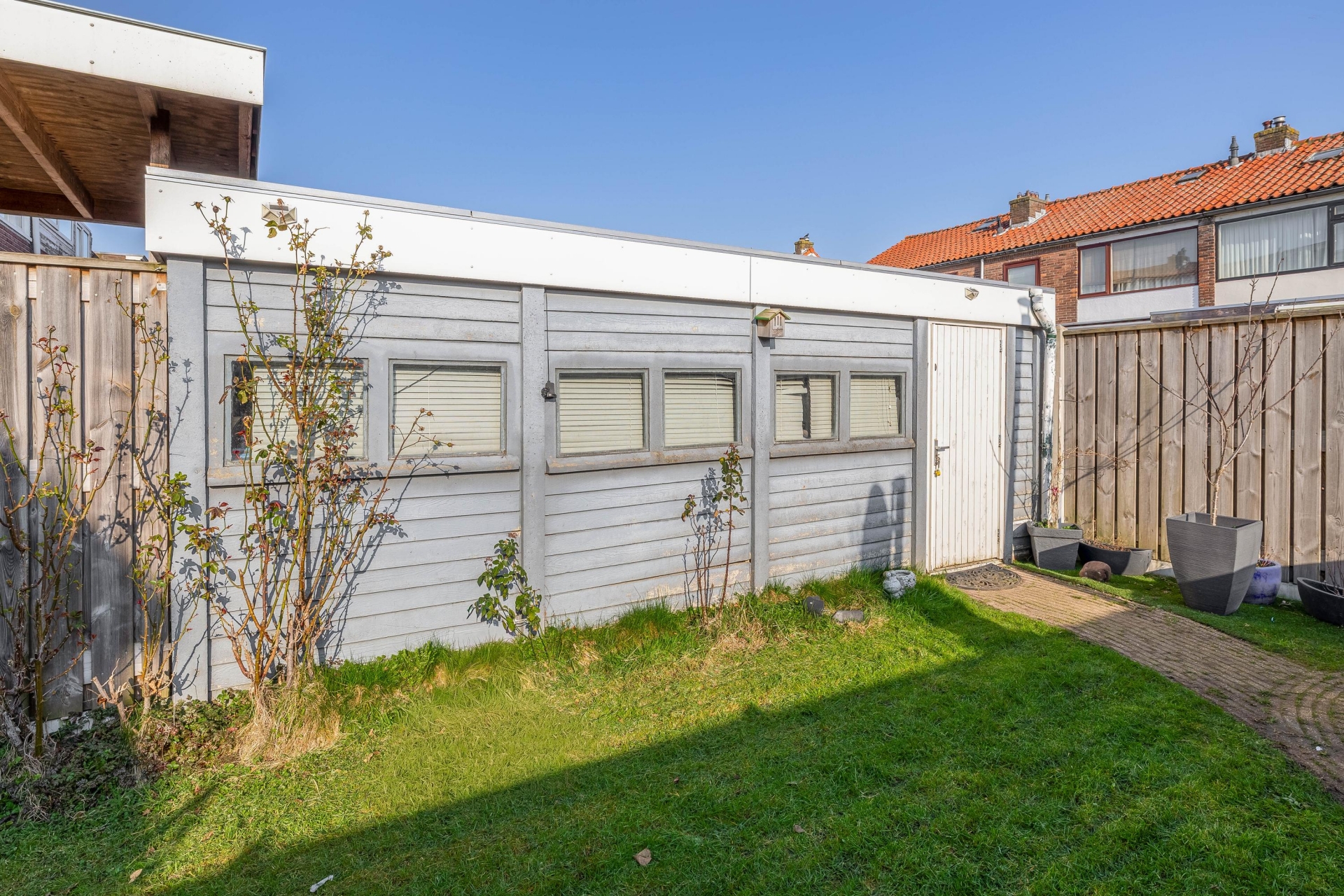 Een van de grote pluspunten van dit huis is de buitenruimte. Het perceel van 207 m² eigen grond zorgt voor een ruime achtertuin waar je verschillende zitplekken kunt creëren.