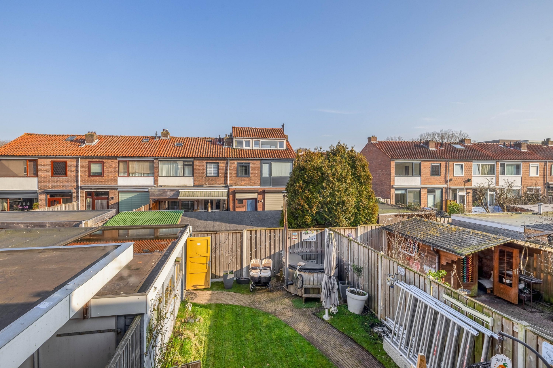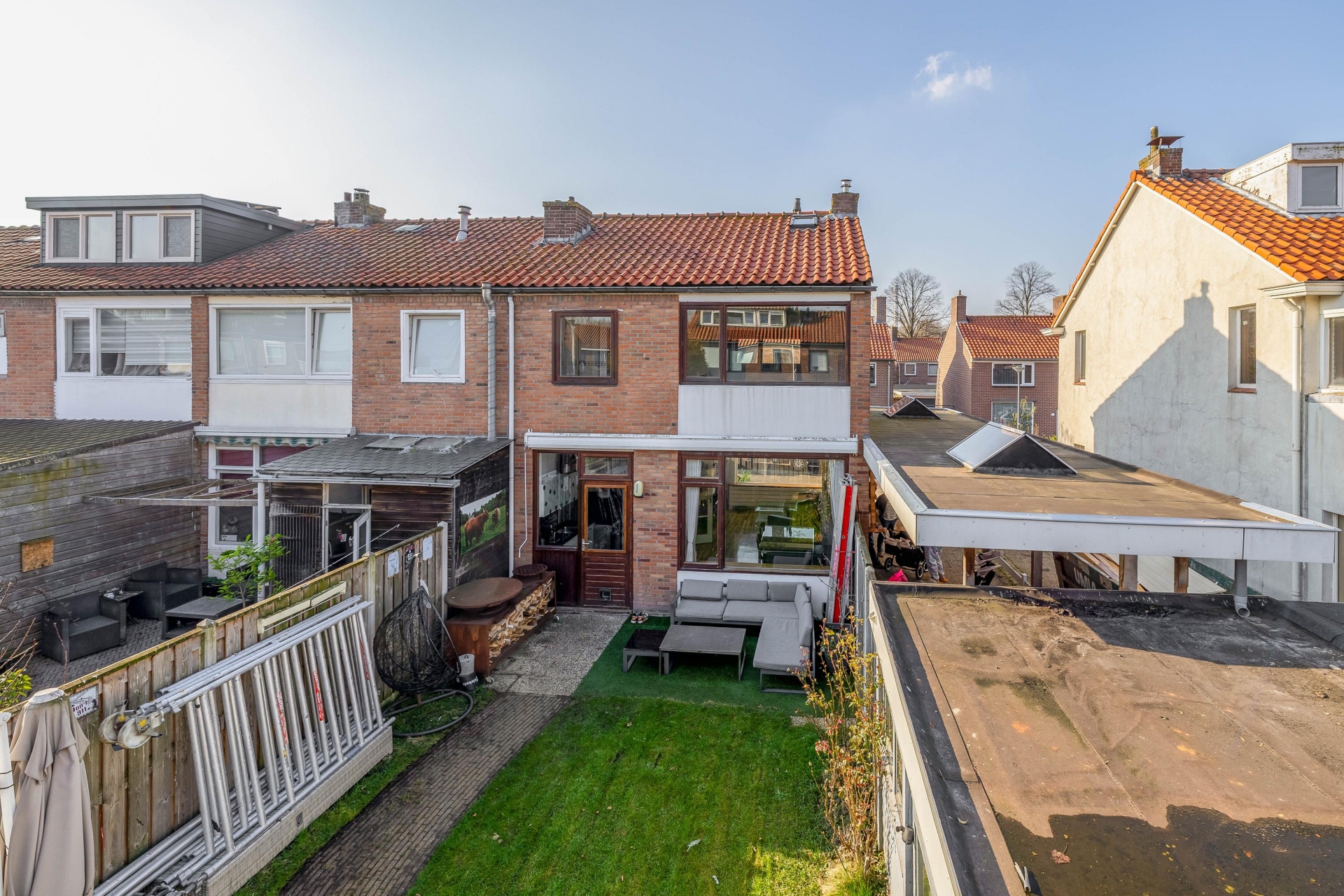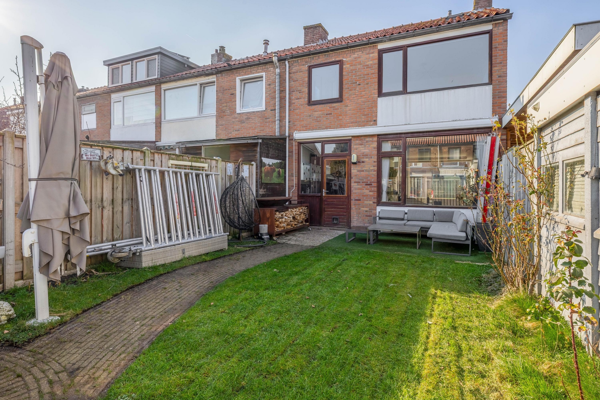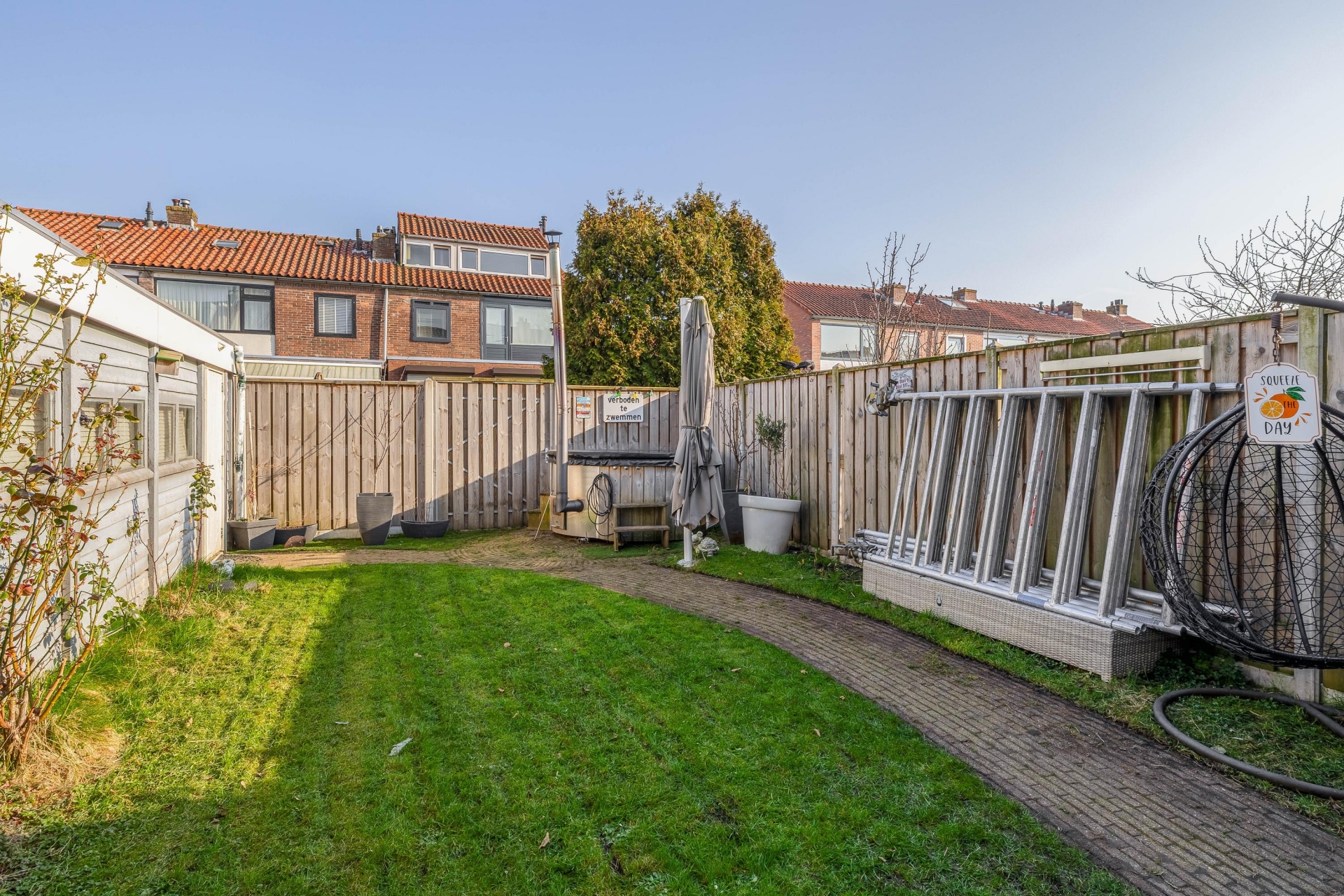 Een van de grote pluspunten van dit huis is de buitenruimte. Het perceel van 207 m² eigen grond zorgt voor een ruime achtertuin waar je verschillende zitplekken kunt creëren.