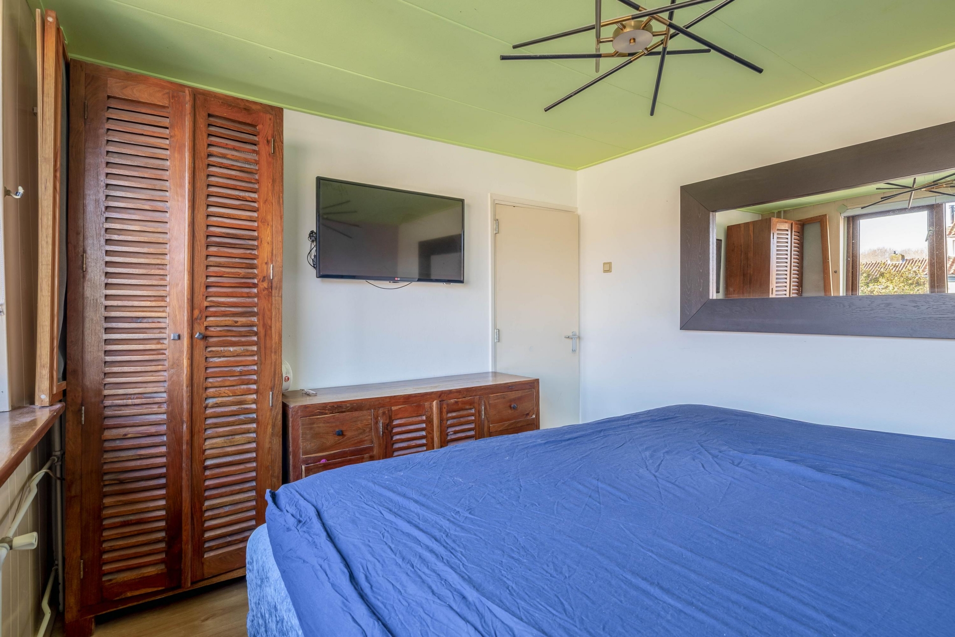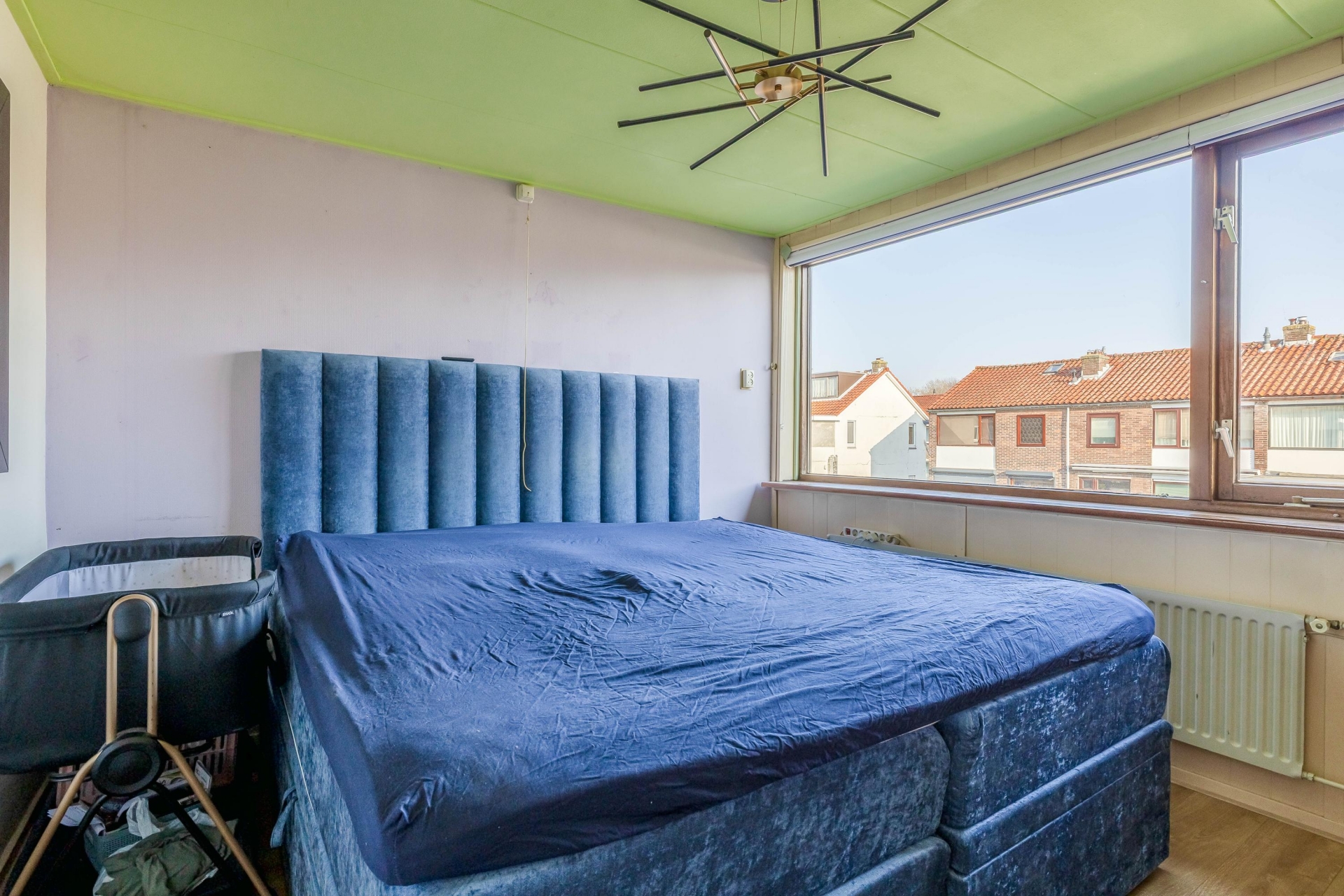 Aan de achterzijde ligt de grootste slaapkamer. Deze kamer biedt voldoende ruimte voor een tweepersoonsbed en een grote kledingkast. Dankzij het raam aan de achterzijde is ook deze kamer prettig licht.