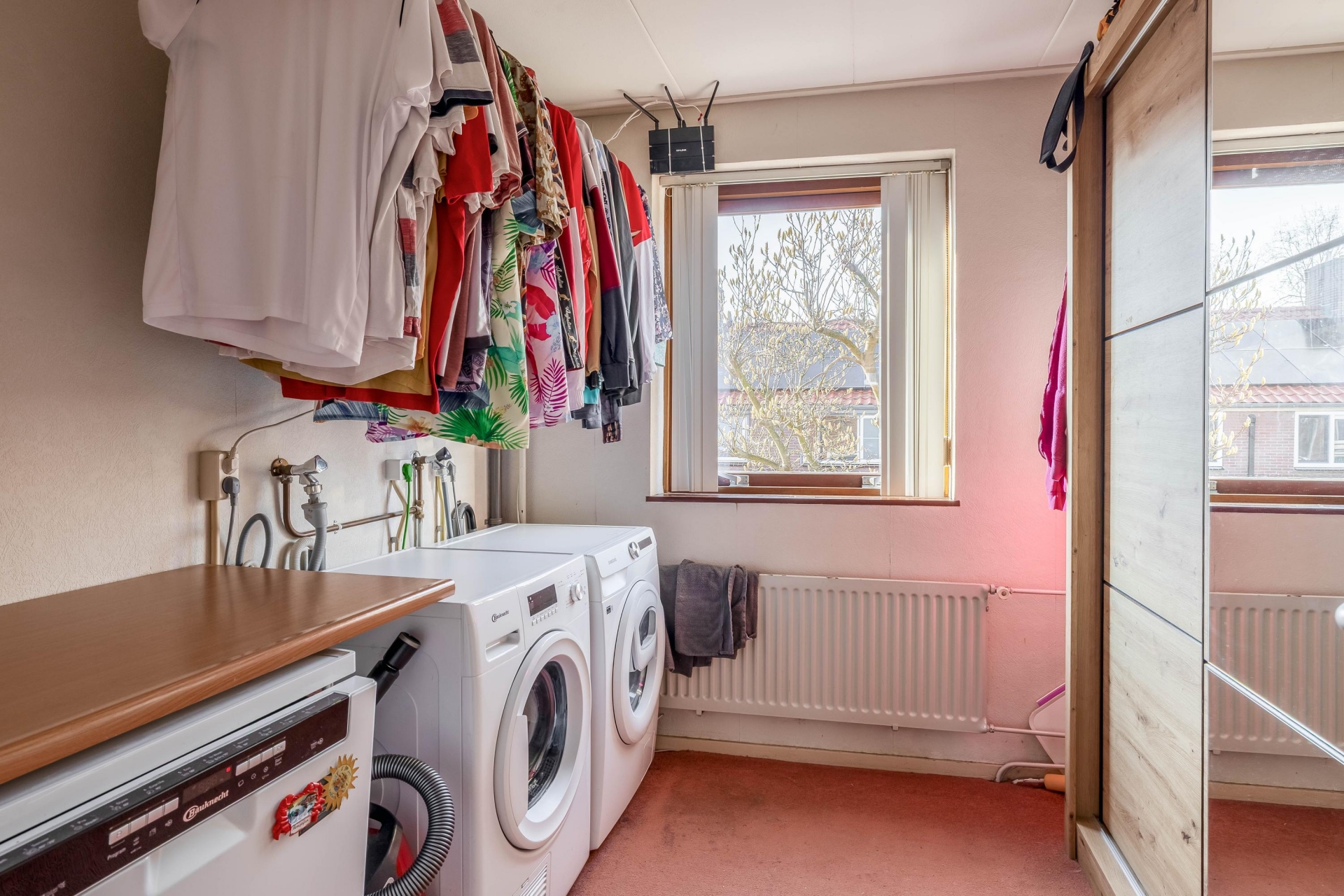 Daarnaast is er op deze verdieping een aparte wasruimte, waar plaats is voor de wasmachine, droger en extra opslag.