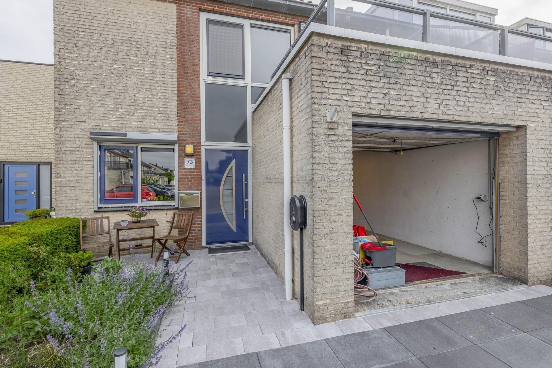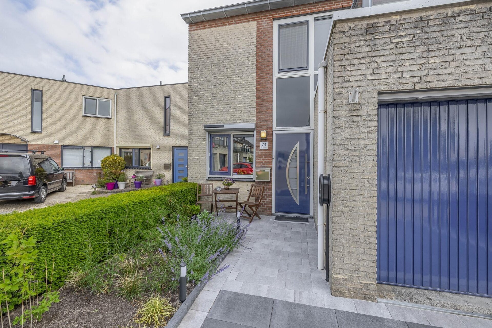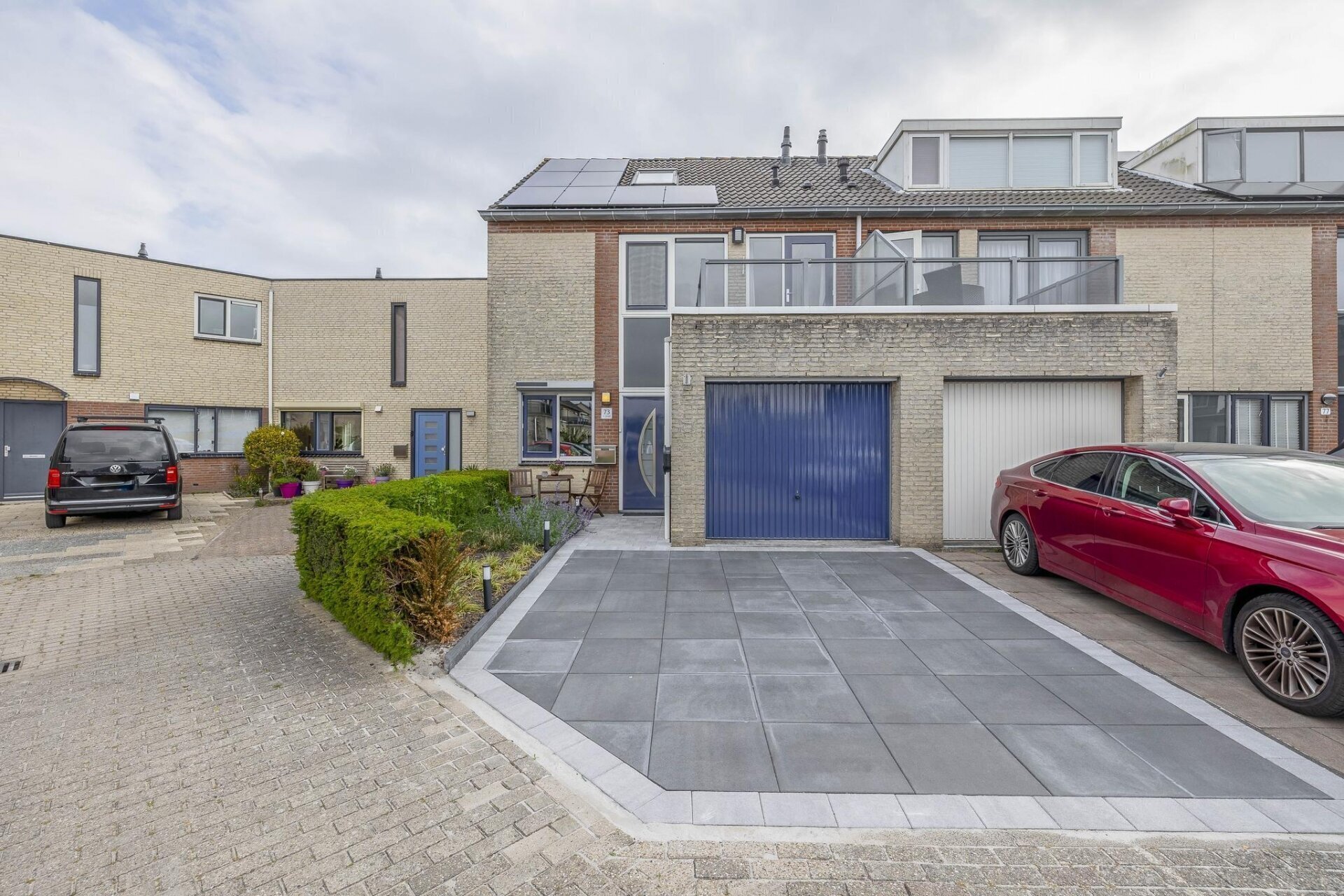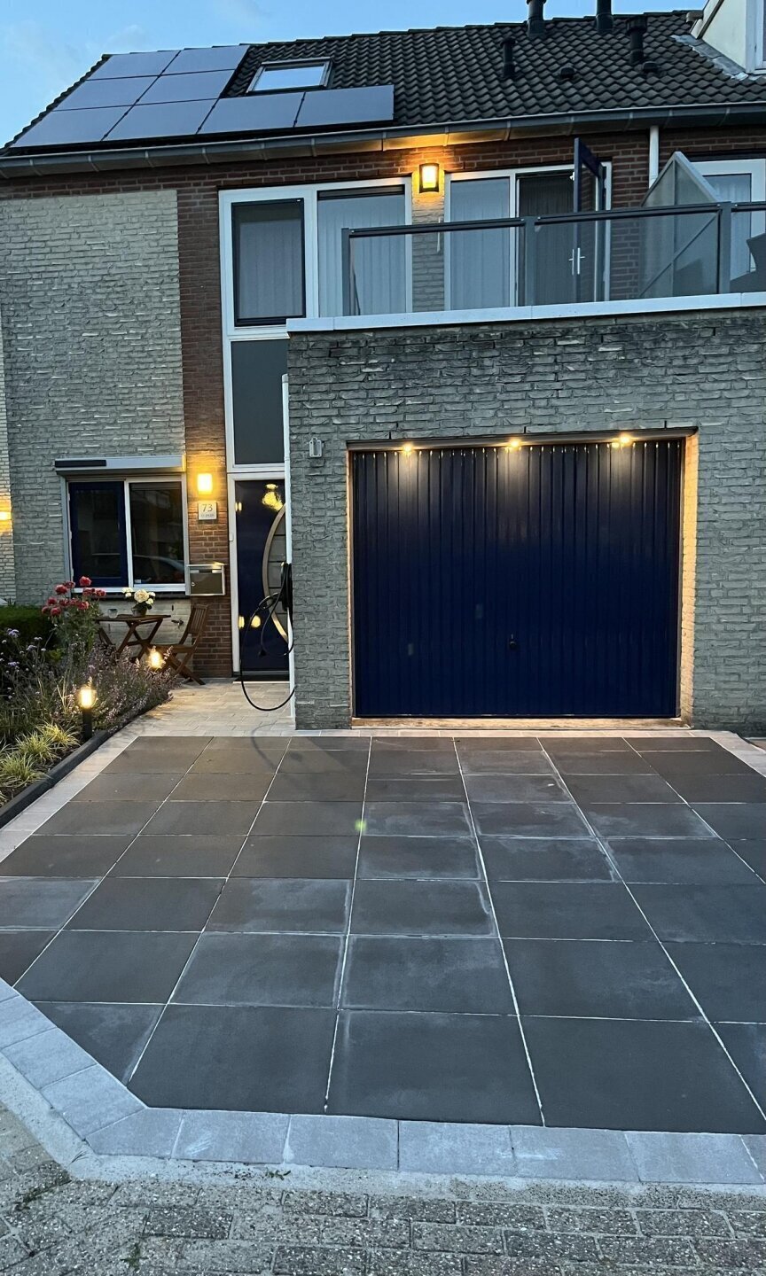 Voortuin met ruime parkeergelegenheid voor twee auto's (voorzien van een laadpaal) met toegang tot zowel de garage als het woonhuis.