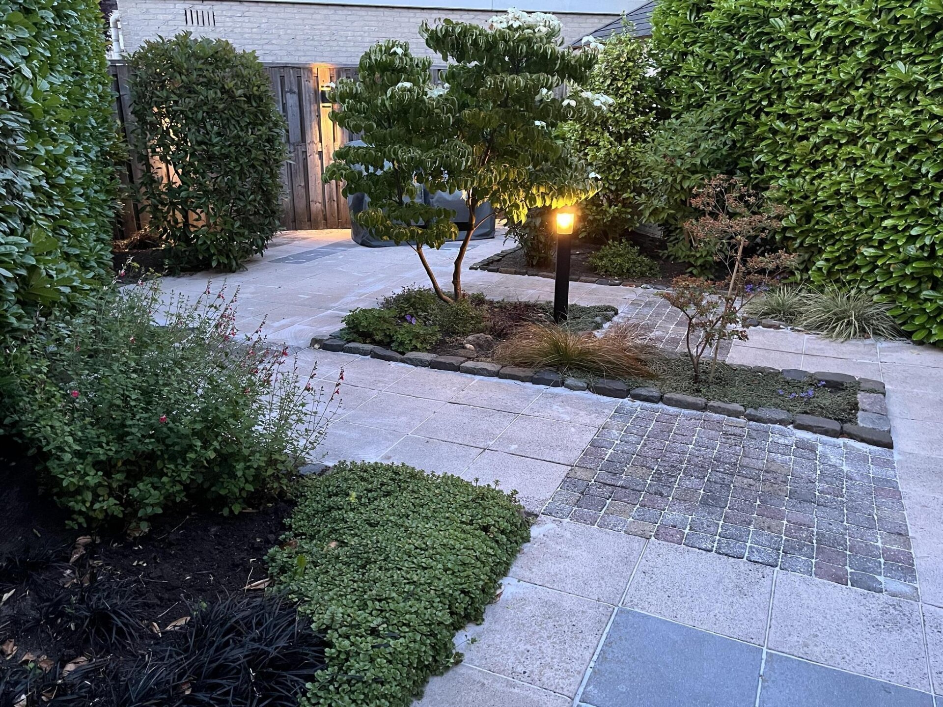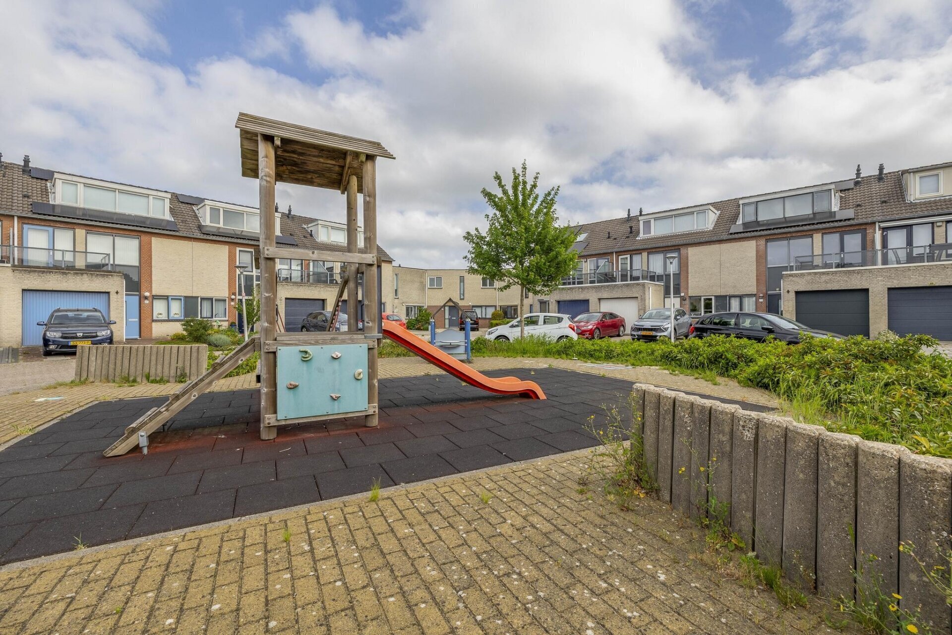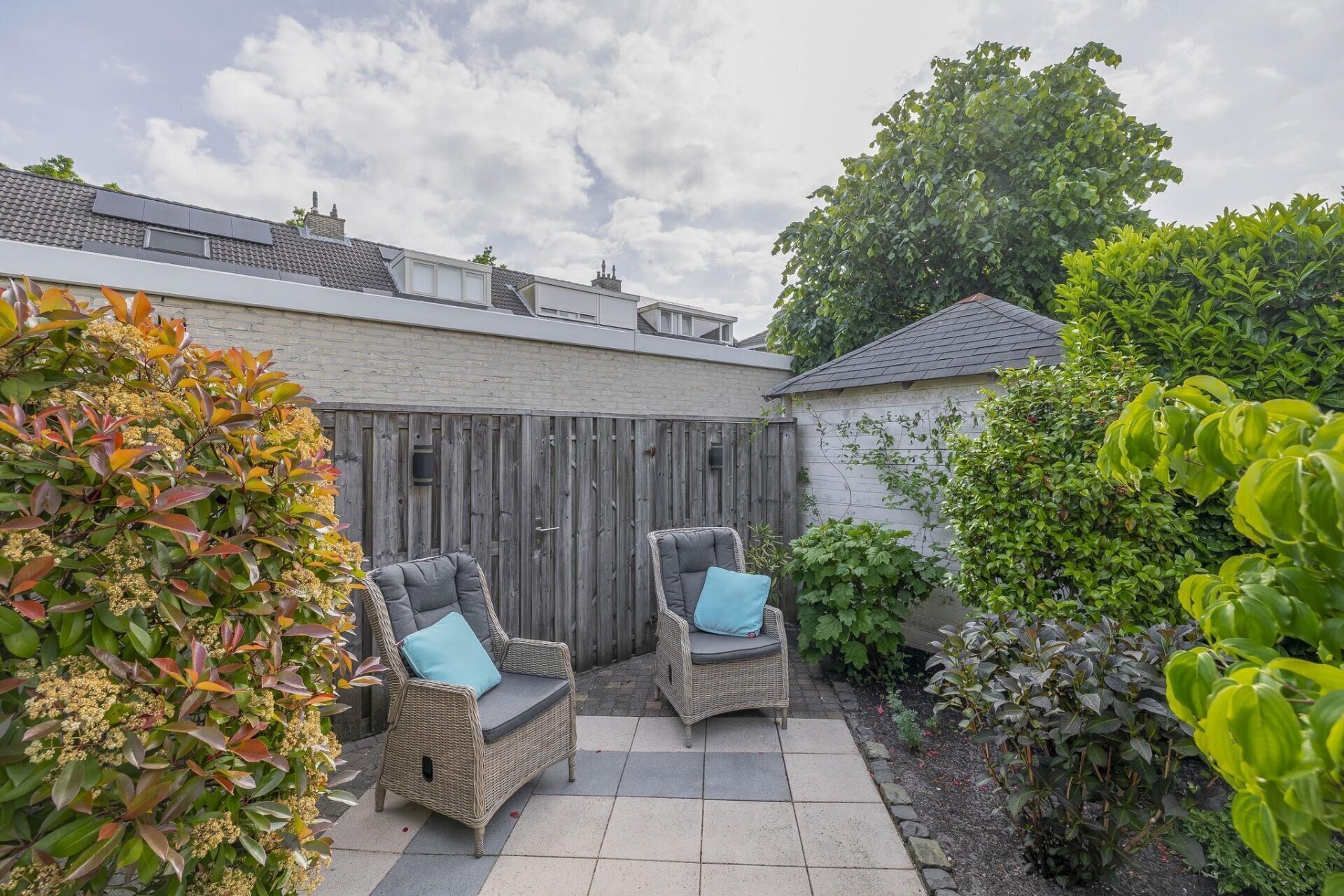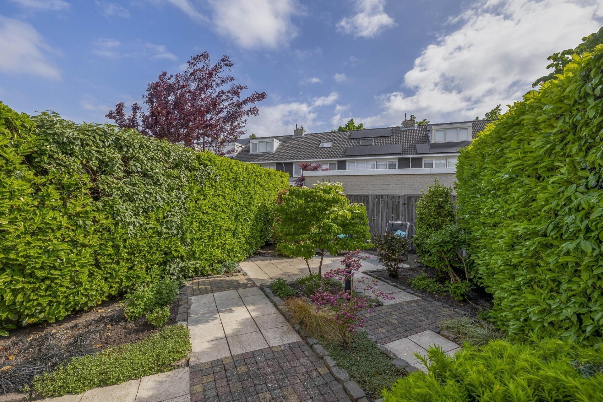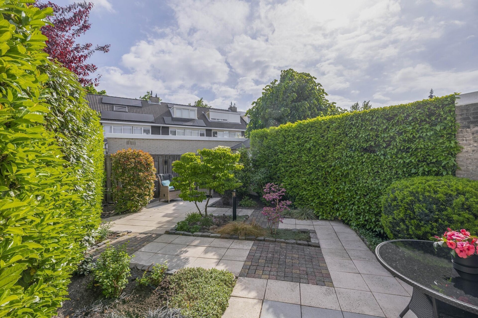 De achtertuin is fraai aangelegd in dezelfde speelse vorm als de woning en is voorzien van een achterom. Dankzij de ruime afmetingen van de tuin is het hier heerlijk van het zonnetje genieten. Toch liever wat meer schaduw? Dat is ook zeker mogelijk.