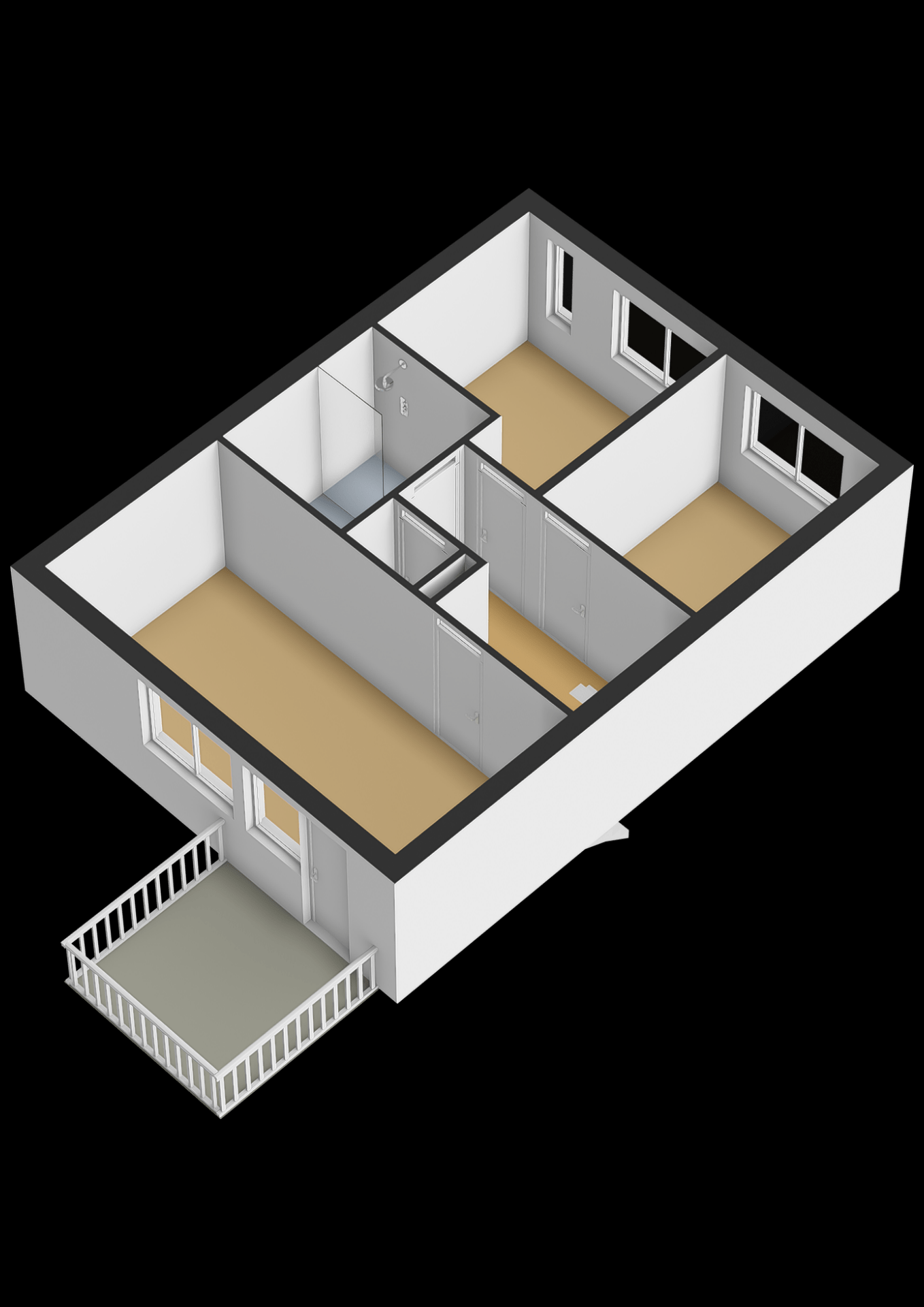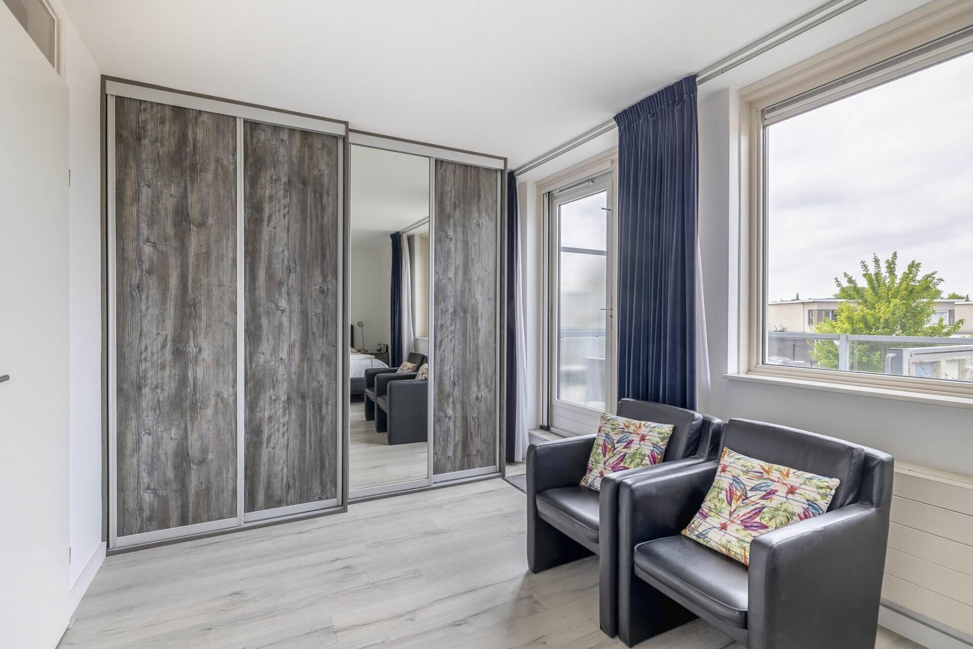 Aan de voorzijde van de woning bevindt zich een ruime slaapkamer met een schuifkastenwand en toegang tot het balkon op het zuidwesten.