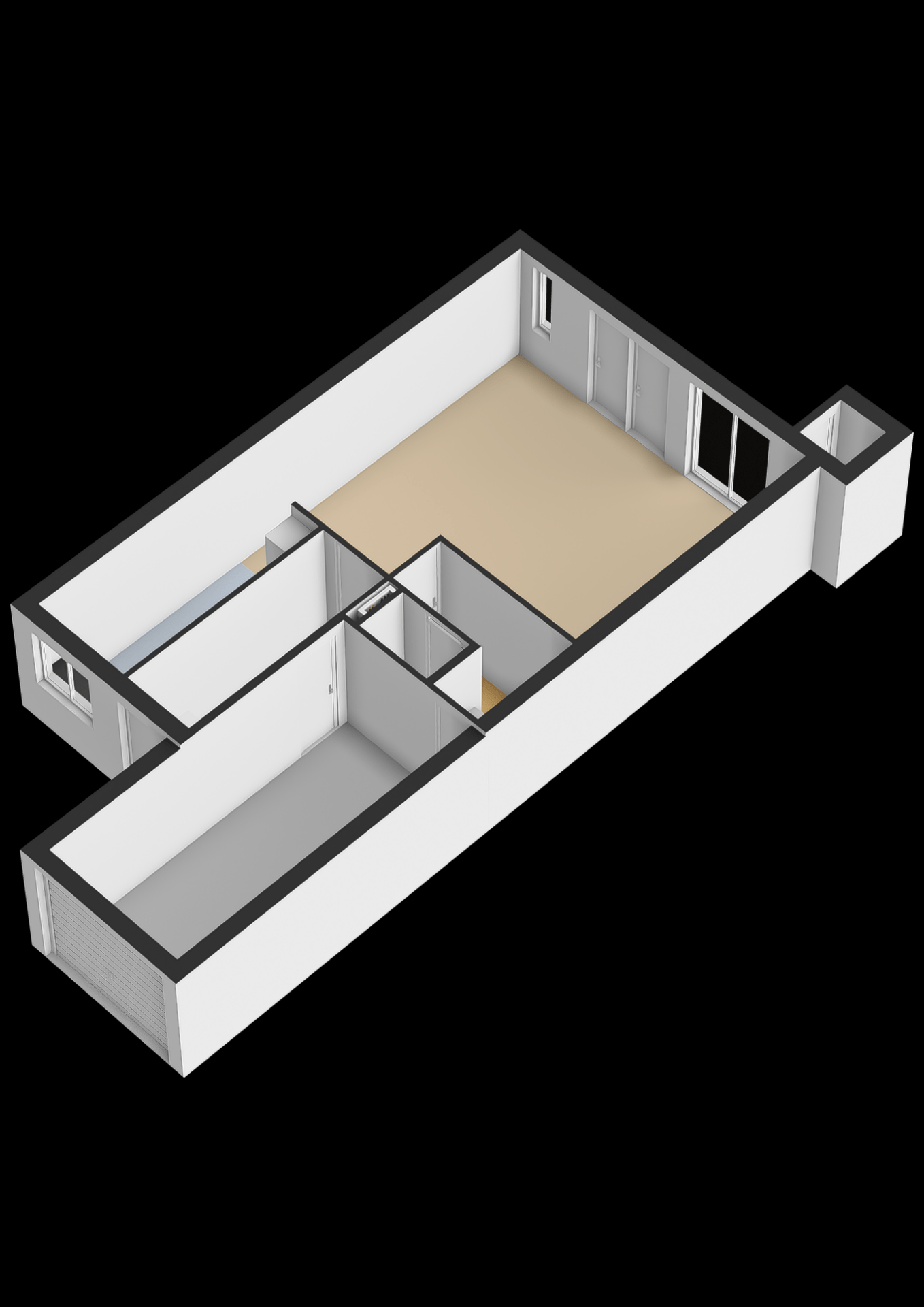 Entree/hal met meterkast en toegang tot zowel de woonkamer als de garage. De garage is voorzien van een overheaddeur en biedt toegang tot een ruime trapkast.
