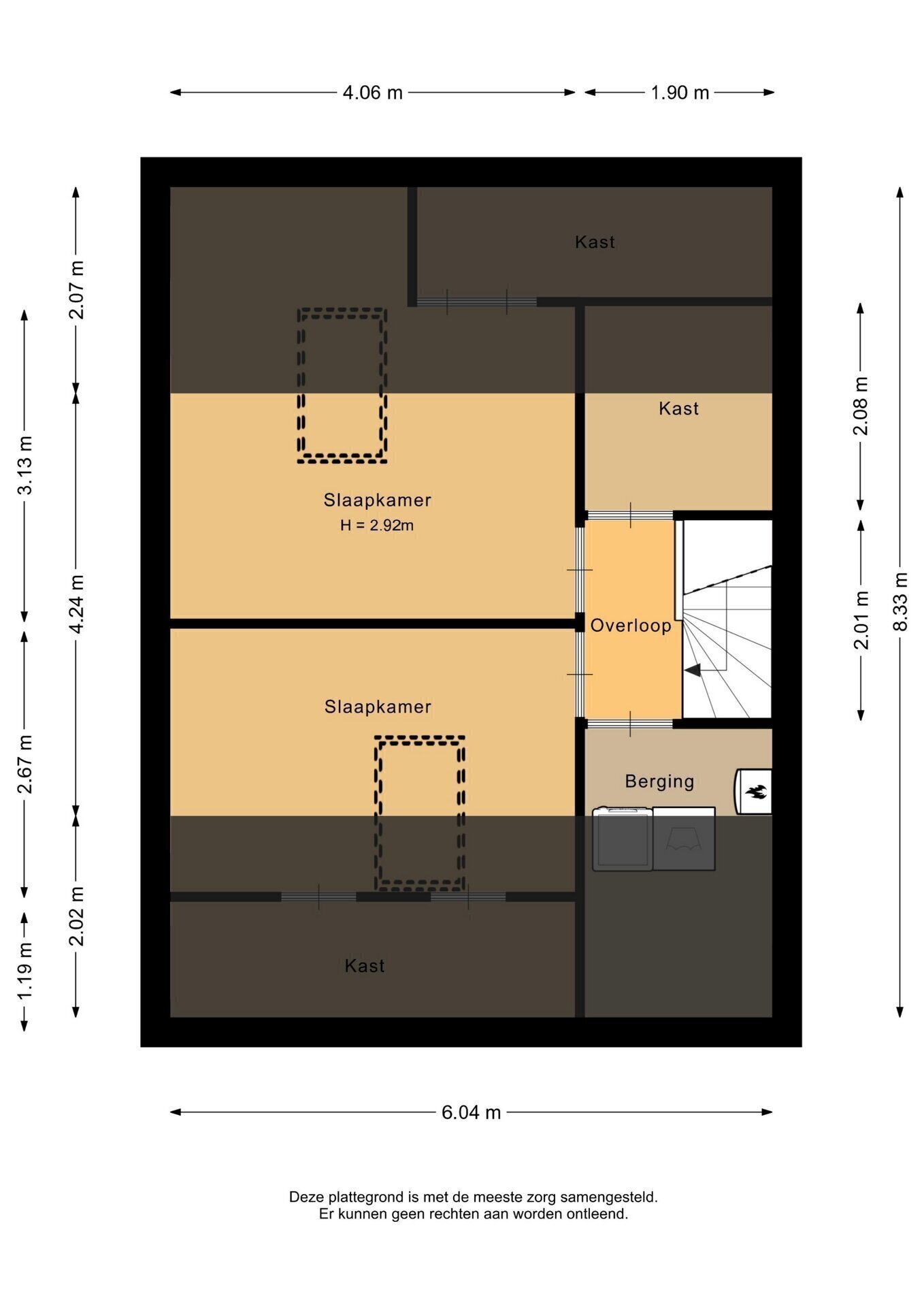 “Deze informatie is door ons met de nodige zorgvuldigheid samengesteld. Onzerzijds wordt echter geen enkele aansprakelijkheid aanvaard voor enige onvolledigheid, onjuistheid of anderszins, dan wel de gevolgen daarvan. Alle opgegeven maten en oppervlakten zijn indicatief.”