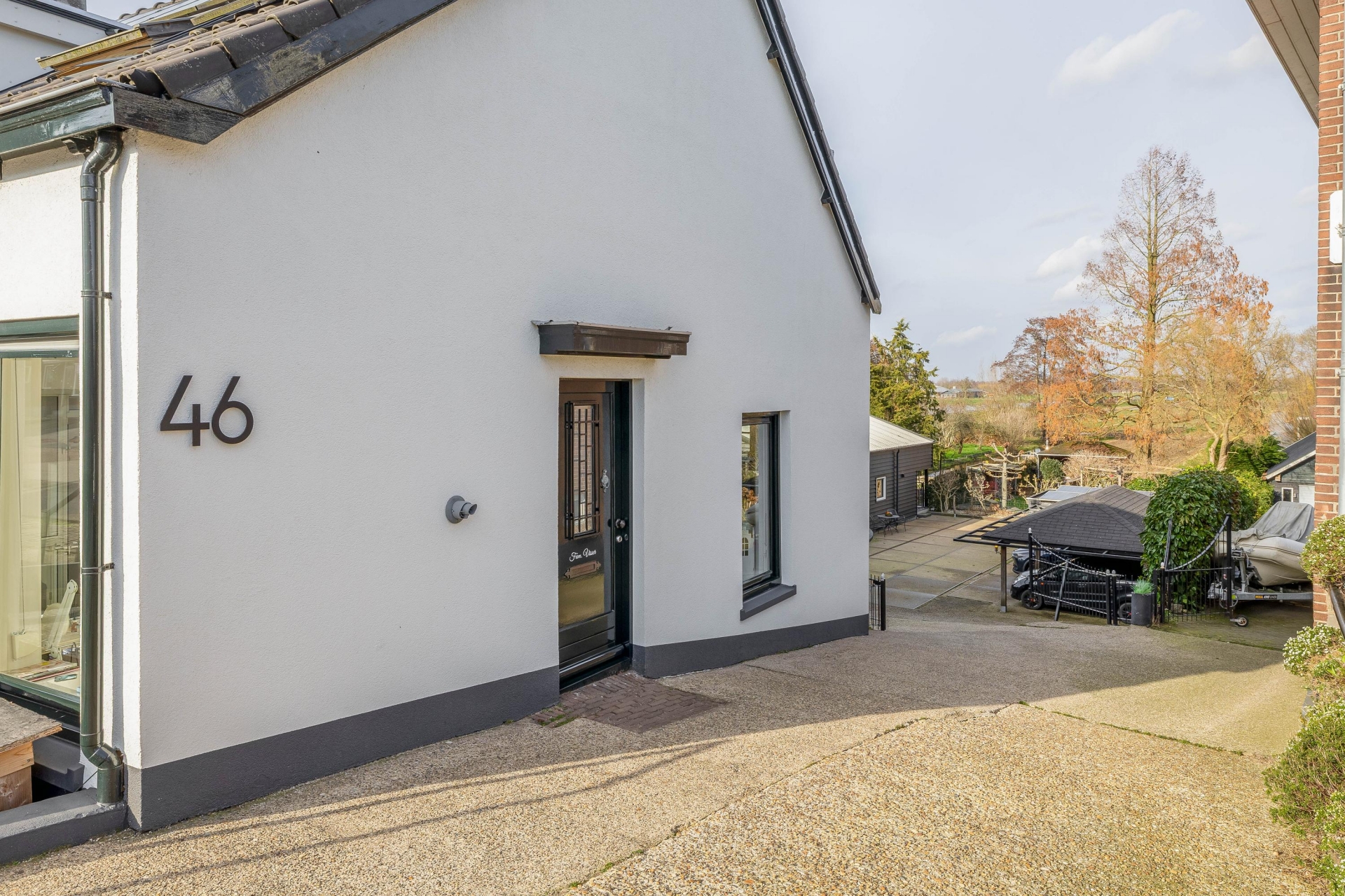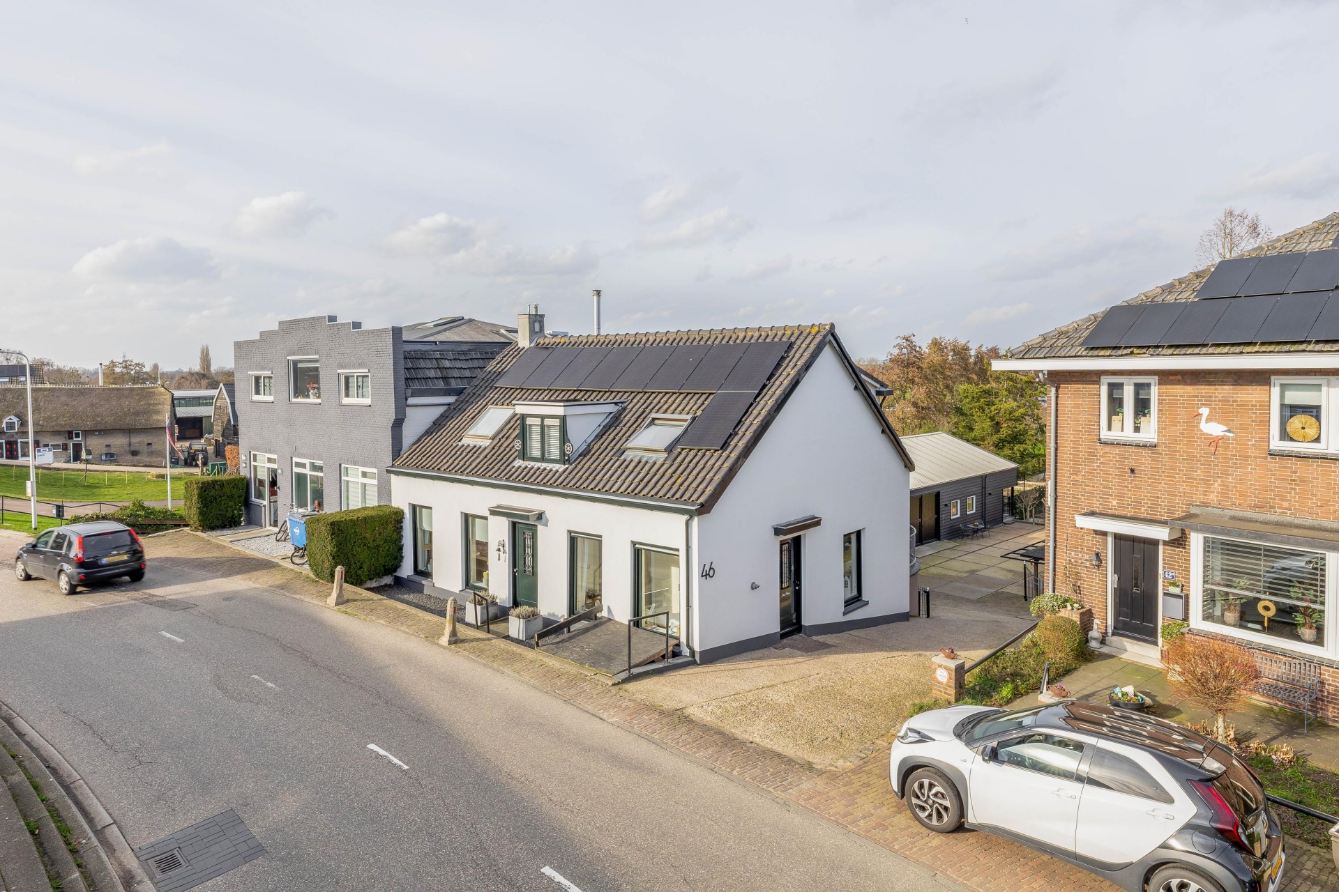 Daarnaast is er op het perceel ook nog een carport aanwezig met ruimte voor twee auto's en een aanpandige garage (met omvormer voor de zonnepanelen op de garage en voorbereiding voor elektrisch laden). De eigen afrit en het ruime erf zorgen ervoor dat parkeren op eigen terrein geen enkel probleem is.