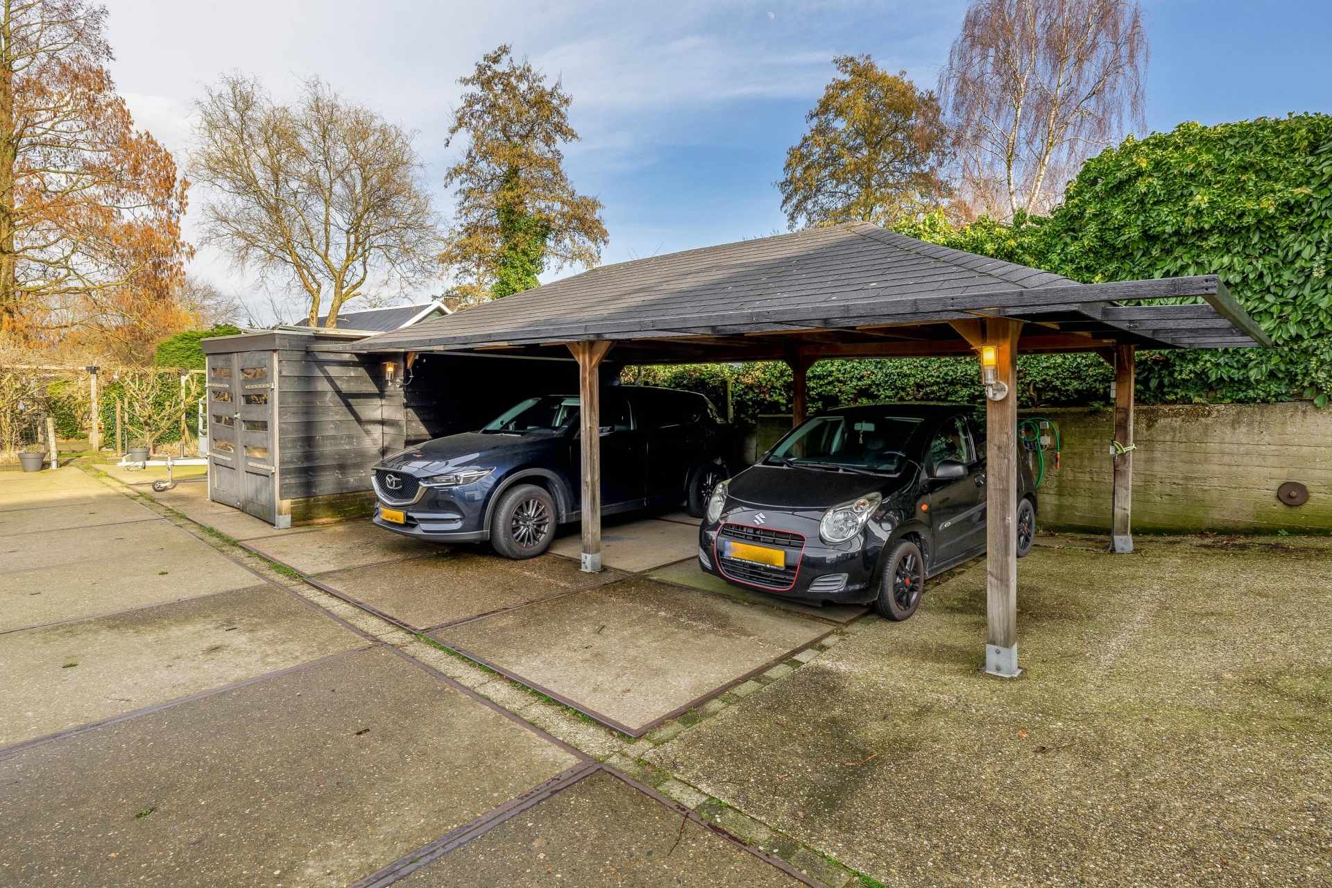 Carport voor twee auto's en parkeren op eigen terrein
