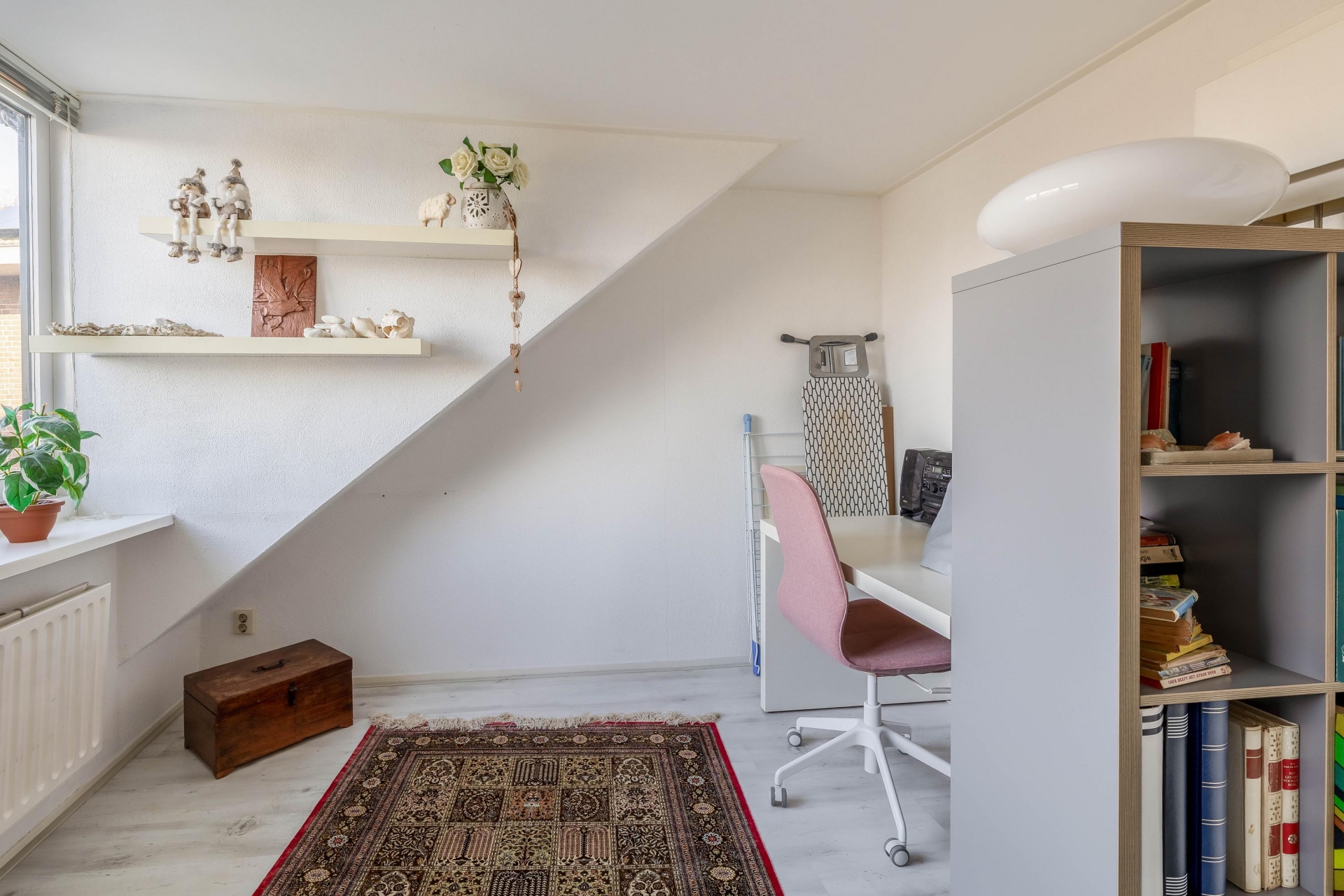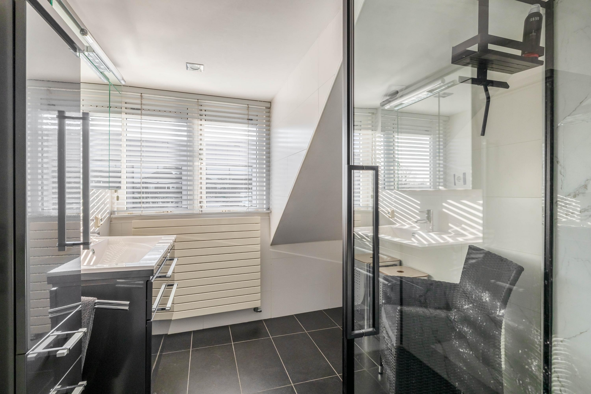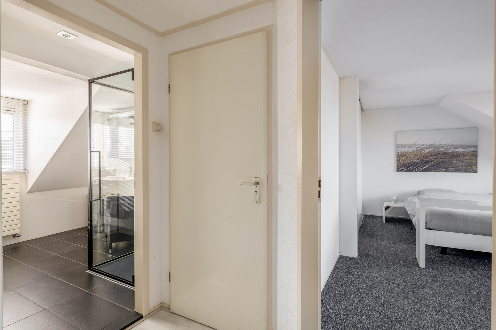 De moderne badkamer is stijlvol en praktisch ingericht en voorzien van een douche, wastafelmeubel en alle comfort die je dagelijks nodig hebt. Ook is er een separaat toilet op deze verdieping. De indeling van deze verdieping maakt het geheel compleet en comfortabel voor een gezin.