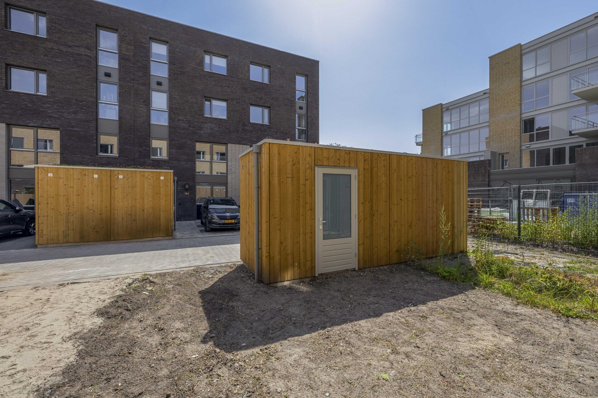 Daarnaast beschikt de woning over een nog aan te leggen achtertuin én een eigen parkeerplaats direct voor de deur. Dat betekent altijd verzekerd zijn van een plek voor de auto, erg comfortabel en praktisch! De achtertuin is gelegen op het zuidoosten en biedt dus gegarandeerd veel zonuren. Verder is er nog een houten berging en een achterom aanwezig.