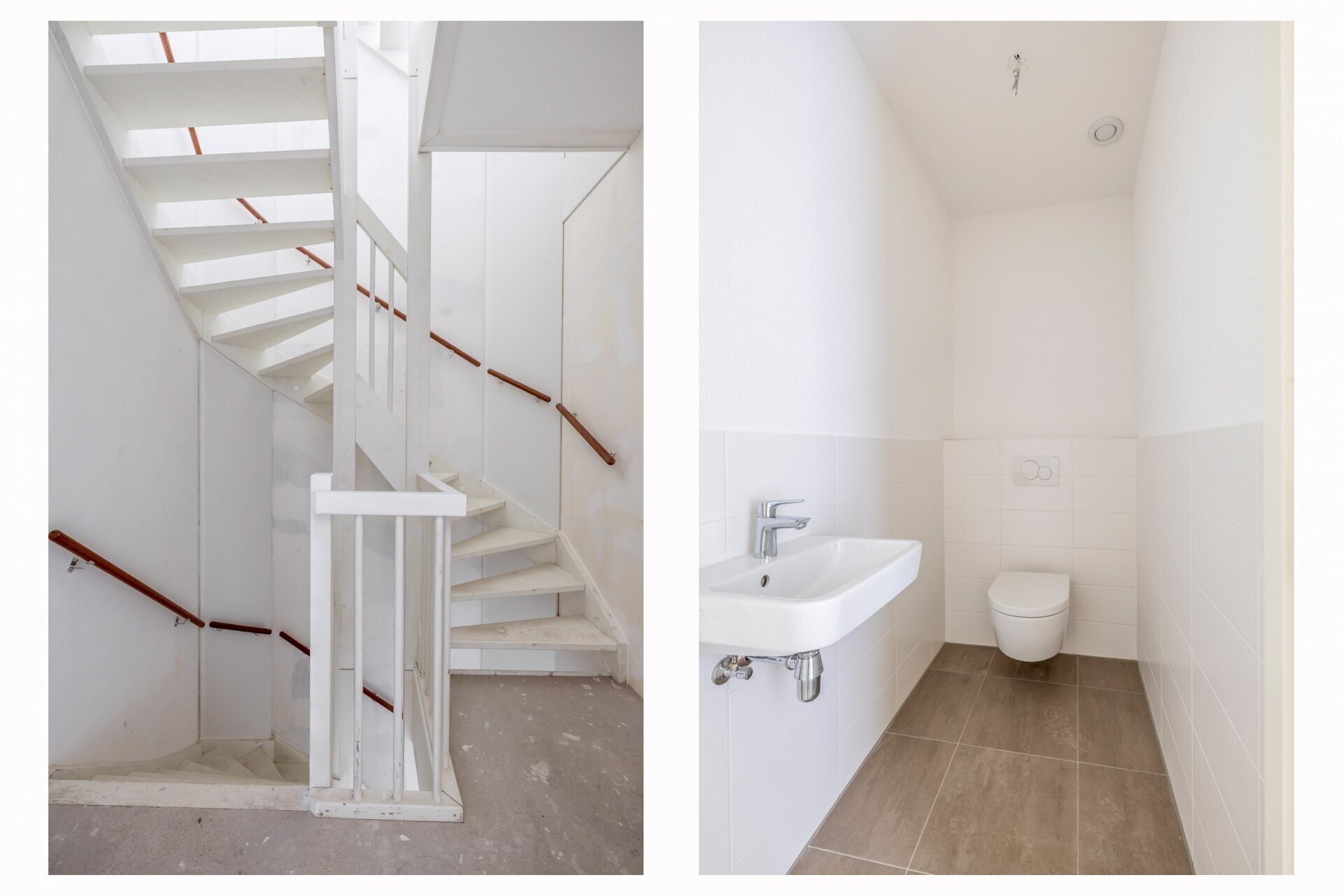 De woning beschikt over 4 woonlagen. Op de begane grond is een ruime woonkamer aan de achterzijde gelegen en aan de voorzijde komt een fraaie keuken met kookeiland. Op de eerste verdieping is één ruime slaapkamer welke ingedeeld kan worden in 2 kamers. De moderne badkamer aan de voorzijde is voorzien van een ligbad, inloopdouche en een wastafel met meubel. Separaat is op de overloop nog een toilet aanwezig. Op de 2e verdieping is nog een ruime kamer welke ook gesplitst kan worden. Aan de voorzijde is de technische ruimte te vinden met de aansluitingen voor de wasmachine en droger. Aan de achterzijde is de 2e badkamer gesitueerd. De volledig betegelde badkamer is voorzien van een inloopdouche, wastafel met meubel en een toilet. De 3e verdieping is nog een open ruimte welke vrij ingedeeld kan worden. Tevens is vanaf hier ook toegang tot het dakterras, welke gesitueerd is op het zuidoosten.