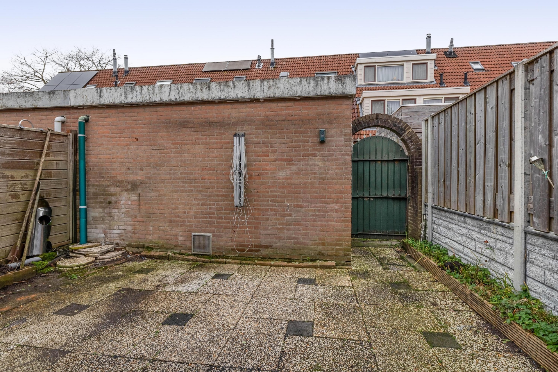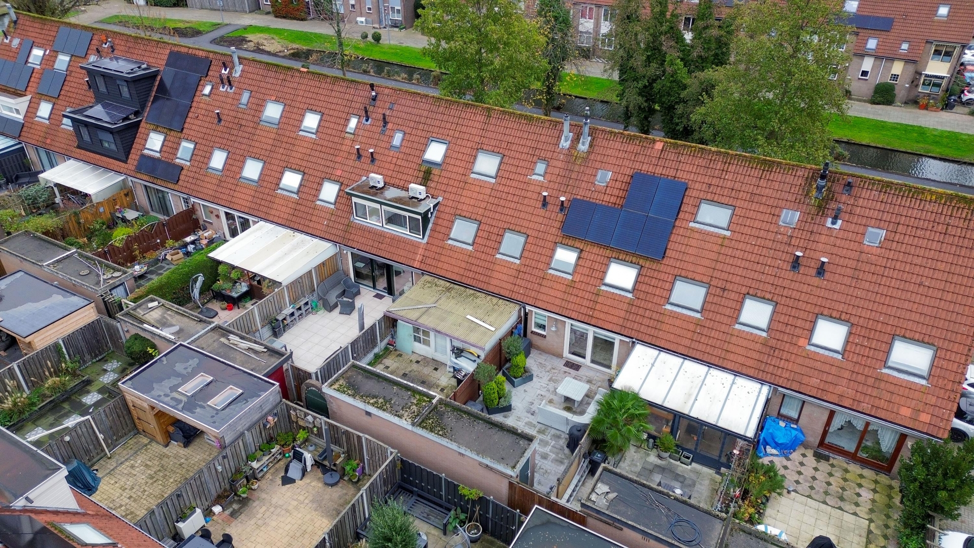 De achtertuin is een van de sterke punten van deze woning. Met bijna 60 m² (inclusief serre) aan buitenruimte kun je hier heerlijk genieten. Achterin bevindt zich de stenen berging, ideaal voor fietsen, gereedschap en tuinspullen. De tuin is bovendien bereikbaar via een praktische achterom.