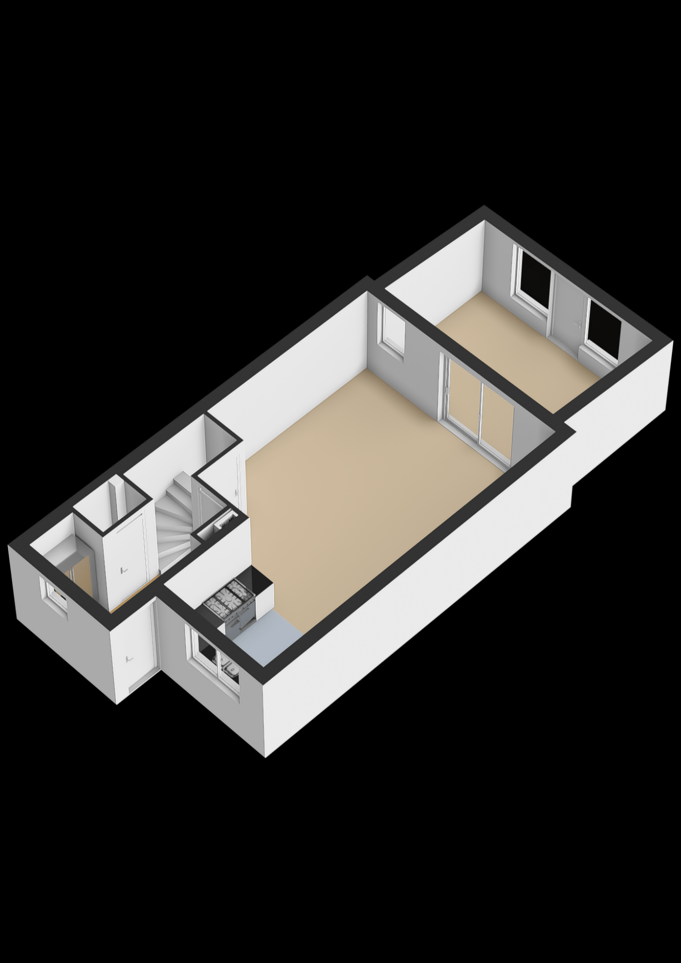 De begane grond verwelkomt je met een hal met toilet en toegang tot de doorzonwoonkamer. Dankzij het vele natuurlijke licht voelt deze ruimte direct prettig aan en is er plaats voor een royale zithoek én eettafel. De keuken aan de voorzijde kijkt uit over het water. Hoewel eenvoudig uitgevoerd, biedt deze keuken volop mogelijkheden voor een frisse update naar jouw wensen.