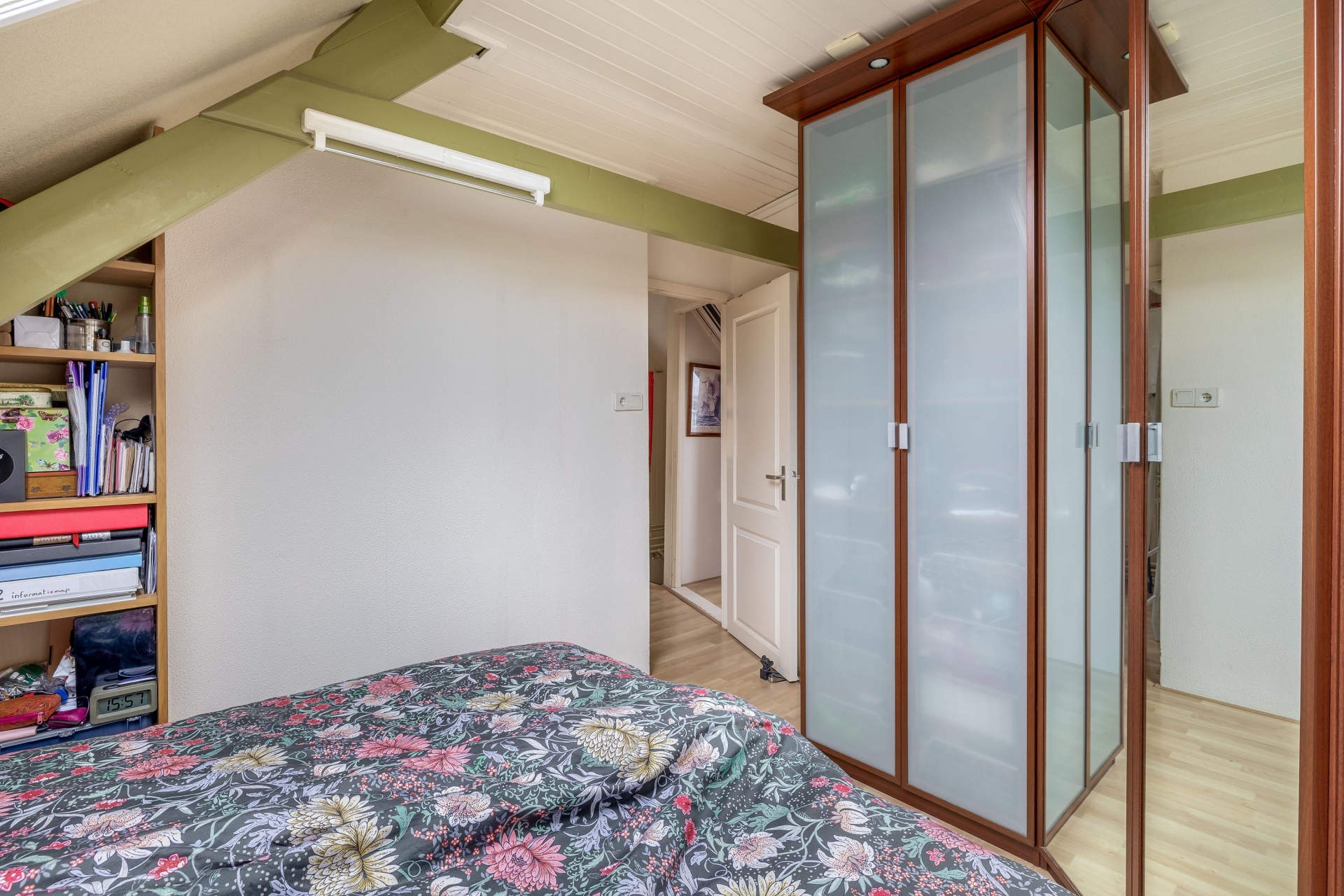 Op de verdieping vind je twee slaapkamers. De grootste slaapkamer is ruim genoeg voor een tweepersoonsbed en kastruimte. De tweede kamer is ideaal als werkkamer, logeerkamer of kinderkamer. Beide ruimtes profiteren van daglicht en hebben een prettige sfeer.