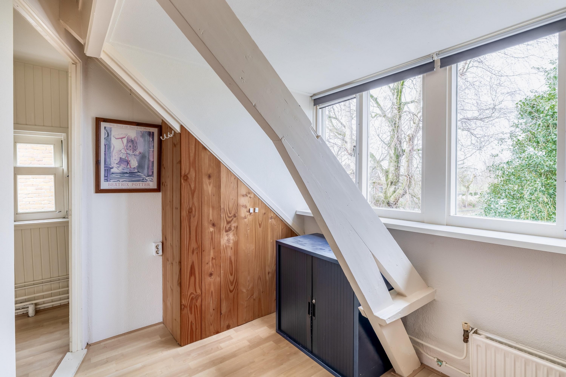 Daarnaast beschikt het huis over een praktische vliering, ideaal voor het opbergen van spullen die je niet dagelijks nodig hebt. Wat dit huis extra bijzonder maakt, is het ruime onderhuis. Hier heb je verrassend veel bergruimte, perfect voor voorraad, hobbyspullen of bijvoorbeeld fietsen.