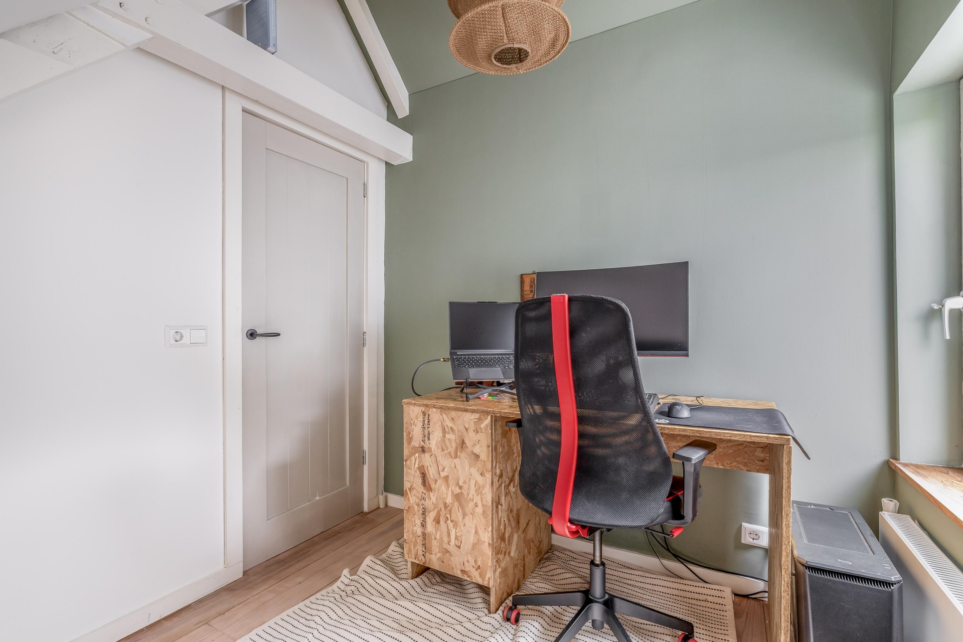 De ruimte is groot genoeg voor een royale zithoek én een aparte werk- of speelhoek. Dat maakt het huis geschikt voor verschillende levensfasen. Of je nu net start of met een jong gezin een volgende stap zet, hier kun je alle kanten op.