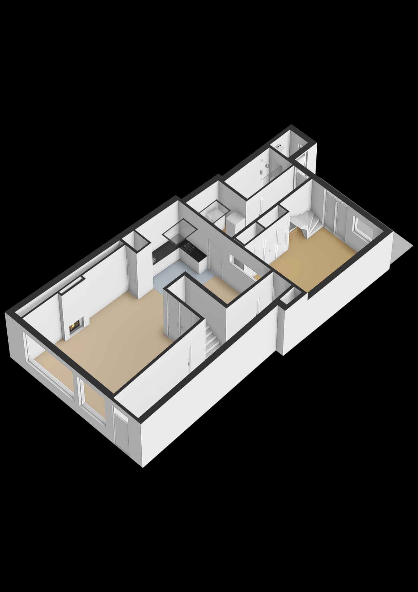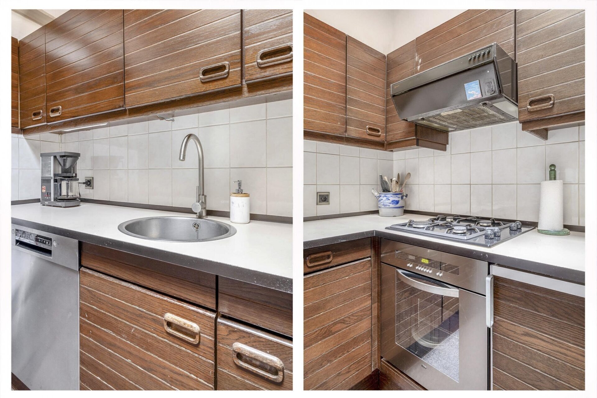 De keuken bevindt zich aan de achterzijde en sluit aan op een praktische bijkeuken. Vanuit hier loop je zo de stadstuin in en heb je bovendien toegang tot de badkamer op de begane grond. Aan de andere zijde van de hal ligt een ruime slaapkamer, met een eigen trap naar de eerste verdieping. Ideaal voor gebruik als praktijkruimte, gastenkamer of bijvoorbeeld een thuiswerkplek met aparte opgang.
